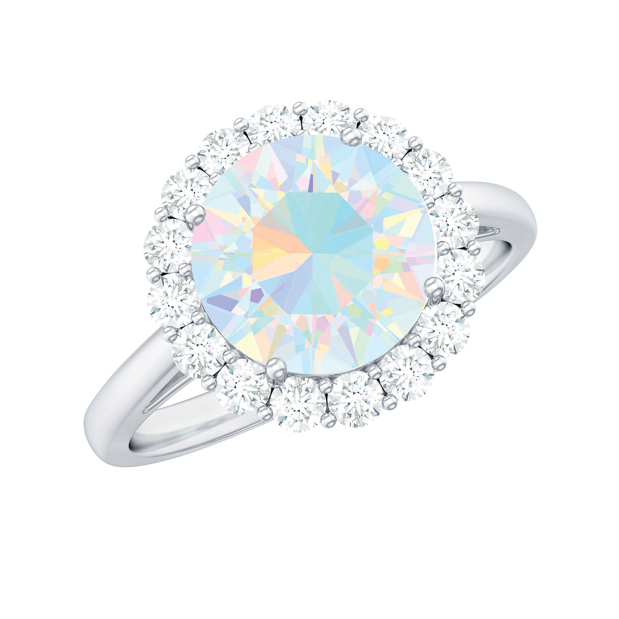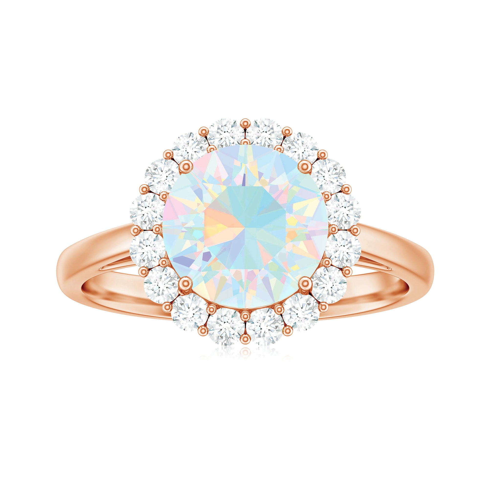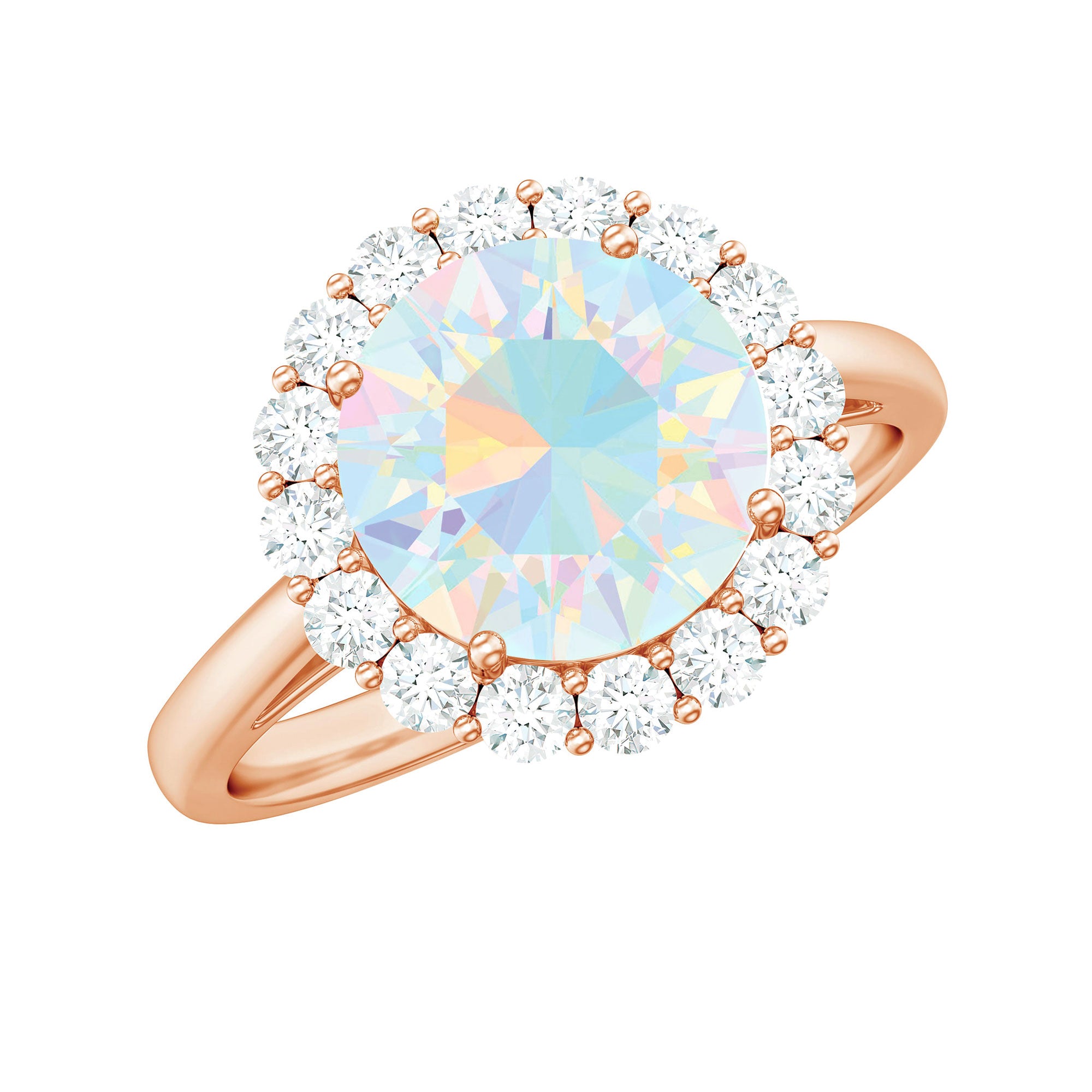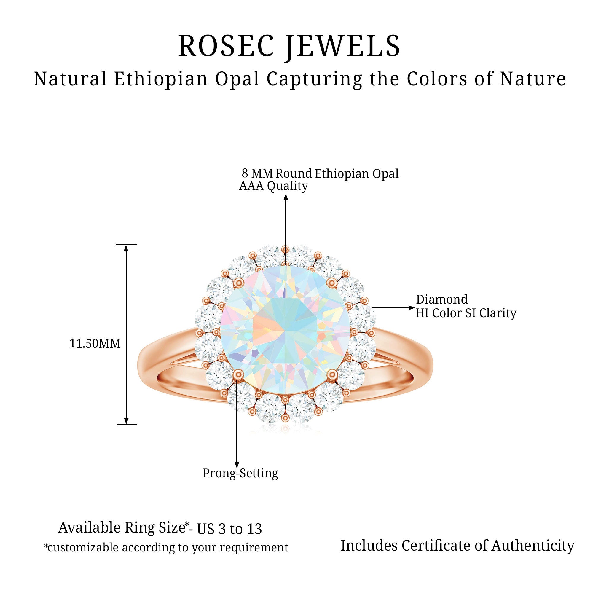 Certified Real 8mm Ethiopian Rainbow Opal Engagement Ring with Diamond Halo