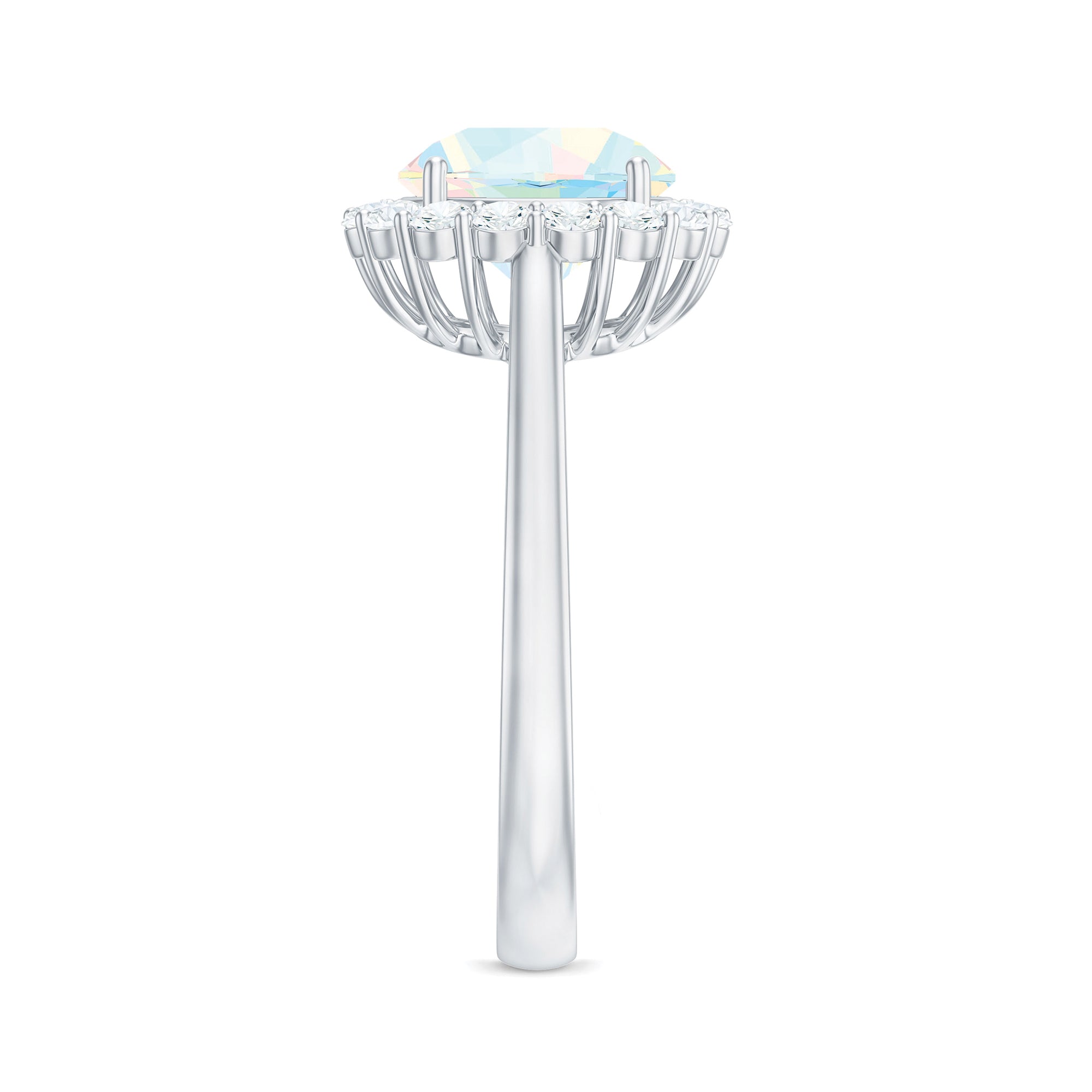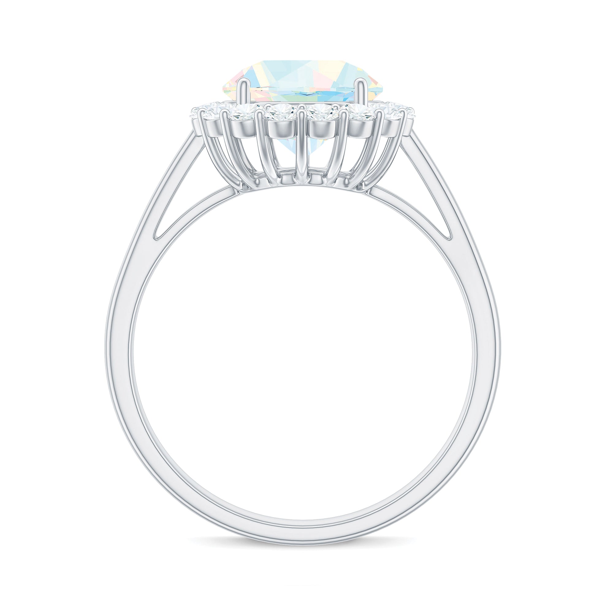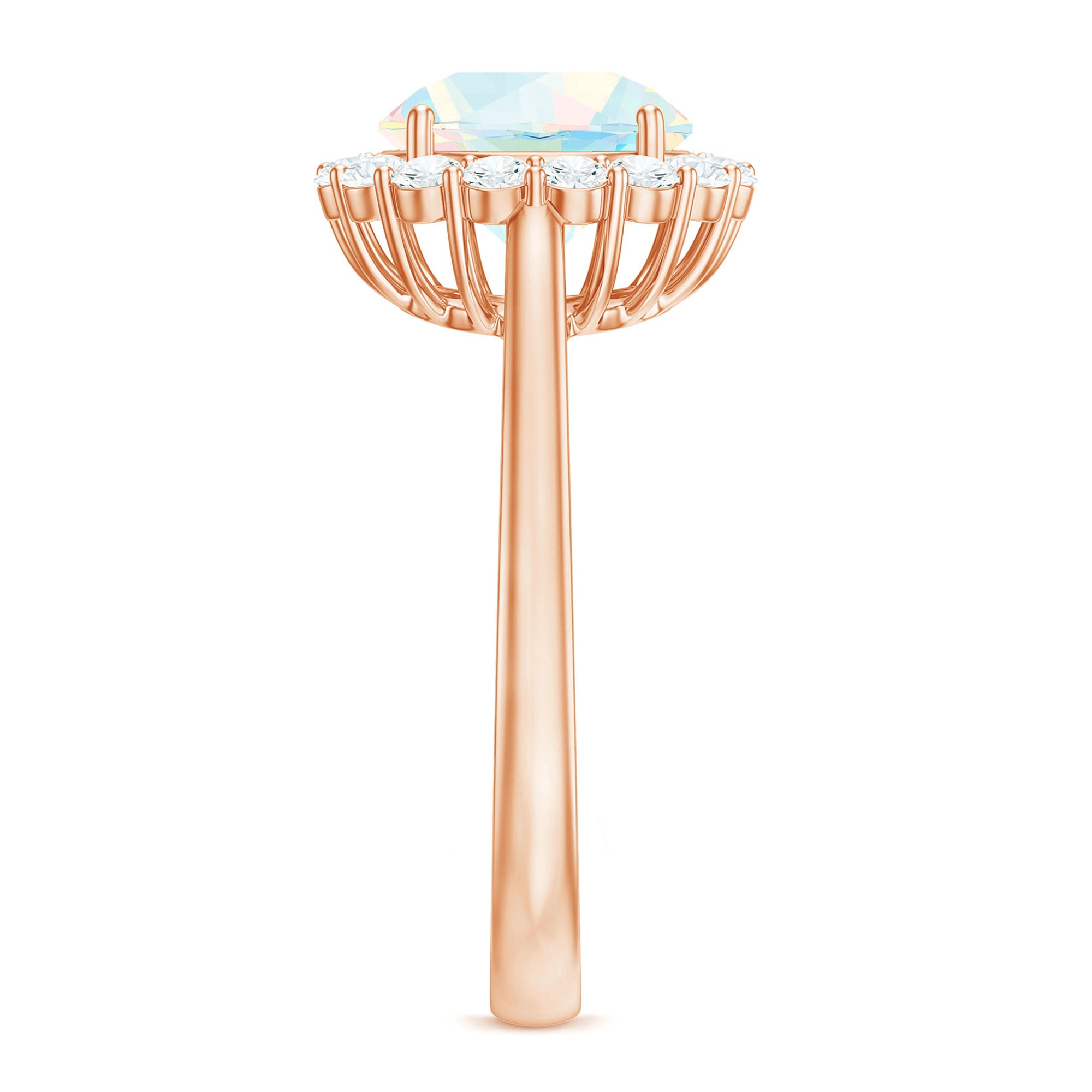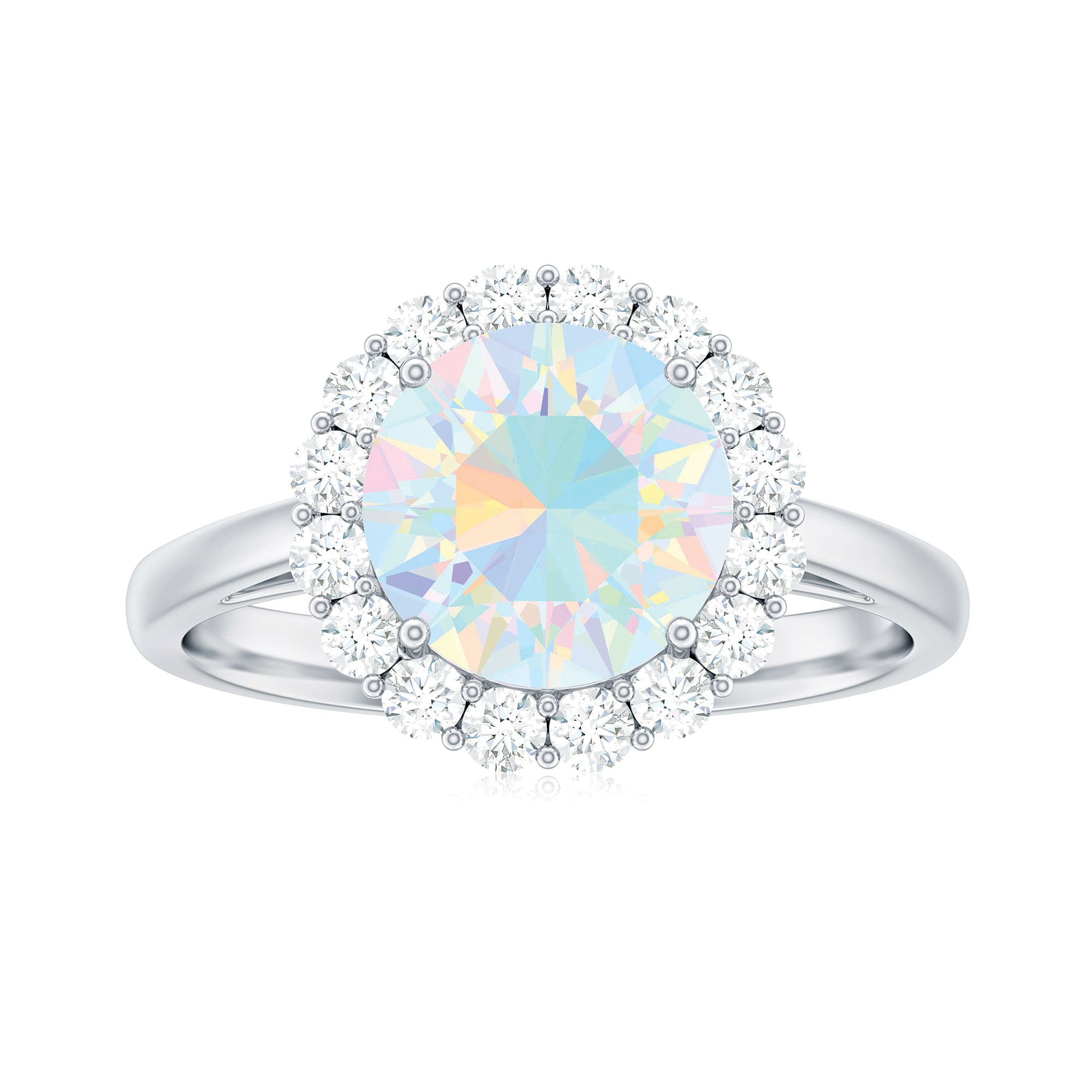 Certified Real 8mm Ethiopian Rainbow Opal Engagement Ring with Diamond Halo