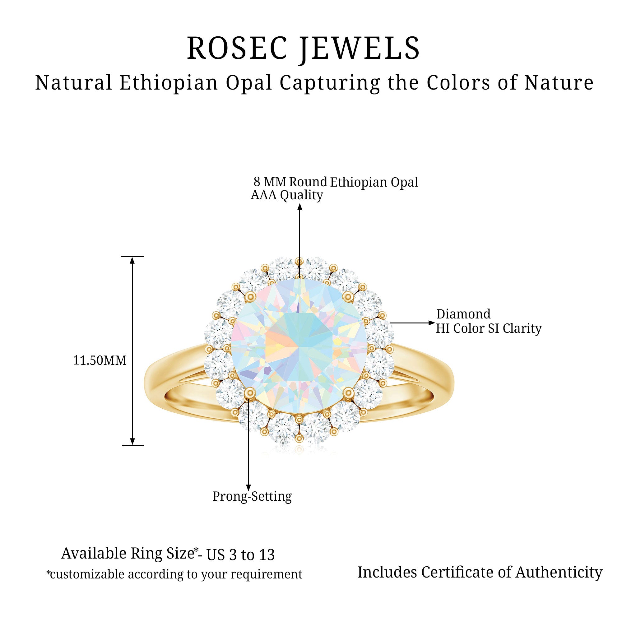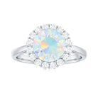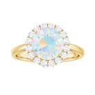 Turn every glance into a moment of wonder with this mesmerizing Ethiopian Opal Engagement Ring, a bold and dreamy symbol of love. At the center, a luminous 8 mm Round Shape Ethiopian Opal set in Prong Setting bursts with rainbow colors, capturing the beauty of your ever-growing connection. A Halo of dazzling Diamond stones wraps the Opal in a ring of light, adding a layer of sparkle that enhances its natural fire without stealing the show. The sleek band offers a modern design while keeping the focus on the mesmerizing center. This Opal Diamond Engagement Ring is made for the bride-to-be who dreams in color and believes in once-in-a-lifetime love. Whether you are planning a surprise proposal or celebrating a love that has already stood the test of time, this Circle Engagement Ring with Opal delivers unforgettable impact with timeless elegance. Packaged in a signature jewelry box and available in a range of sizes, this Classic Engagement Ring is designed to fit beautifully and shine endlessly.