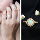 Certified Real 8mm Opalescent Vintage Inspired Engagement Ring with Diamond Halo