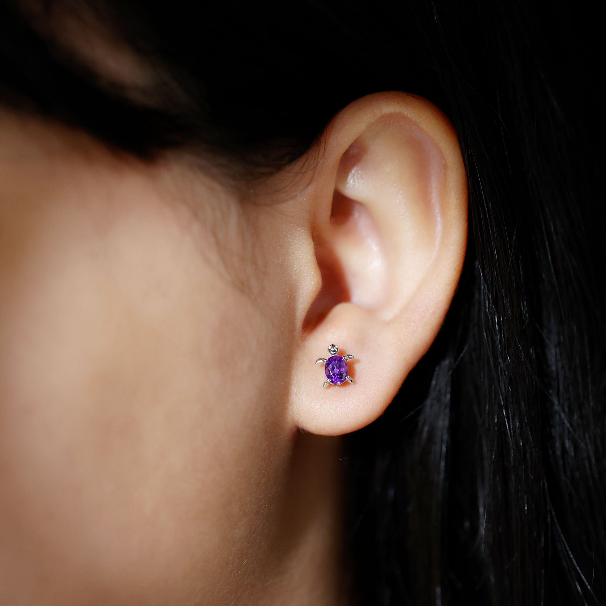 Add a touch of whimsy to your everyday style with these Turtle Earrings, beautifully crafted in 925 Sterling Silver. Each adorable Turtle features a 3X5 mm Oval Shape Amethyst set in Prong Setting, giving off a calming glow that instantly draws attention without feeling overdone. The Screw Back Closure offers a secure fit, making these Amethyst Earrings perfect for anyone who wants comfort as much as charm. Whether you pair them with relaxed weekend outfits or breezy summer dresses, they bring a playful yet elegant vibe that fits effortlessly into any look. Packaged in a signature jewelry box, these Amethyst Stud Earrings arrive ready to be gifted, ideal for birthdays, holidays or simply to brighten someone’s day. These Sea Turtle Earrings carry a little symbolism, celebrating protection, patience and positive energy. For turtle lovers or anyone who enjoys unique jewelry with personality, this pair is a sweet and meaningful choice that feels special every time it is worn.
