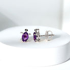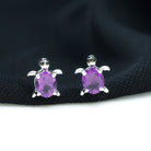 Certified Real Amethyst Turtle Earrings with Screw Back