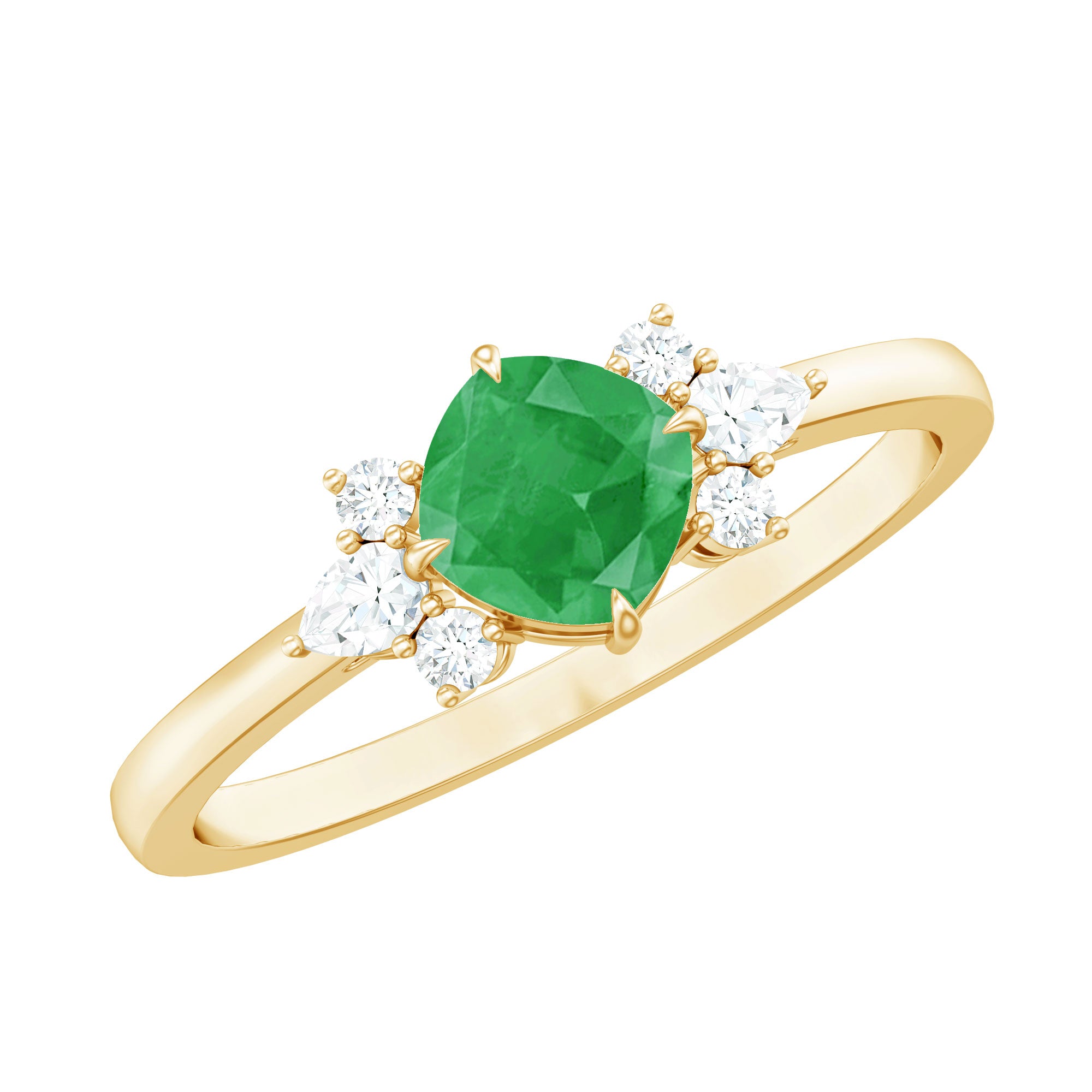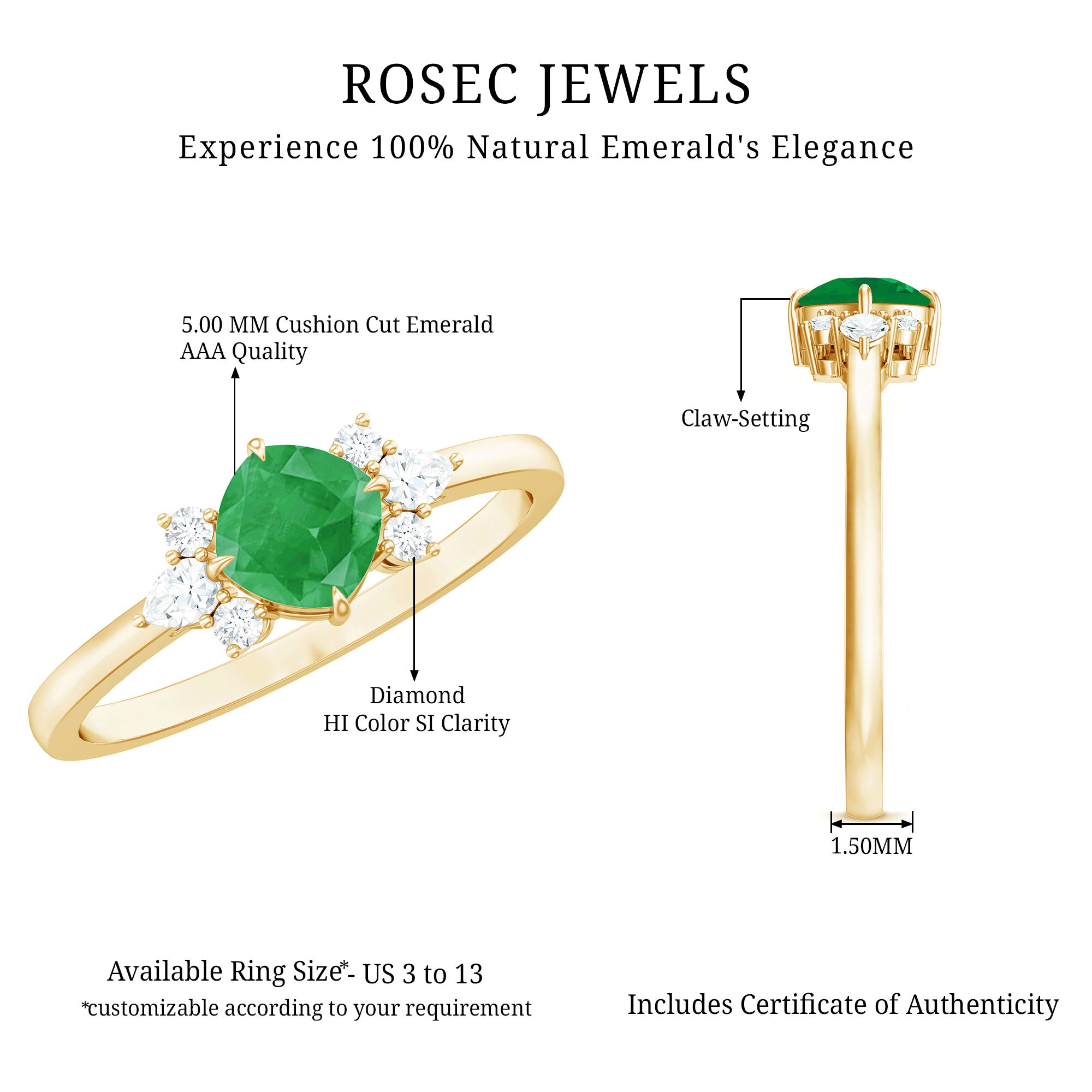 Certified Real Cushion Cut Emerald Engagement Ring with Diamond Trio