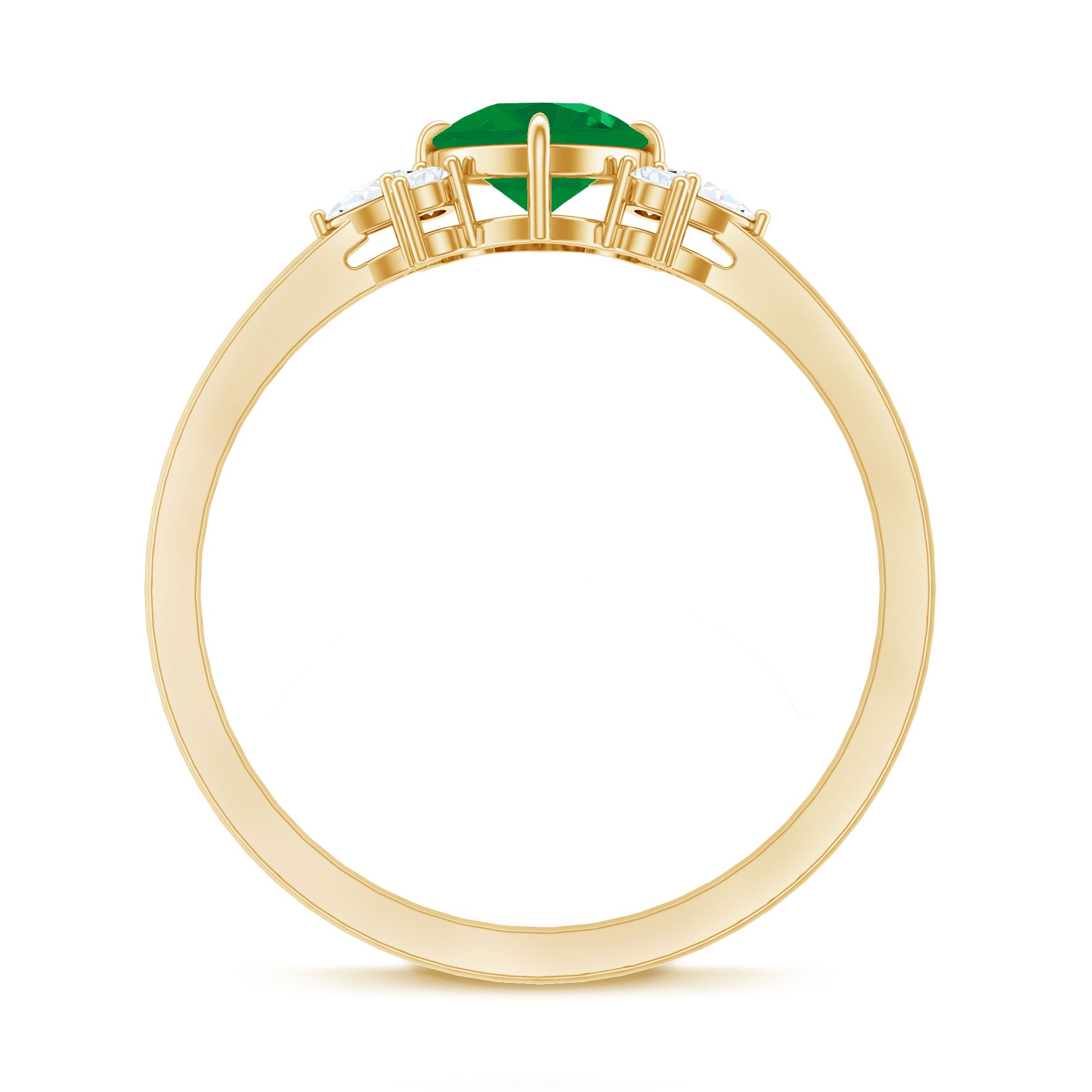 Love begins with a promise and this Emerald Engagement Ring captures that moment in the most enchanting way. The center 5 mm Cushion Cut Emerald stone is diagonally placed in Claw Setting. Framing it on each side, a graceful trio of Pear and Round Shape Diamond stones adds a touch of radiance. Together, they form a symphony of light that celebrates the beauty of two souls becoming one. Designed to capture hearts, this Minimal Engagement Ring combines classic charm with modern artistry, creating a look that feels timeless yet irresistibly fresh. Presented in an elegant jewelry box and available in various sizes, this Emerald Diamond Ring is ready to become the centerpiece of a story written in forever. Whether given in a moment of quiet tenderness or as part of a grand gesture, this Emerald Ring for Women transforms a promise into something eternal. This Real Emerald Ring is a reflection of a love that is rare, radiant and beautifully real.
