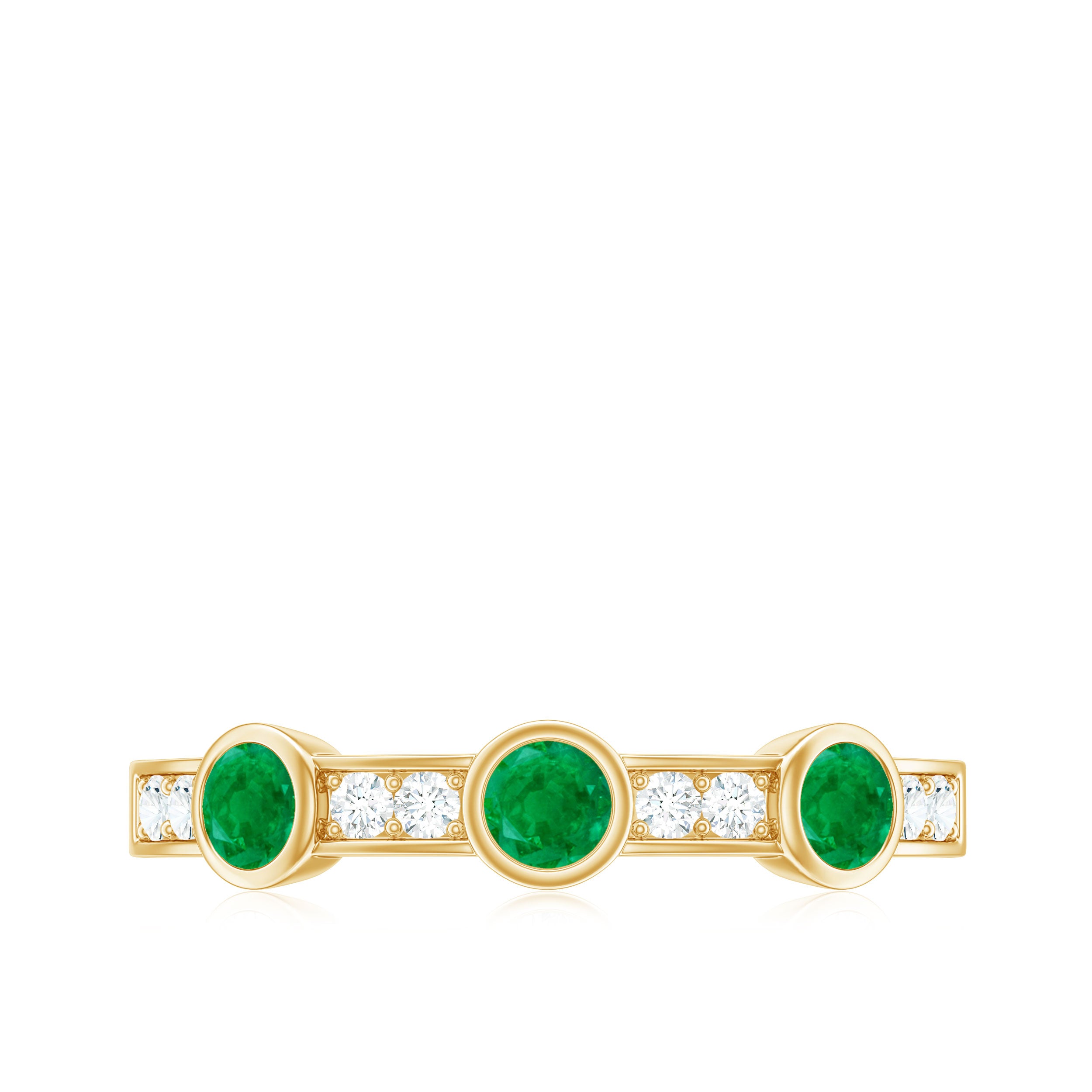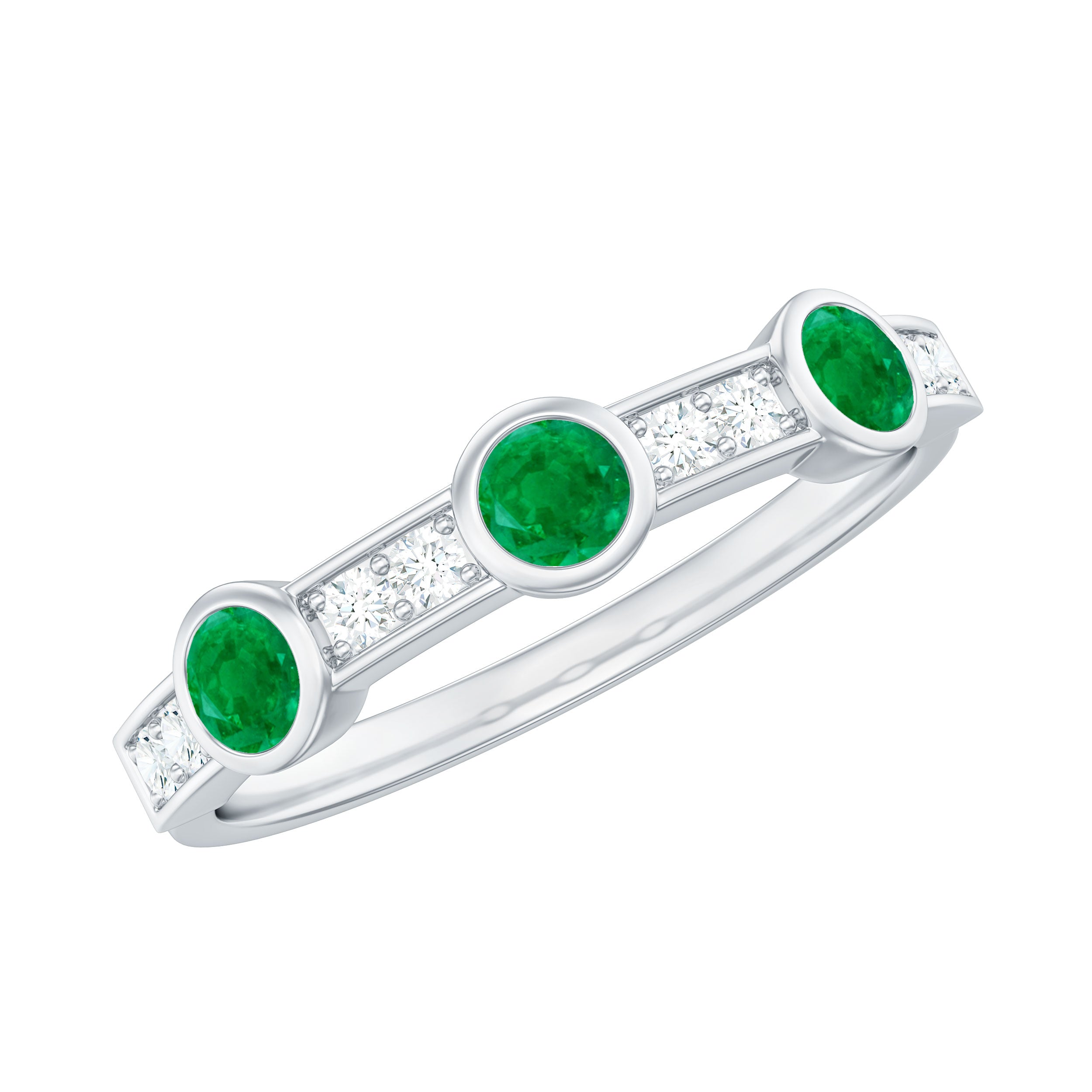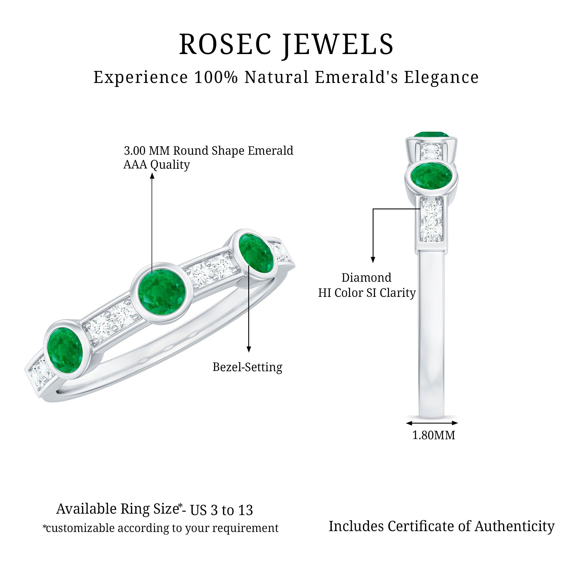 Graceful, radiant and full of meaning, this Half Eternity Ring is a celebration of love that endures through every moment. This exquisite band features 3 mm Round Shape Emerald and dainty Diamond stones placed in a thoughtful alternating design, symbolizing the harmony and balance shared between two hearts. Each AAA Quality Emerald shines with deep green brilliance, representing renewal and devotion, while every HI-SI Diamond adds a touch of timeless sparkle. Together, they tell a story of passion, commitment and everlasting affection. Designed with elegance and versatility in mind, this Bezel Set Emerald Ring is perfect for marking milestones, anniversaries or simply expressing love in a way that words cannot capture. Presented in a signature jewelry box and available in various sizes, this Emerald Diamond Ring makes an unforgettable gift, turning any special occasion into a cherished memory.