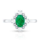Certified Real Emerald Oval Engagement Ring with Diamond