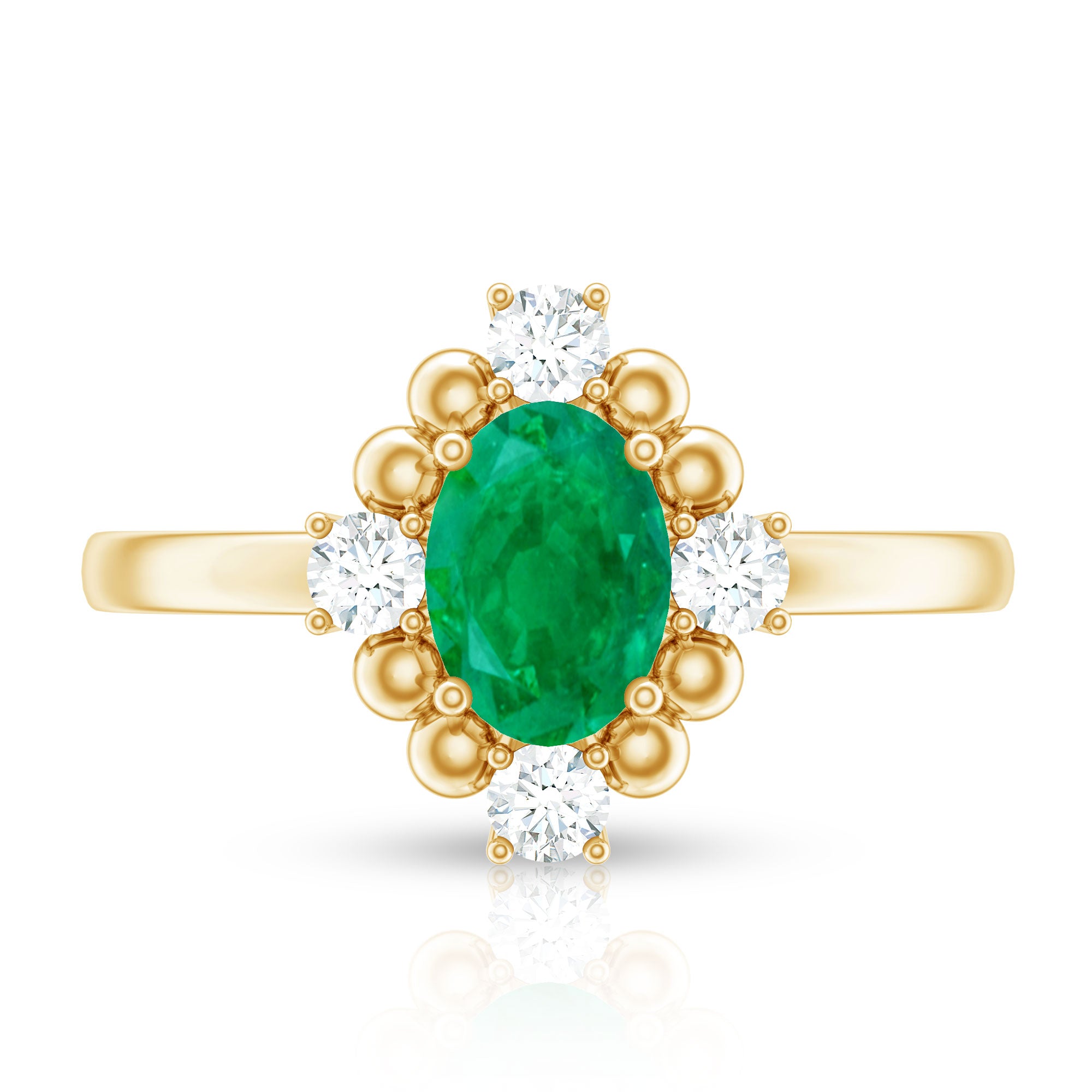 This mesmerizing Oval Engagement Ring is a masterpiece crafted to celebrate the magic of forever. At the center, a 5X7 mm Oval Shape Emerald glows with deep green brilliance, symbolizing faith, renewal and the rare beauty of true love. Surrounding this precious gem, a delicate halo of sparkling Diamond stones and Beaded detailing adds a touch of vintage charm and artistic grace. The result is a design that feels both timeless and deeply personal, a reflection of a love that is as unique as the two of you. This Emerald Diamond Engagement Ring is thoughtfully crafted to capture light, emotion and devotion in perfect harmony. Presented in a signature jewelry box and available in a range of sizes, this Halo Engagement Ring with Emerald is a symbol of commitment and a promise wrapped in elegance. Whether it is for a heartfelt proposal or a treasured gift, this Vintage Looking Engagement Ring transforms every moment into a memory of everlasting love, destined to be cherished for generations to come.