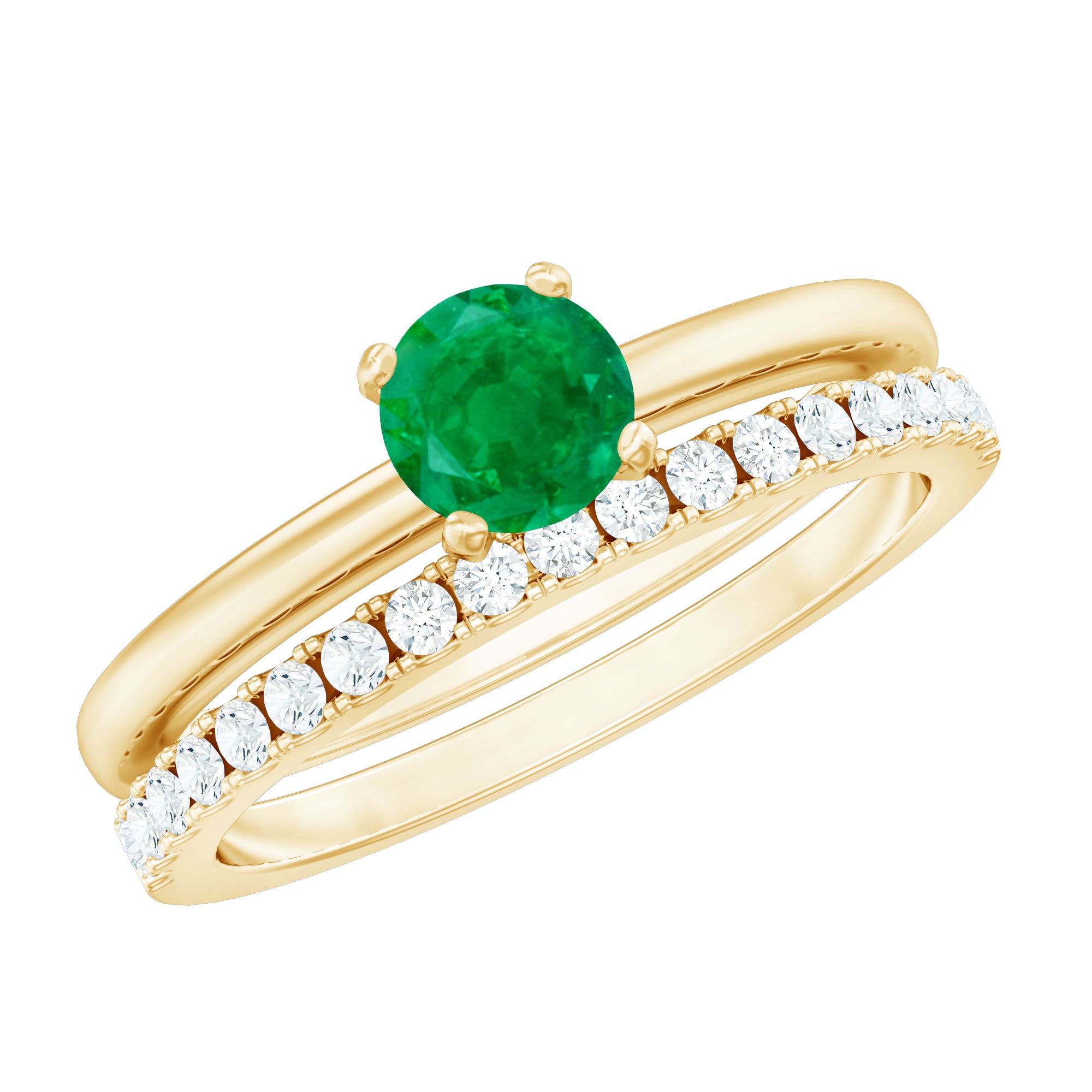 Step into forever with this exquisite Wedding Bridal Ring Set, a breathtaking duo that celebrates love in its most elegant form. It includes a 5 mm Round Emerald Solitaire Engagement Ring that glows with a rich green brilliance, timeless and full of meaning. The vivid hue of AAA Quality Emerald captures the deepest emotions of the heart, symbolizing harmony, growth and devotion that only strengthens with time. Complementing it perfectly, the Diamond Wedding Band wraps around the Engagement Ring with graceful symmetry, its sparkling stones adding layers of brilliance that elevate the entire design. Together, they create a harmony of light and color that feels both regal and romantic. Meticulously crafted for beauty and balance, this Emerald Wedding Ring Set is ideal for the woman who cherishes sophistication with a touch of uniqueness. Whether for a heartfelt proposal, a cherished anniversary or simply to celebrate the enduring glow of love, this Emerald Engagement Ring with Wedding Band arrives beautifully presented in an elegant jewelry box and is available in a range of ring sizes for the perfect fit.