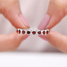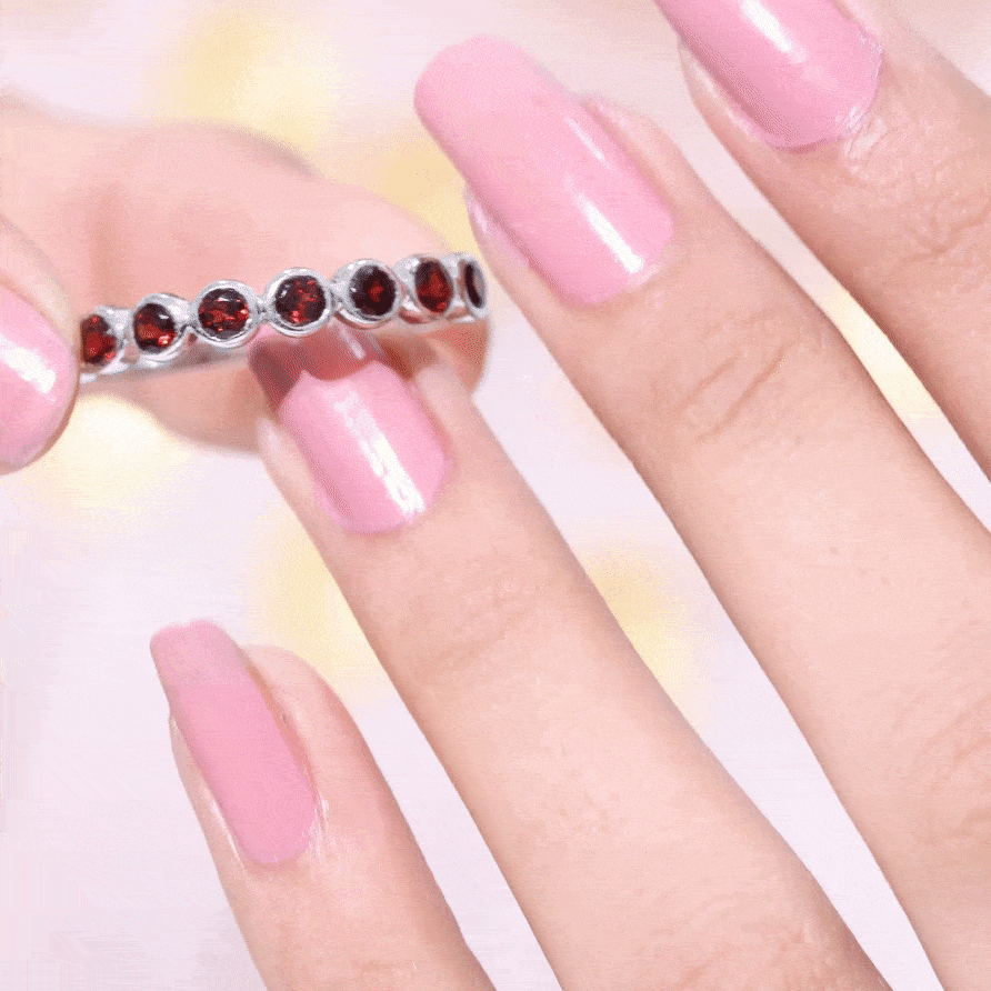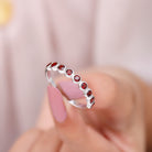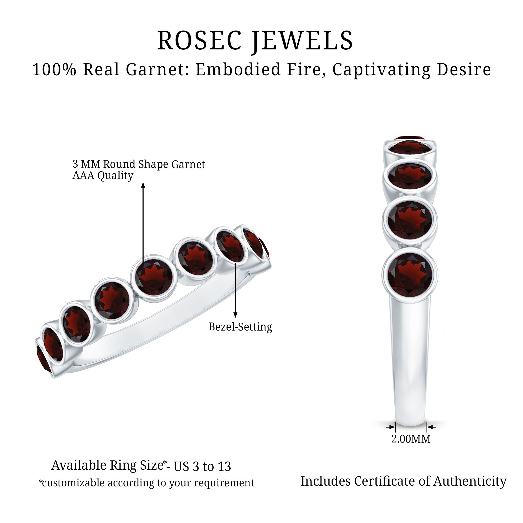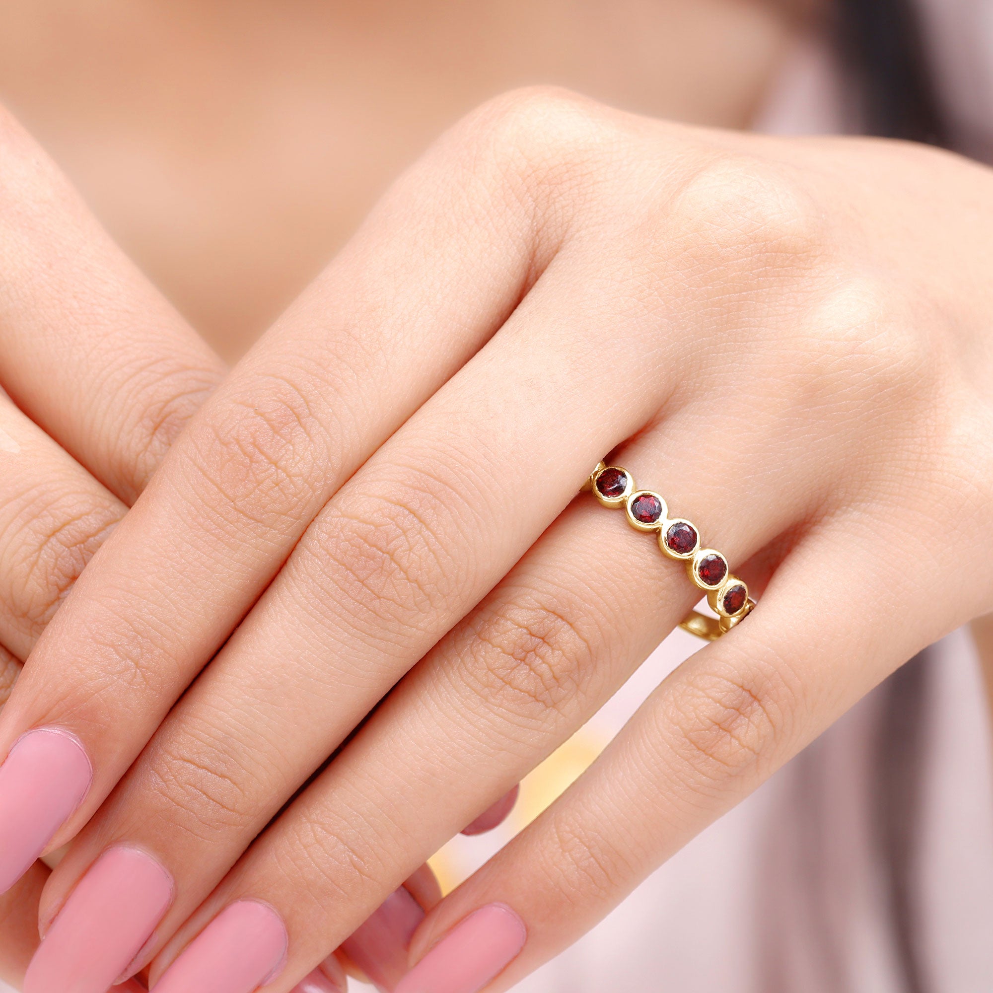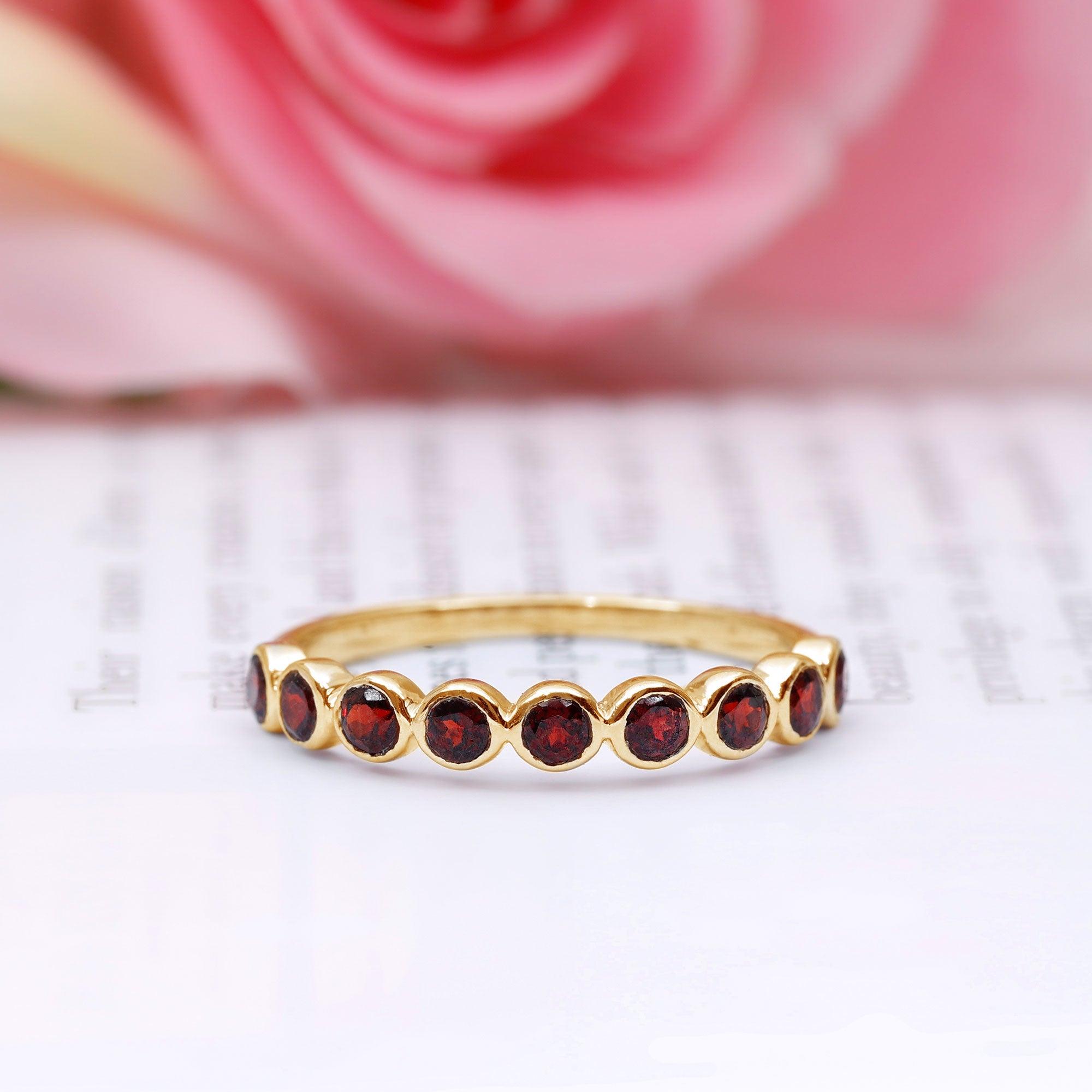 Eye-catching yet wonderfully romantic, this Half Eternity Ring is designed to capture the depth and warmth of everlasting love. Each Bezel Set 3 mm Round Shape Garnet sparkles with red hue, carefully set along half the band to create a perfect balance of elegance and comfort. The graceful design makes this Garnet Eternity Ring easy to wear every day, while the glowing line of AAA Quality Garnet gemstones adds a touch of magic to even the simplest outfit. Whether worn alone for a minimalist look or stacked with your favorite rings, this Red Garnet Ring brings a beautiful sense of meaning and style to your hand. Available in various US sizes and packaged in a signature jewelry box, this Real Garnet Ring arrives ready to gift for anniversaries, promises or moments that deserve to be remembered forever. With its heartfelt charm and modern simplicity, this Garnet Birthstone Ring is the perfect expression of romantic elegance.