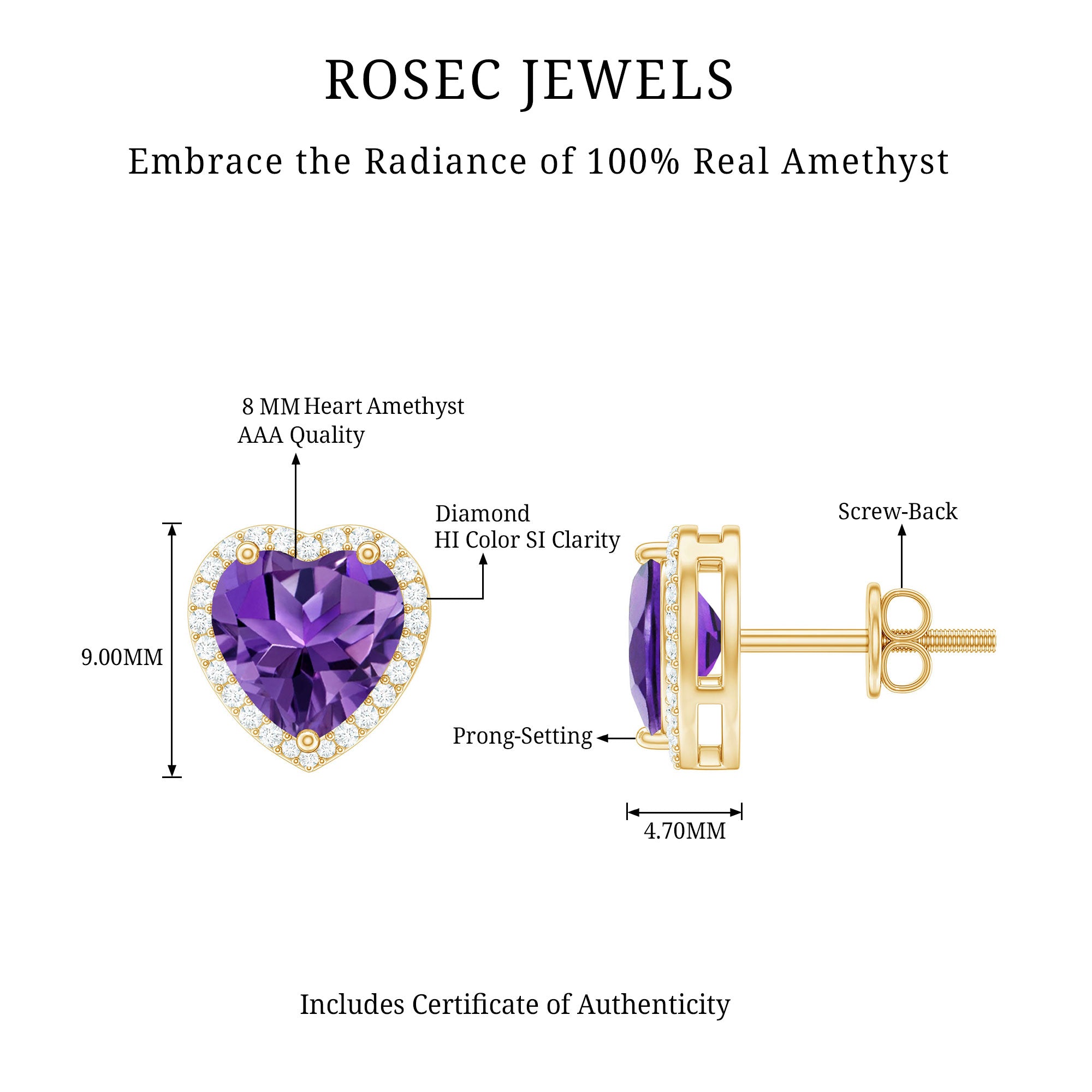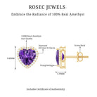 Certified Real Heart Shape Amethyst Stud Earrings with Diamond Halo