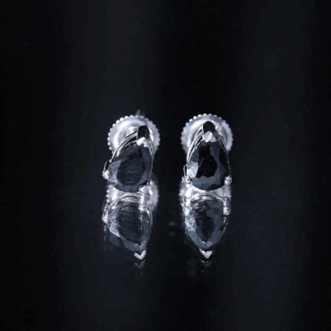 Certified Real Pear Shaped Black Spinel Earrings with Screw Back
