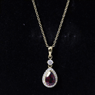 Certified Rhodolite Garnet Teardrop Necklace with Diamond Halo
