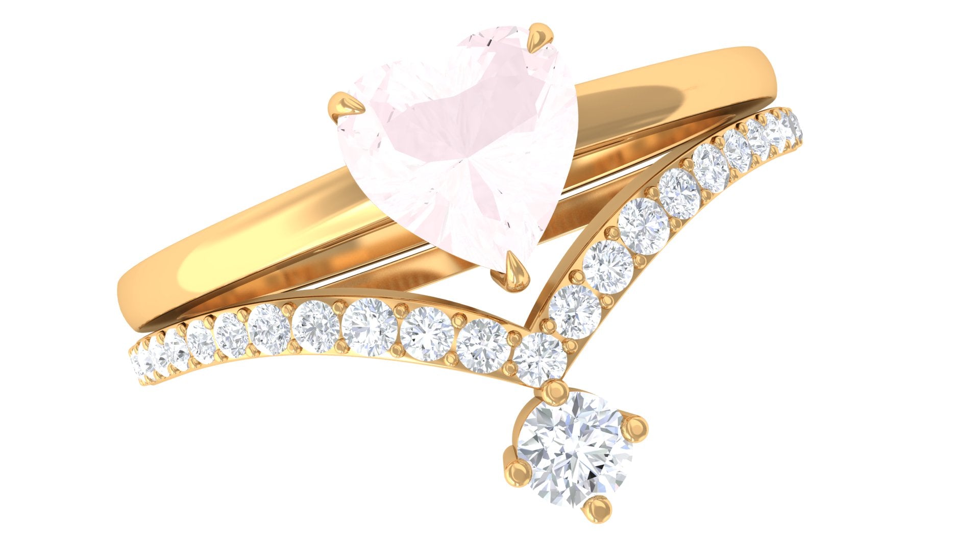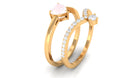Certified Rose Quartz Heart Ring Set with Diamond