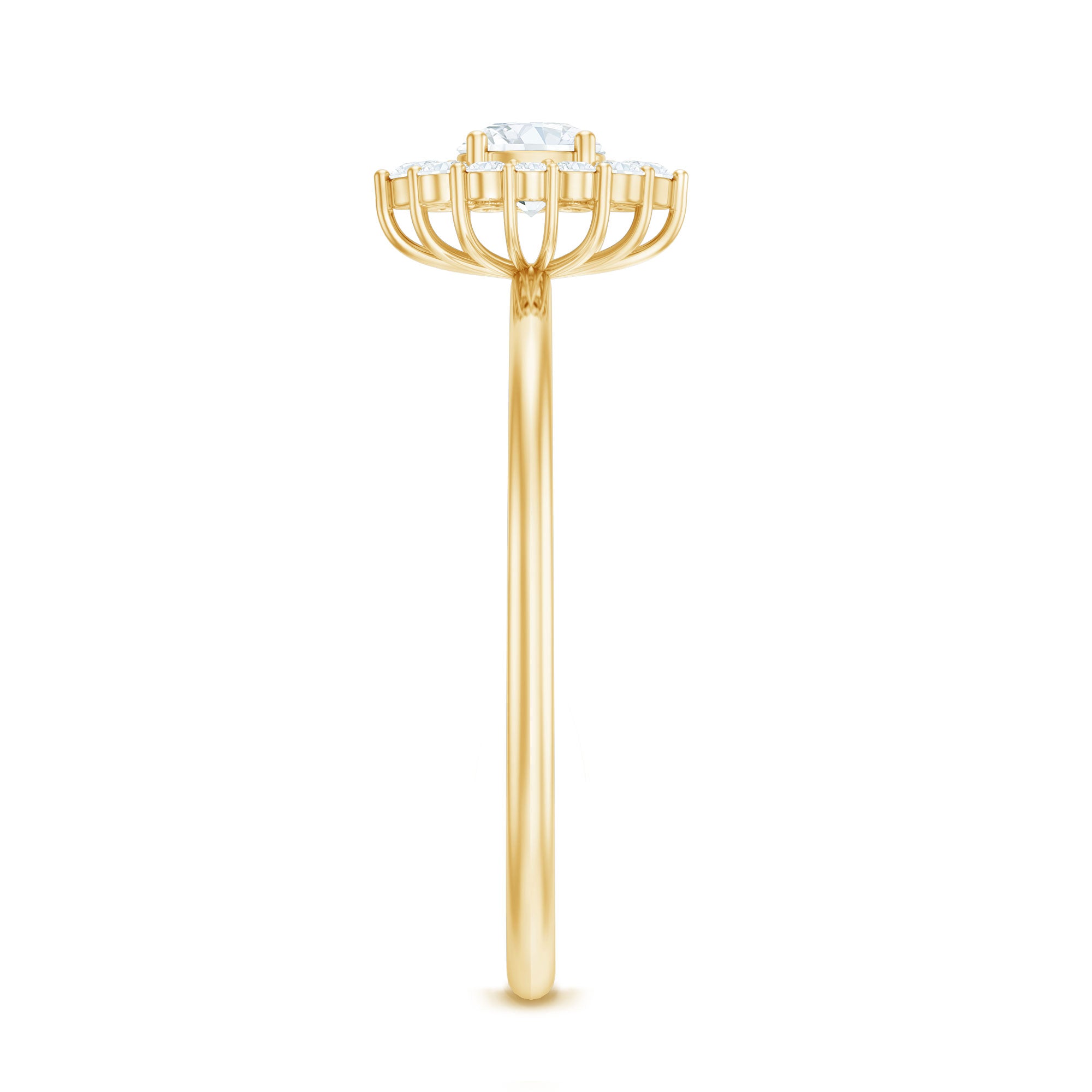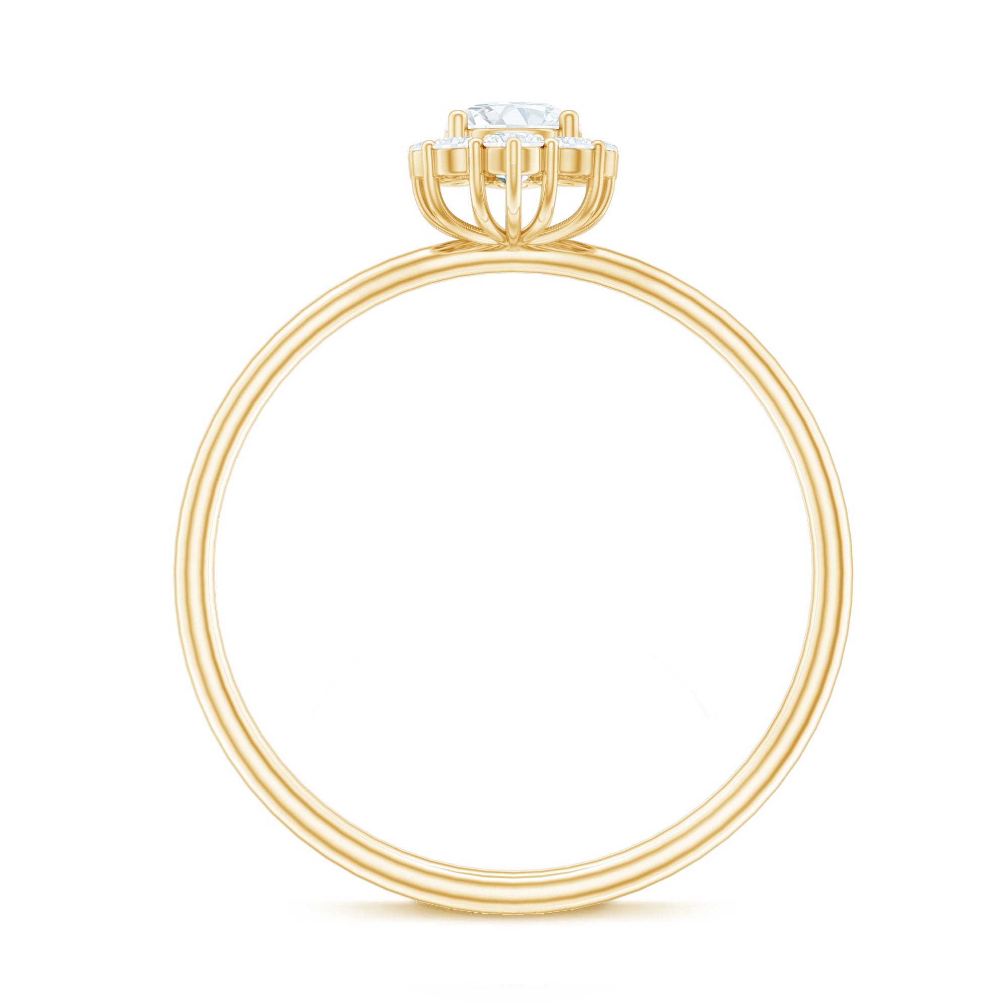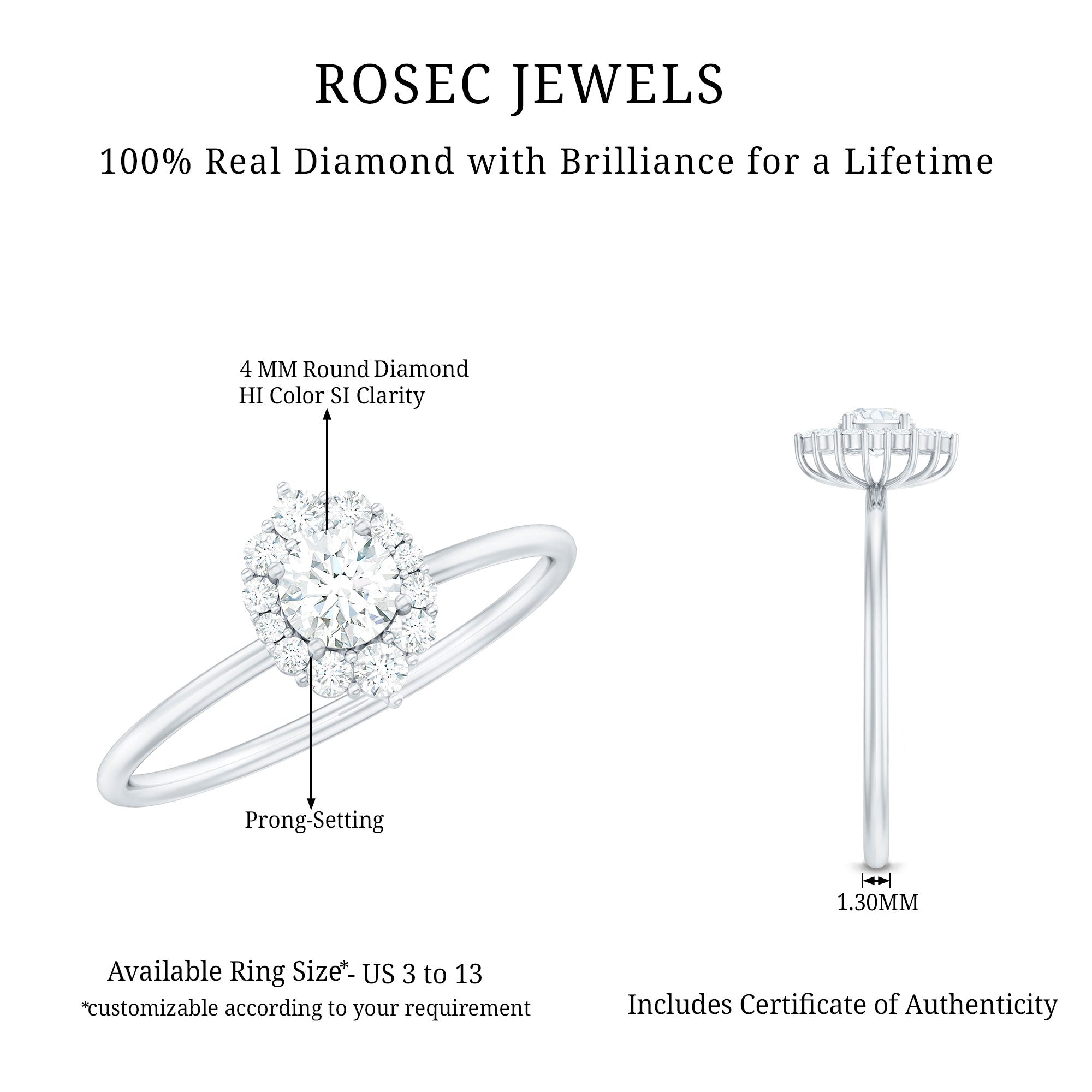 The classic appearance of a Diamond Engagement Ring has enhanced sparkle that glistens from every angle. As a mark of the timeless embrace that delivers glow from every perspective. As a constant reminder of the brilliance of your connection, this Ring is adorned with Round Shape Diamond in Prong Setting, along with a Halo of Accent. This Ring is the perfect representation of the bond you share. The classic elegance and enduring appeal of this Circle Engagement Ring symbolizes everlasting love. It is an enchanting piece of fine jewelry for sumptuous appeal. This Classic Diamond Ring is captivating, and it effortlessly draws attention to its radiance. Designed to captivate attention, this Halo Ring creates a dazzling sparkle by adding a subtle touch of brilliance, enhancing the center stones brilliance and also shows off its breathtaking beauty. The unbroken circle of the halo beautifully represents an eternal bond and complete devotion, a perfect echo of the promise you are making. Let the infinite sparkle be the shining beginning of your forever.
