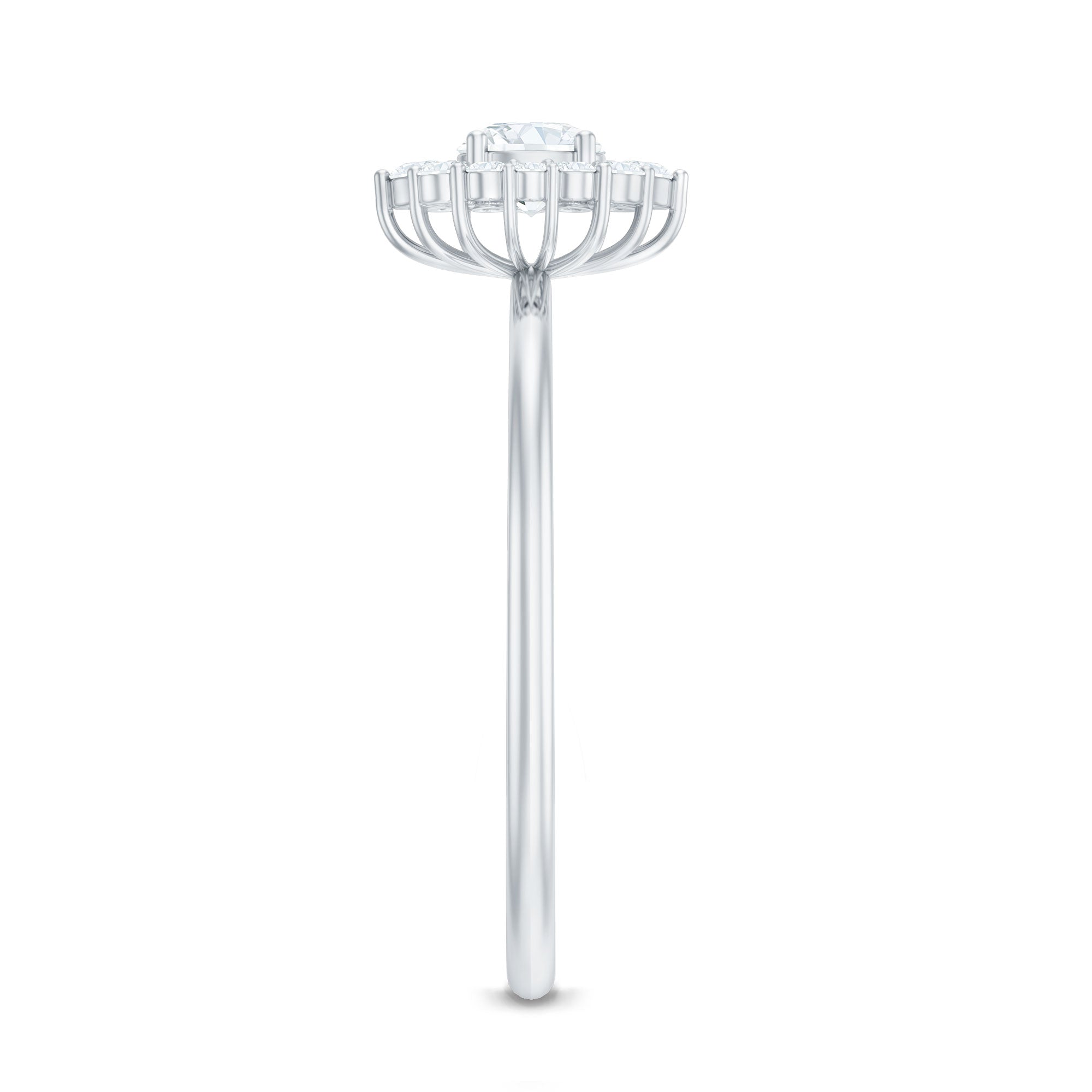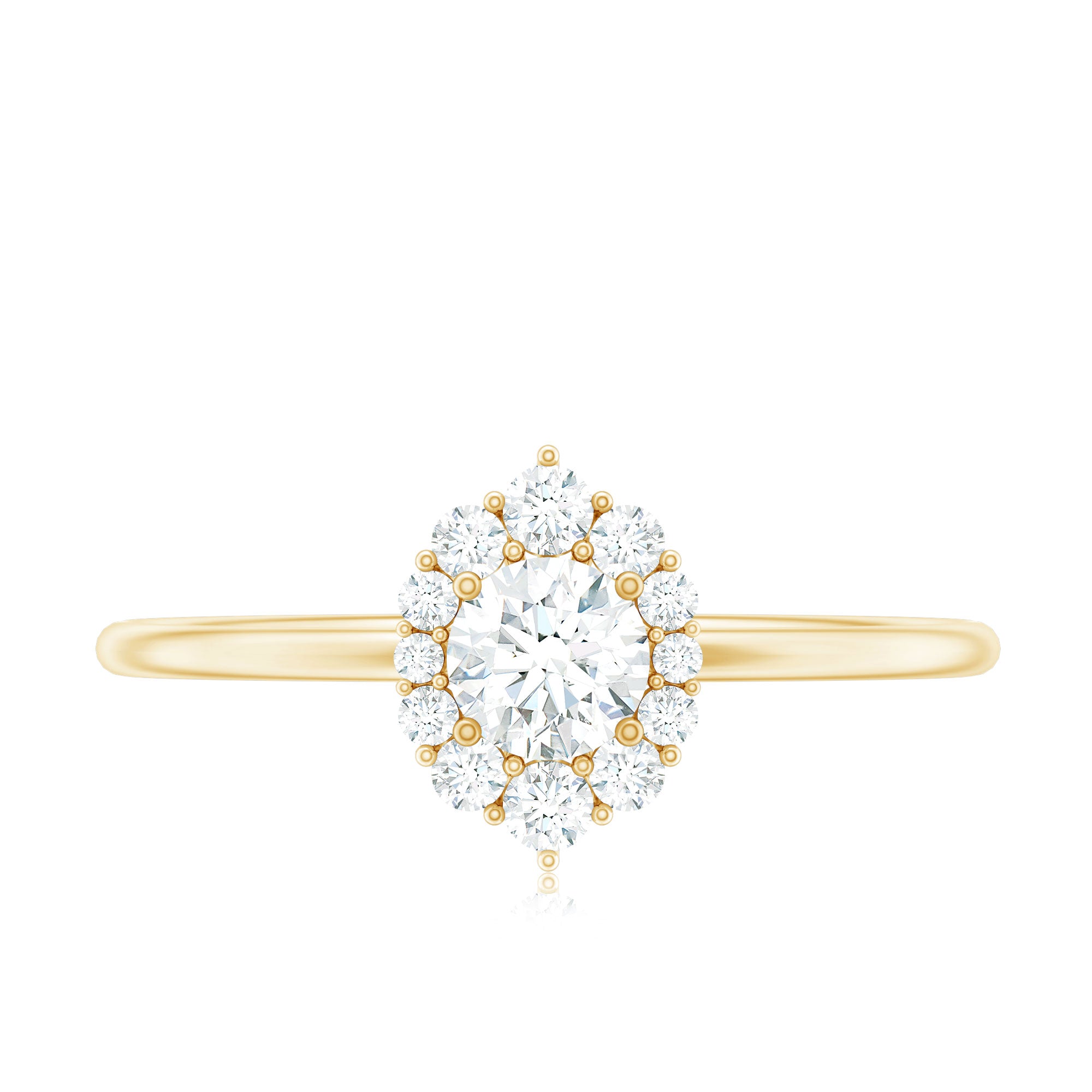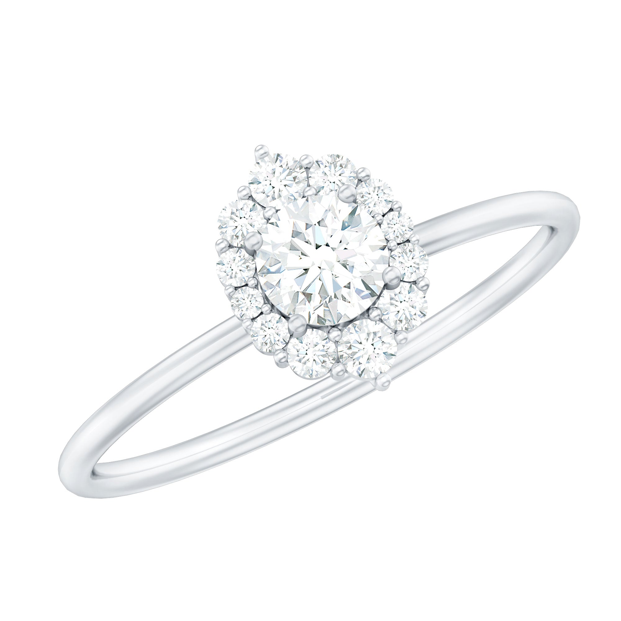 The classic appearance of a Diamond Engagement Ring has enhanced sparkle that glistens from every angle. As a mark of the timeless embrace that delivers glow from every perspective. As a constant reminder of the brilliance of your connection, this Ring is adorned with Round Shape Diamond in Prong Setting, along with a Halo of Accent. This Ring is the perfect representation of the bond you share. The classic elegance and enduring appeal of this Circle Engagement Ring symbolizes everlasting love. It is an enchanting piece of fine jewelry for sumptuous appeal. This Classic Diamond Ring is captivating, and it effortlessly draws attention to its radiance. Designed to captivate attention, this Halo Ring creates a dazzling sparkle by adding a subtle touch of brilliance, enhancing the center stones brilliance and also shows off its breathtaking beauty. The unbroken circle of the halo beautifully represents an eternal bond and complete devotion, a perfect echo of the promise you are making. Let the infinite sparkle be the shining beginning of your forever.