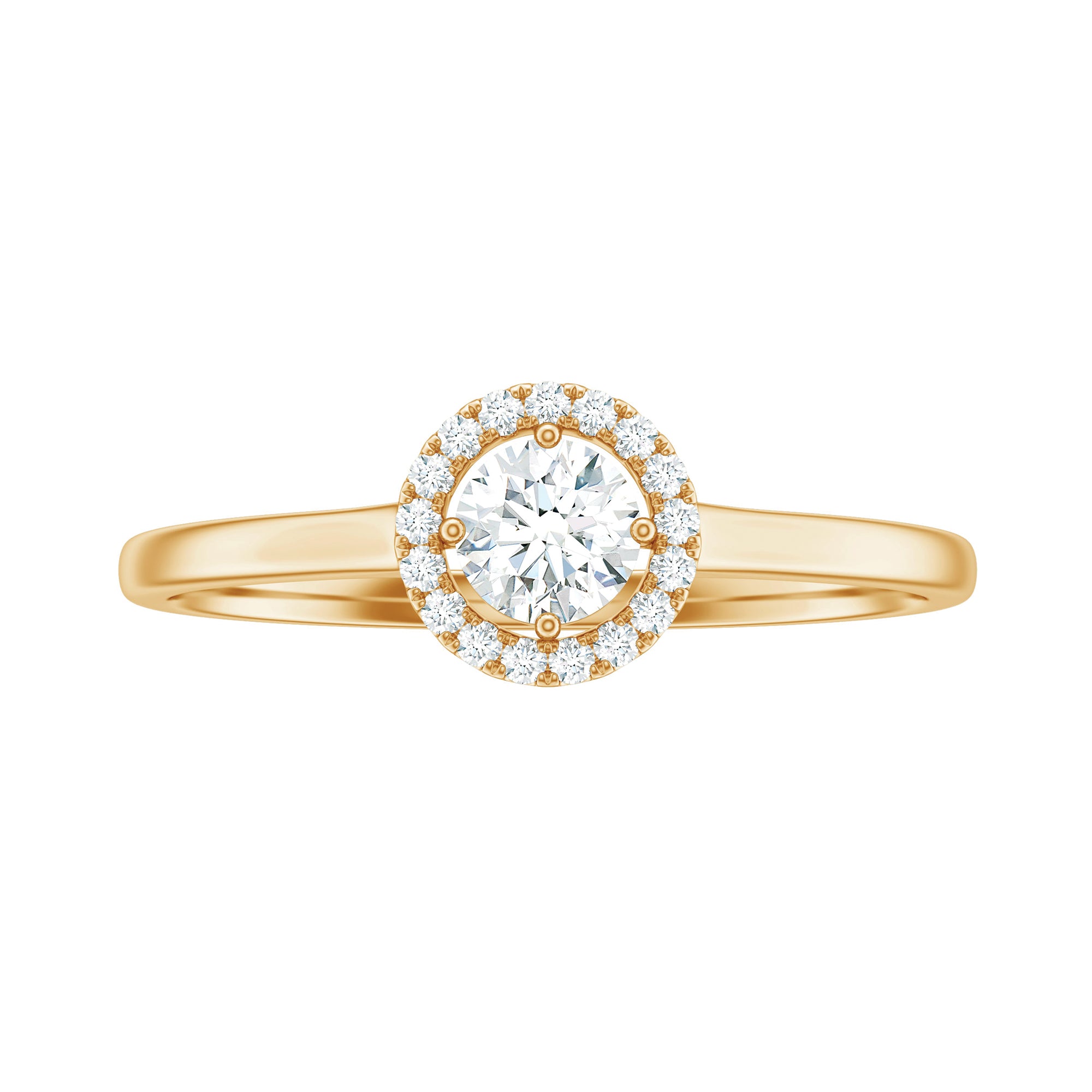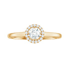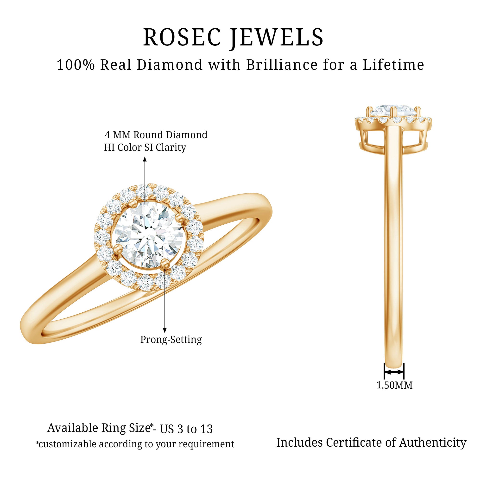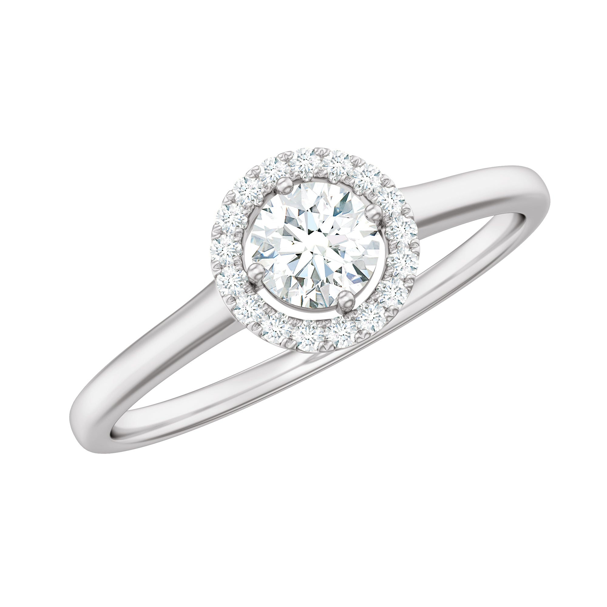 Simple and sophisticated, this Diamond Promise Ring continues to shine for years to come. The timeless and classic look of this Ring will make you look glamorous. Unique and special, it is a classic and timeless piece of jewelry that would impress the onlookers. Its dramatic effect has intensified the sparkle that enhances its brilliance to an extraordinary degree. This ring is brilliantly adorned with Round Shape Diamond sitting elegantly in Prong Setting. To accentuate the center stone is the Round brilliant cut Diamond halo, which is endlessly elegant and iconic. Crafted to capture her heart, this exquisite Commitment Ring gleams with timeless elegance. Amplifying its sparkle and creating a breathtaking display of light, this Promise Engagement Ring is a profound declaration of your unwavering commitment and a beautiful symbol of the love you share and the future you envision together. It whispers a story of devotion and a beautiful future together. Also, a tangible expression of your deepest affections, this Halo Diamond Ring is designed to be cherished for a lifetime.