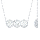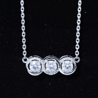 Certified Round Moissanite 3 Stone Bar Necklace with Silver Chain