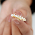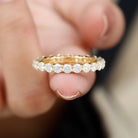 This elegant Moissanite Eternity Ring brings timeless sparkle and everyday sophistication together in one beautifully crafted piece. Designed for the woman who loves a hint of brilliance in her daily look, this full eternity band features a continuous row of premium round cut moissanites, set securely in shared prong setting. Each stone is carefully chosen to ensure unmatched fire and radiance, making it a symbol of love that never fades. Whether worn solo for a refined look or stacked with an engagement ring or other bands for a layered look, this Moissanite Wedding Band will definitely give you a classy touch. The shared prong setting allows maximum light to pass through each moissanite, delivering brilliance from every angle while maintaining a sleek and comfortable fit. This Moissanite Stackable Ring represents enduring commitment, unity, and elegance. It is a perfect choice for marking a wedding, anniversary, or any milestone worth celebrating. Whether you are gifting it to someone special or adding it to your own collection, this Round Eternity Ring is a meaningful piece that combines lasting style with heartfelt symbolism.