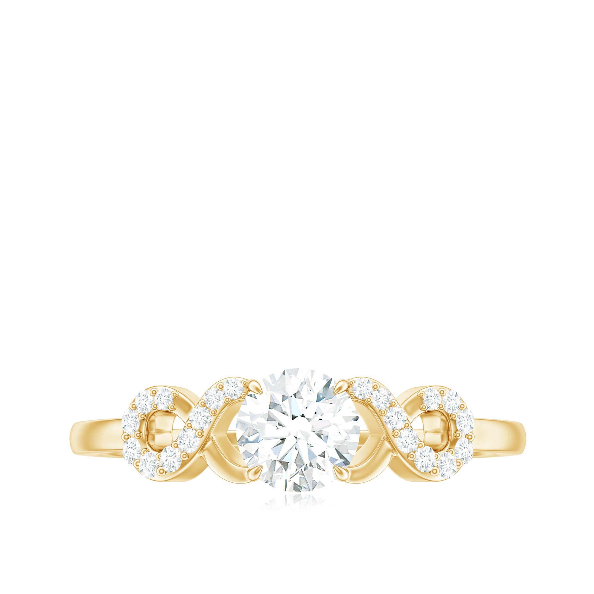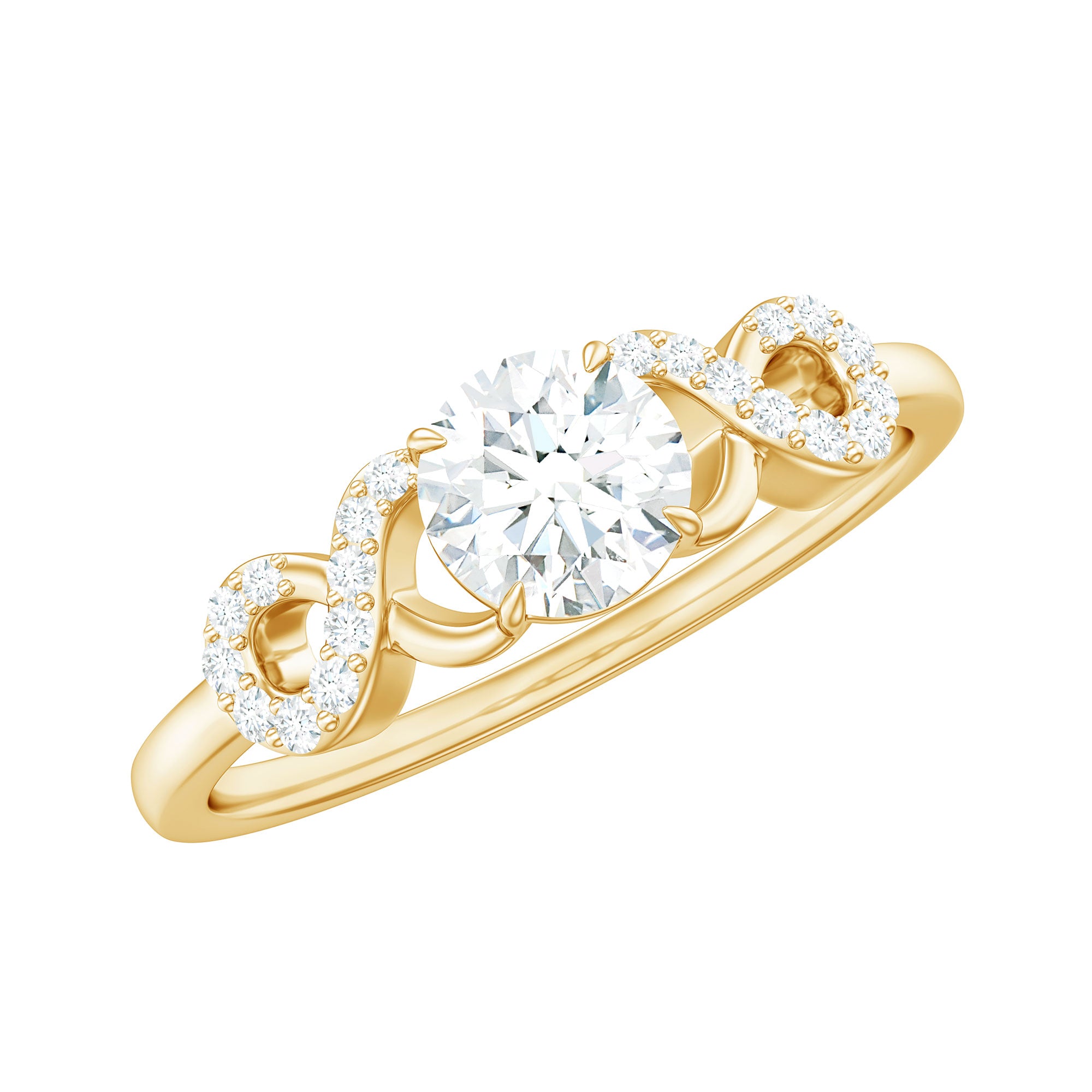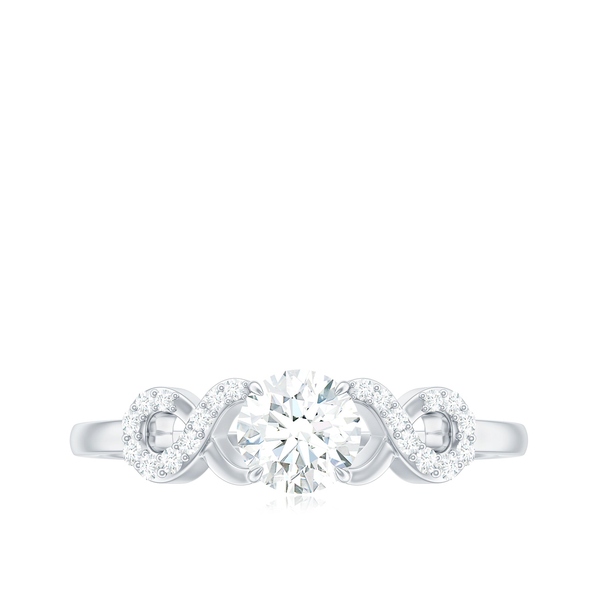 Celebrate your forever love with this beautiful Infinity Promise Ring, a piece that speaks straight from the heart. Whether you are marking a promise, commitment, or just want to show how much someone means to you, this ring says it all in the most timeless way. At the center sits a sparkling 5 MM round cut moissanite, secured in claw setting. Its brilliant shine instantly catches the eye and pairs perfectly with the graceful infinity-style shank, a symbol of love that never ends. To make it even more special, the infinity motifs on both sides of the center stone are accented with dainty round cut stones, adding just the right amount of sparkle without going over the top. This Moissanite Promise Ring blends modern charm with a classic feel. The D-VS1 quality moissanite, known for its ethical sourcing and budget-friendly brilliance, gives you the dazzling look of a diamond, without the high price tag. It is a thoughtful and affordable choice for meaningful occasions. Lovingly handcrafted by Rosec Jewels, this Proposal Ring reflects careful craftsmanship and a true eye for detail.