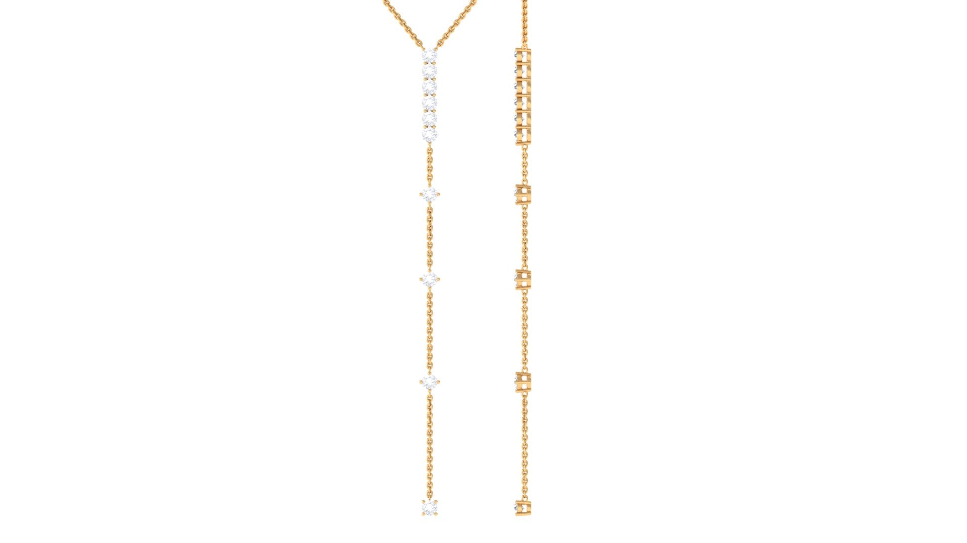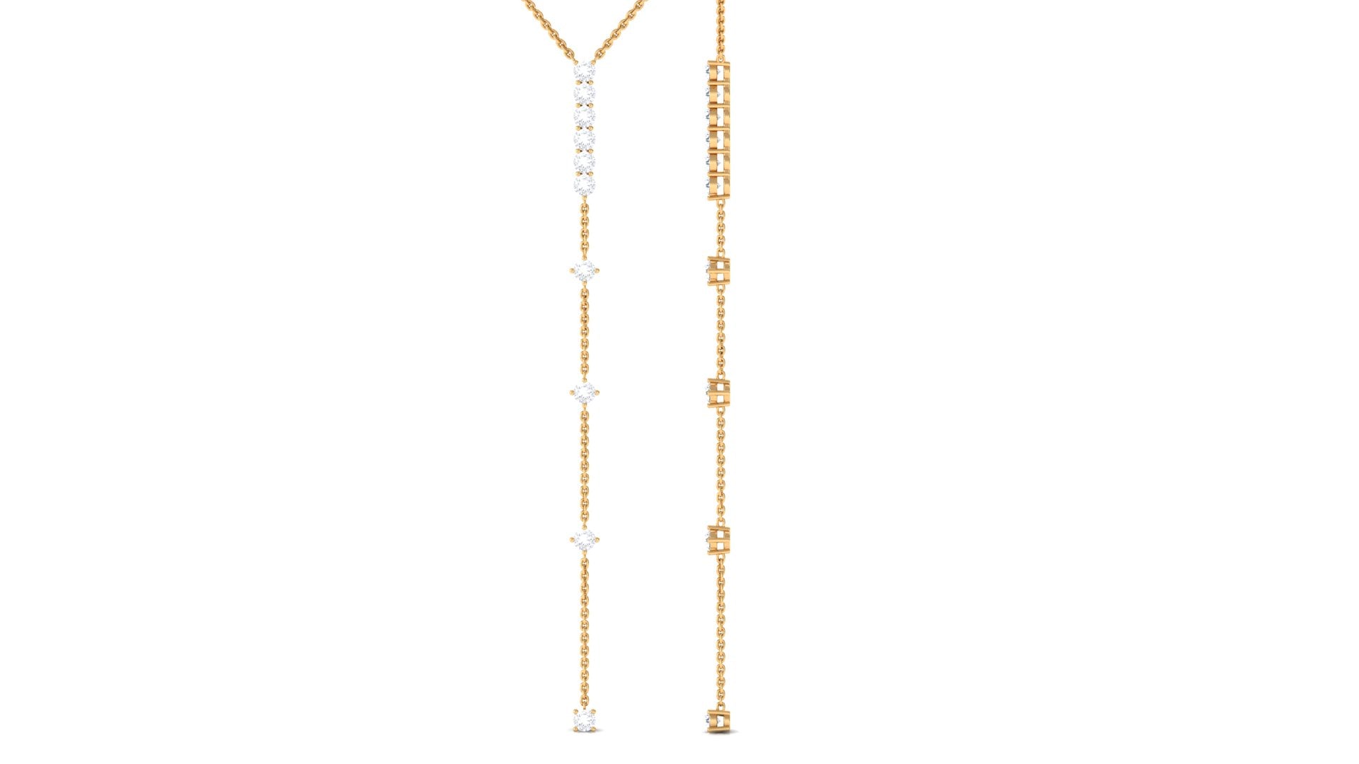 This Y Lariat Necklace is precisely crafted to decorate your neckline. It features moissanite stones linked in a chain which adds an extra shine to the necklace. This Lariat Necklace is perfect to be paired with a statement necklace that will level up the stacking game. This necklace beholds the classic shine of D-VS1 Quality Moissanite featured in the necklace. This Moissanite Necklace will be delivered to you in premium quality packaging.