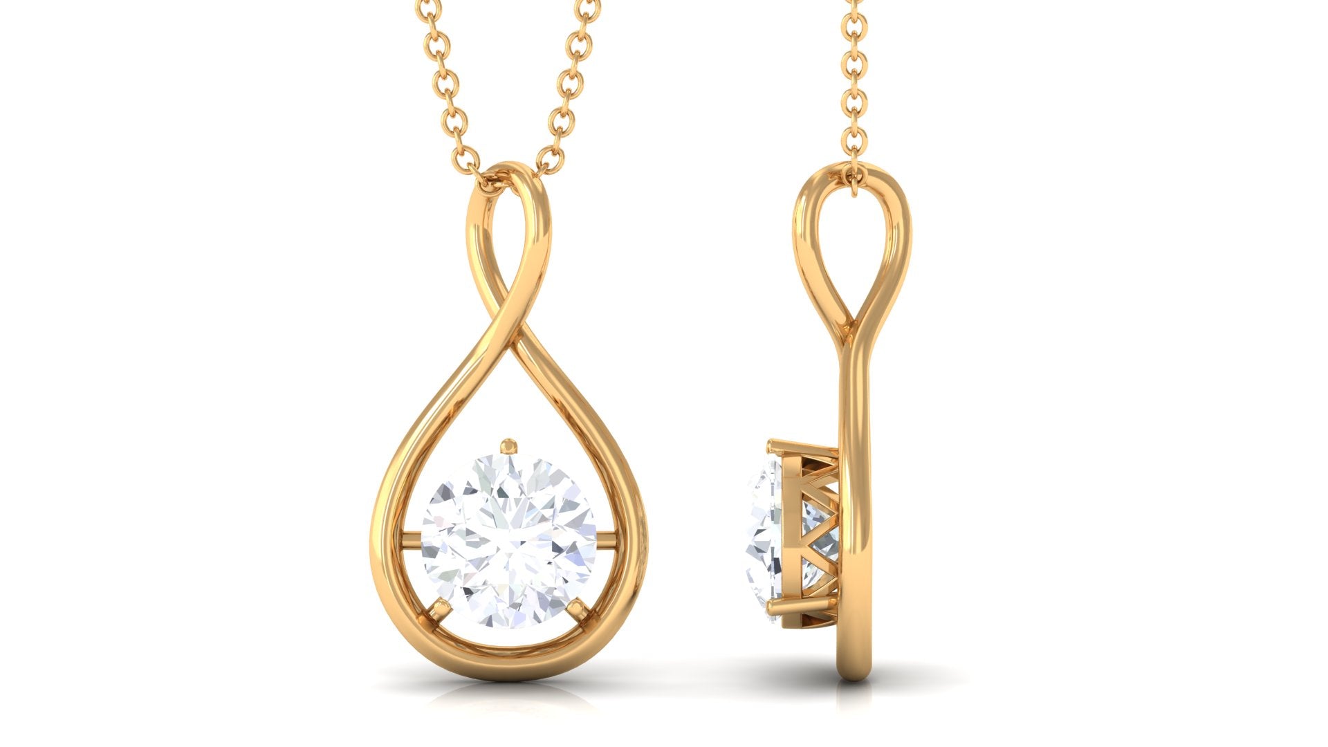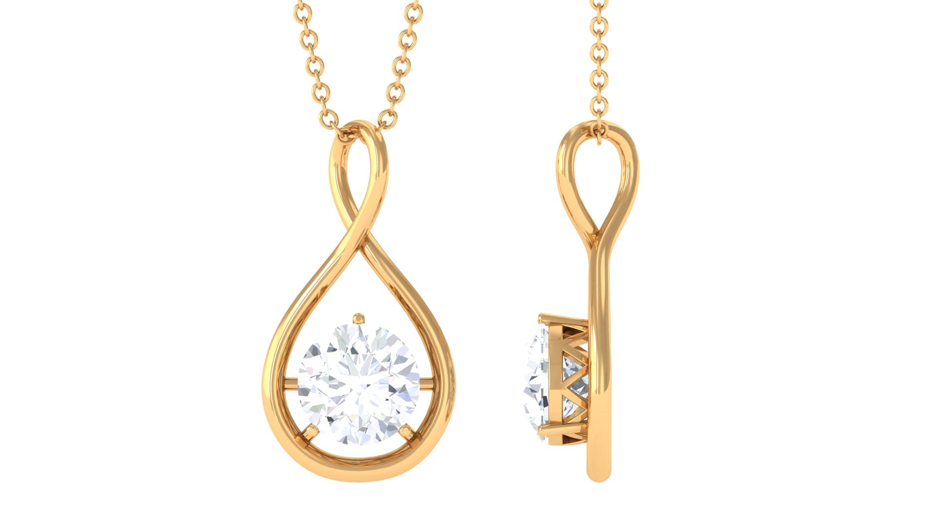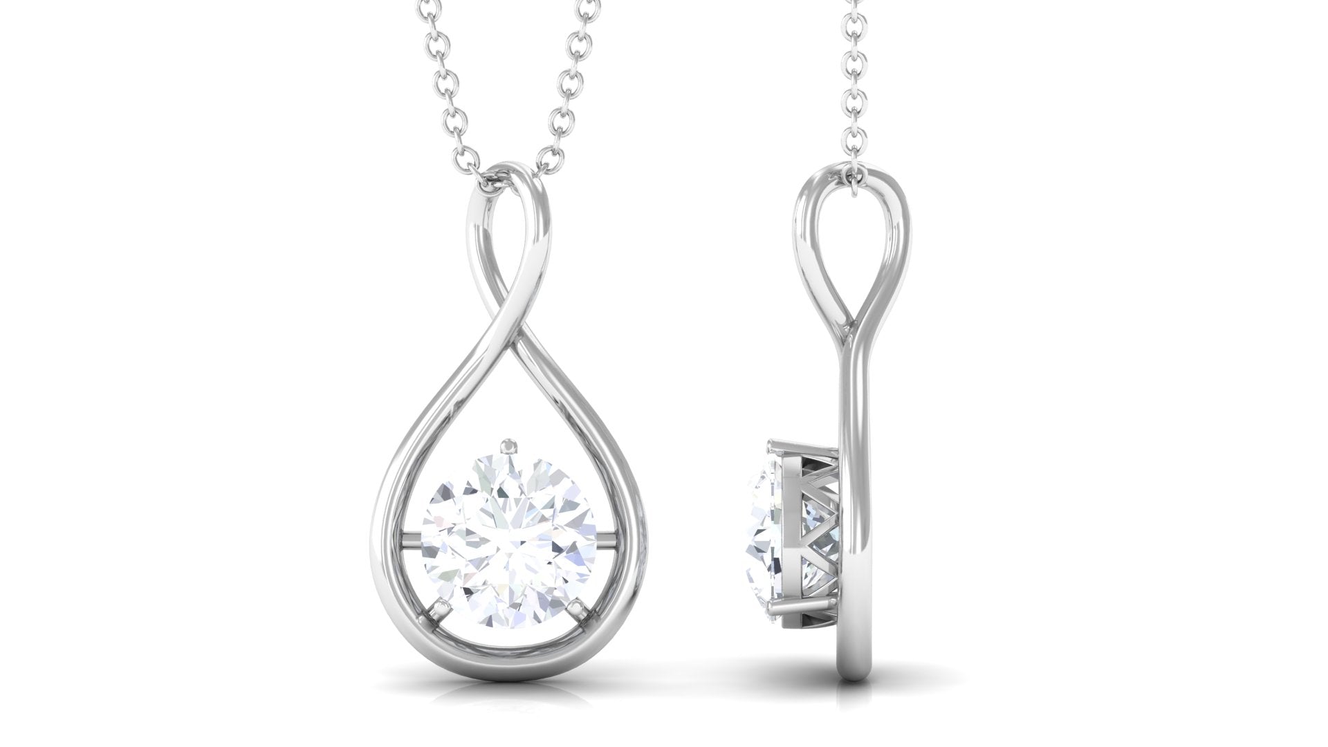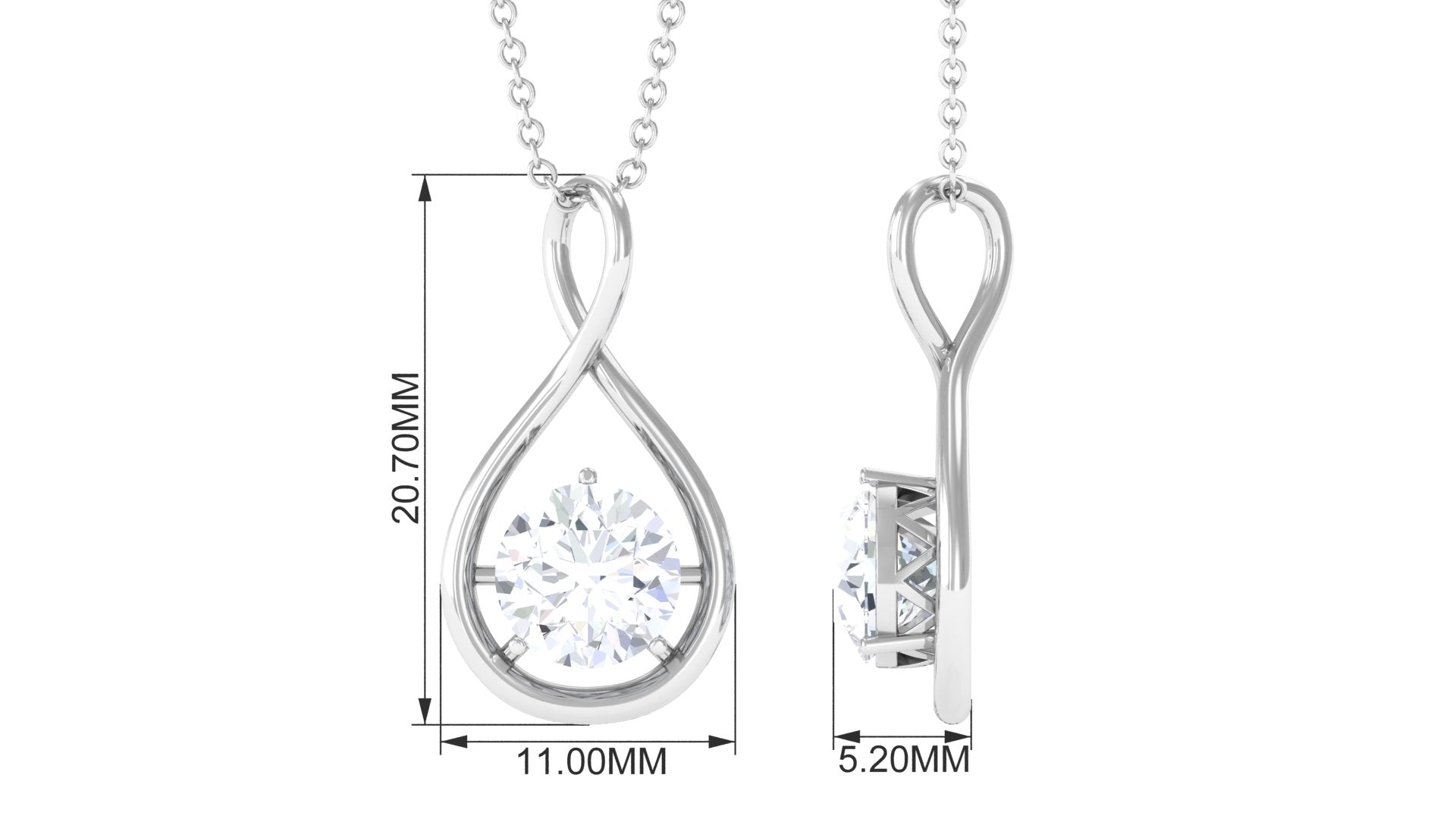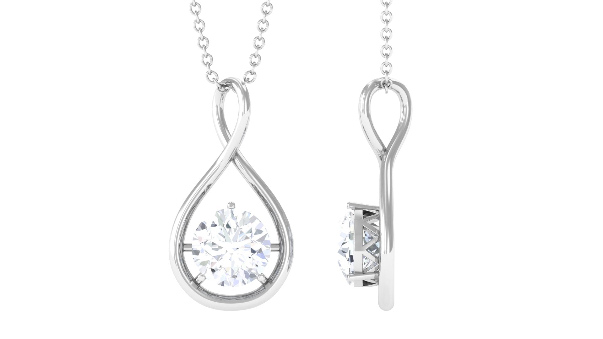 Explore the adorable beauty with this Infinity Moissanite Pendant. It features a 7 MM Round Shape Moissanite securely placed in 3 Prong Setting. The center stone is placed in a metallic infinity frame which gives it a classic look to the pendant. This Solitaire Necklace beholds the classic shine of D-VS1 quality which adds glares to your neckline. This Infinity Pendant can be a beautiful gift to celebrate love with your beloved on a special day. Get her this pendant and witness a priceless reaction from her which will be cherished forever.