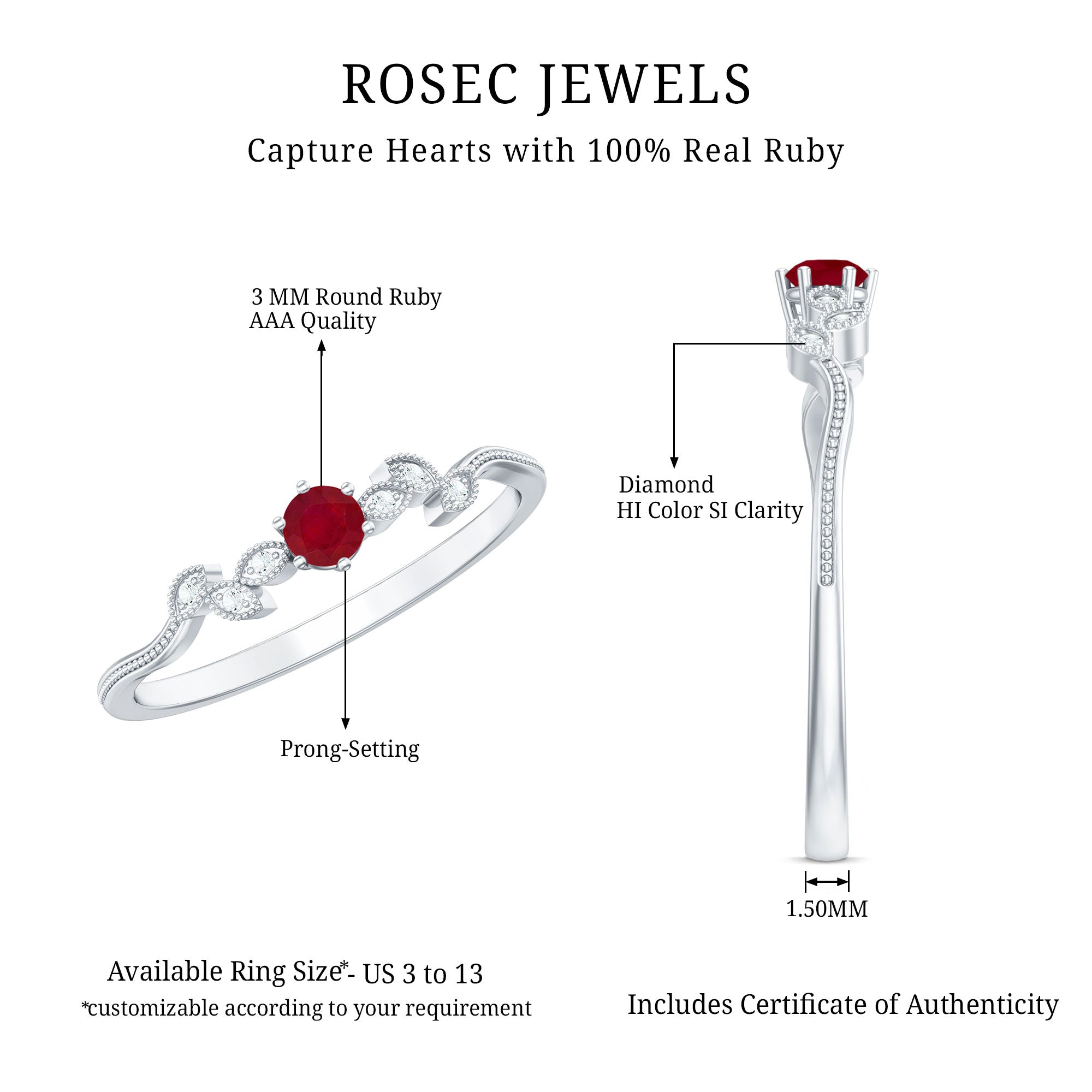 Certified Ruby and Diamond Leaf Branch Promise Ring