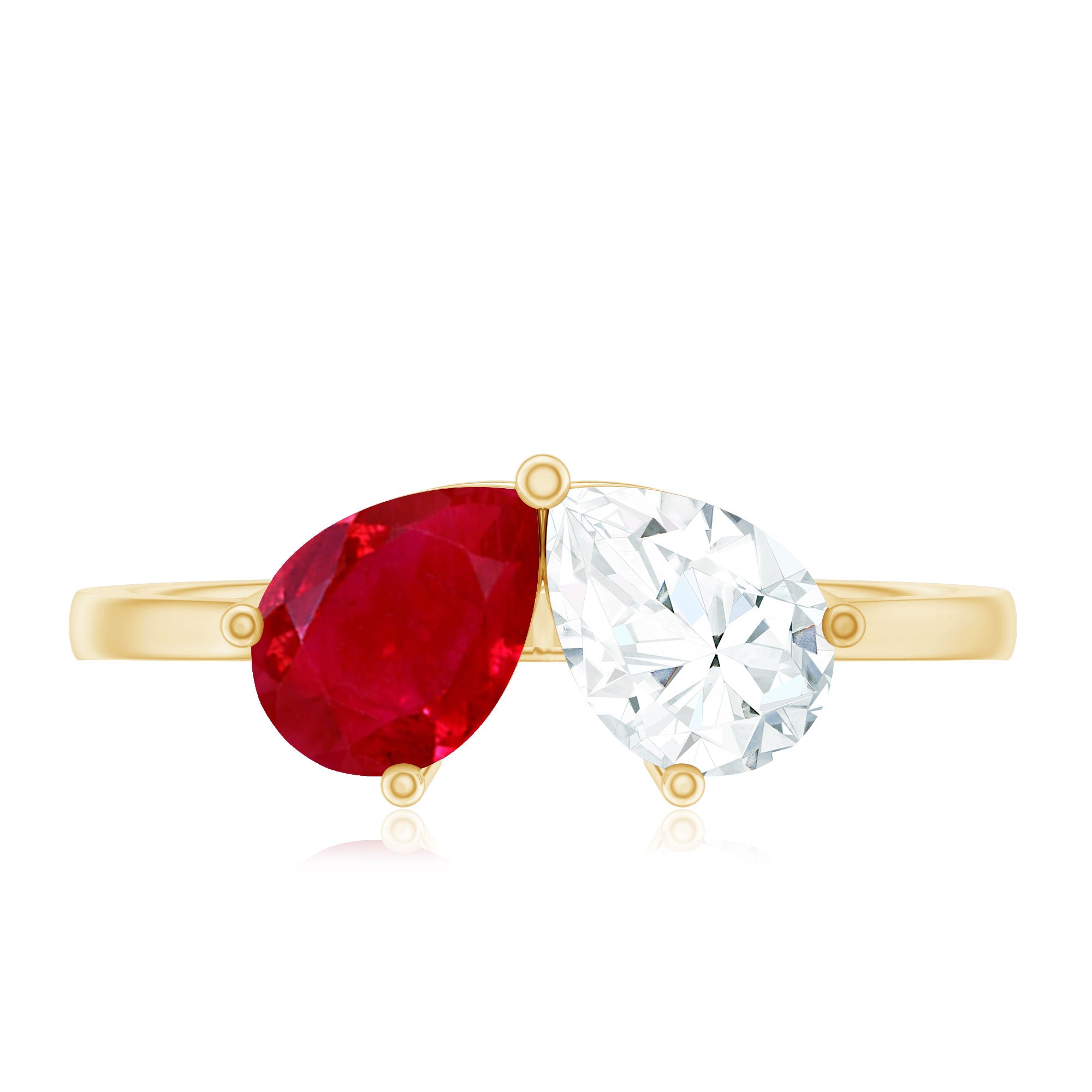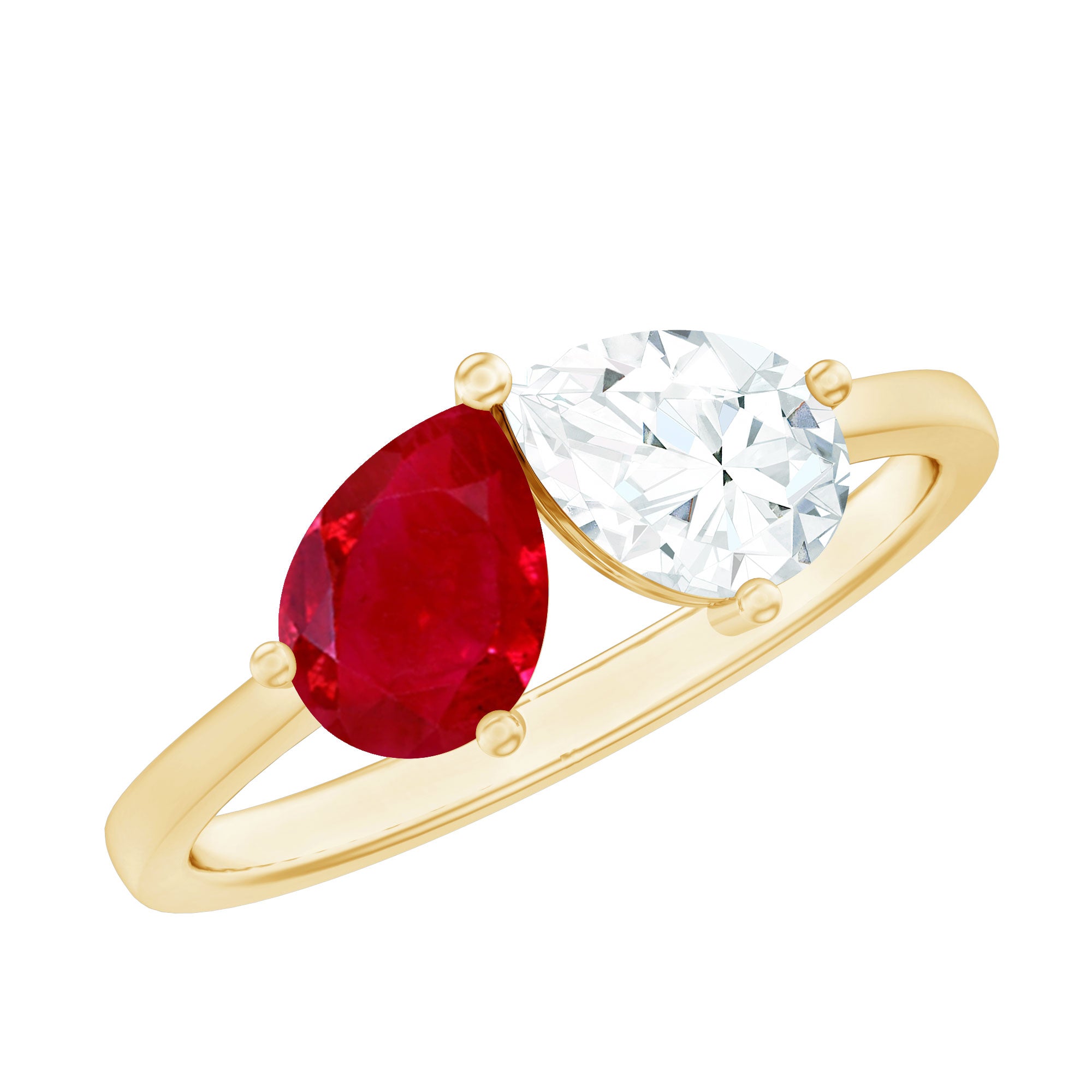 This beautiful Ruby Promise Ring is truly one-of-a-kind and a must-have addition to any jewelry collection. Its delicate and understated design makes it a charming and subtle statement piece that any woman would adore. Show your love and affection by gifting her this stunning Ruby Two Stone Ring, which she will treasure forever. The ring features a 5X7 MM Pear shaped Ruby in a secure Prong Setting, complemented by a shimmering Pear Shaped Lab Grown Diamond stone. With a beautiful representation of you and me, this Toi Et Moi Ring is an ideal Valentines Day gift for your special someone. Truly embody your love and commitment, this Ruby and Diamond Ring, with symbolism and beauty. Dazzle with the enchanting refinement of this Pear Shape Promise Ring has luxury that ensures brilliance from every angle. So, fall in love with this 2 Stone Promise Ring and add a romantic touch to your look.