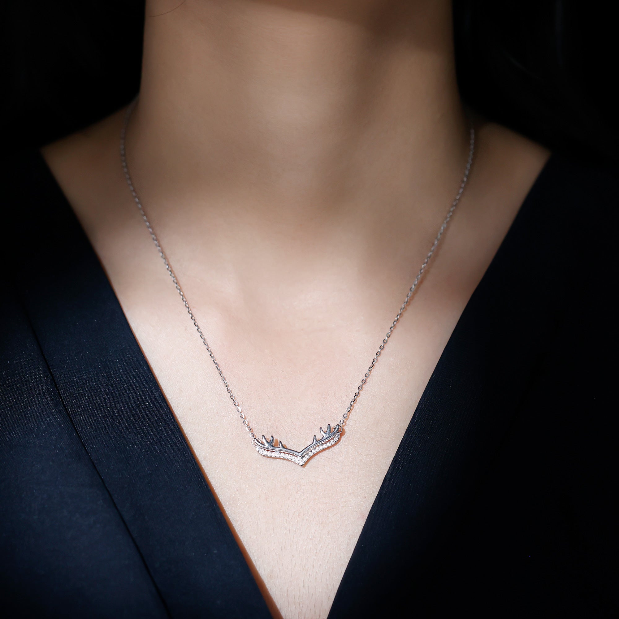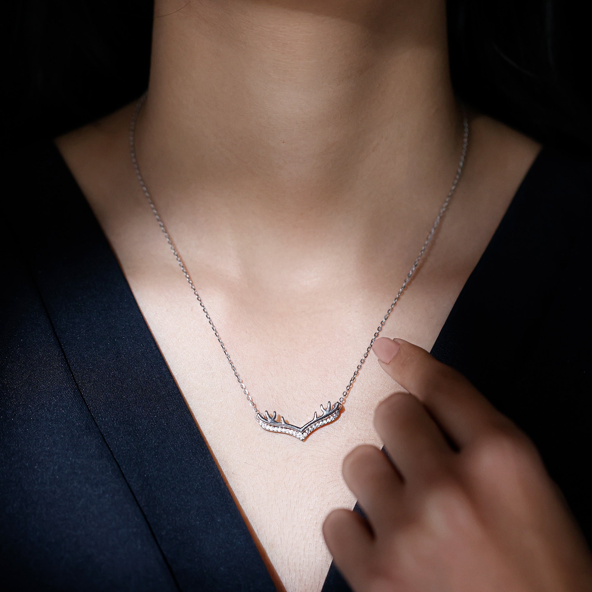 Celebrate the magic of the season with this dazzling Deer Antler Necklace, crafted in gleaming 925 Sterling Silver. Perfectly capturing the spirit of winter, the delicate antler pendant is adorned with sparkling Cubic Zirconia stones that shimmer with every movement, adding a subtle yet captivating sparkle to your look. Its graceful design blends timeless charm with modern elegance, making it a versatile piece that complements everything from chic evening outfits to casual dresses. The secure chain ensures comfort, so you can wear it throughout the season and beyond. Packaged in a beautiful jewelry box, this Reindeer Necklace is a ready-to-gift treasure, ideal for Christmas, holiday celebrations or as a thoughtful surprise for someone special. Whether paired with casual everyday looks or used to add sparkle to a festive ensemble, this Deer Horn Necklace is a charming reminder of winter’s beauty and joy. With its blend of elegance, shimmer and seasonal cheer, it is a piece destined to become a cherished favorite in any jewelry collection.