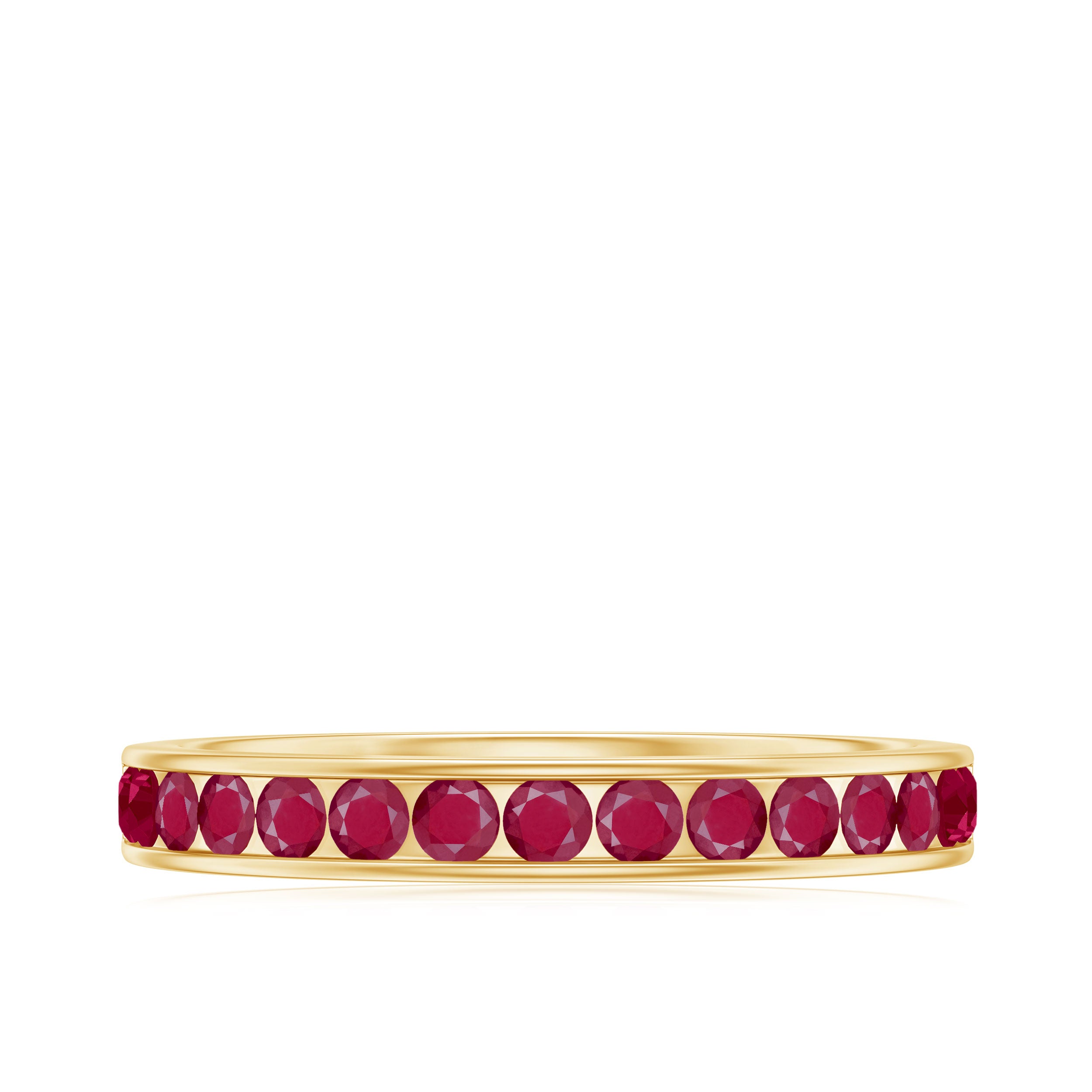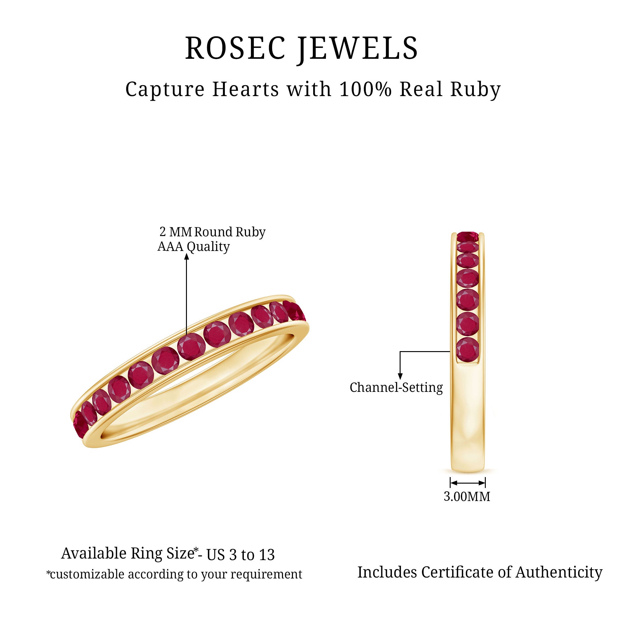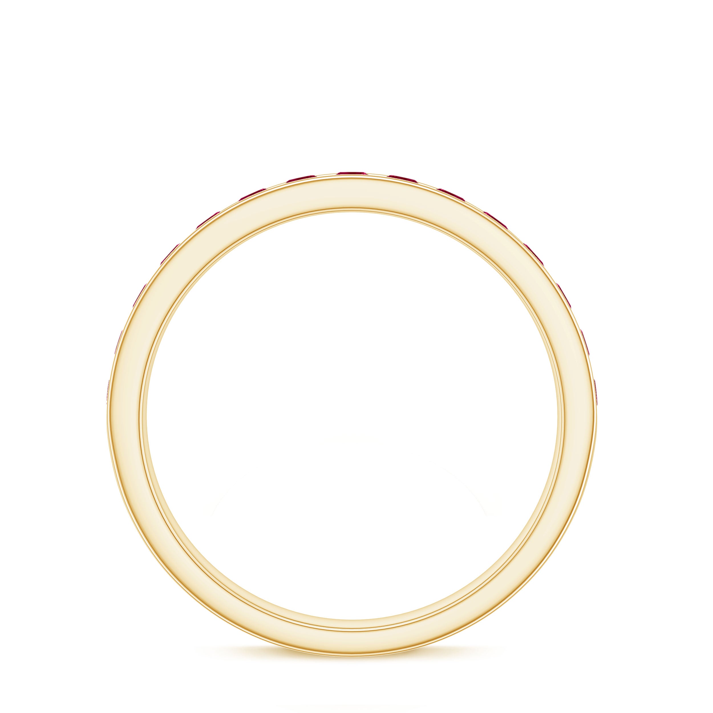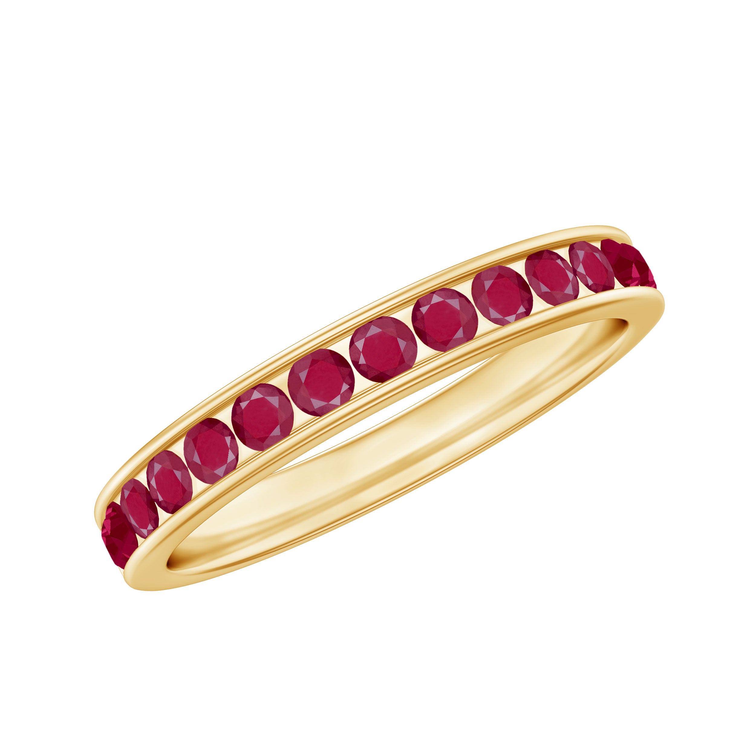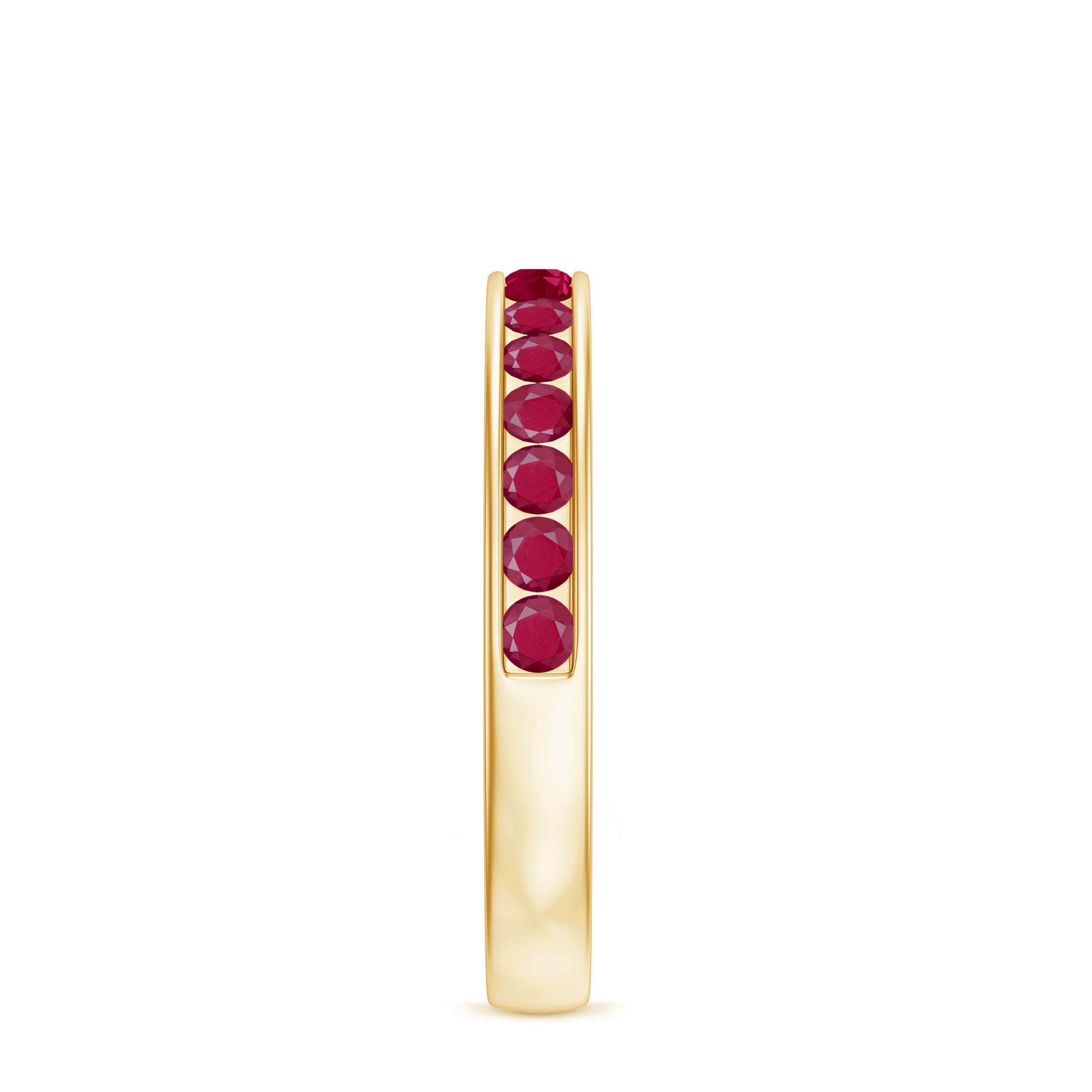 Make her feel Special by gift her this Elegant Jewelry Piece. This Ring is embellished with 1/2 CT Ruby Set on the Half part of Ring. Channel Setting and Solid Gold Composition Enhance the Look of This Half Eternity Ring.