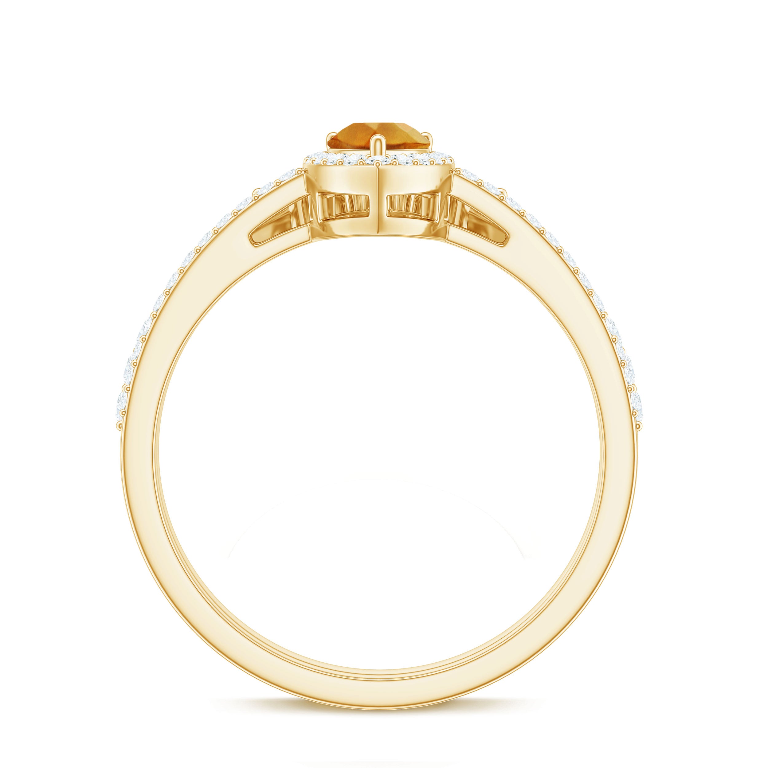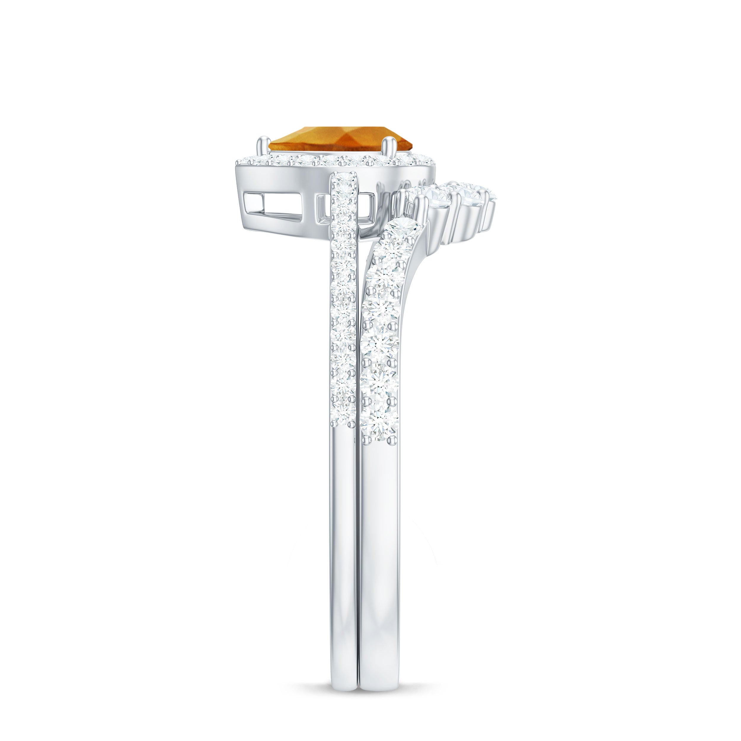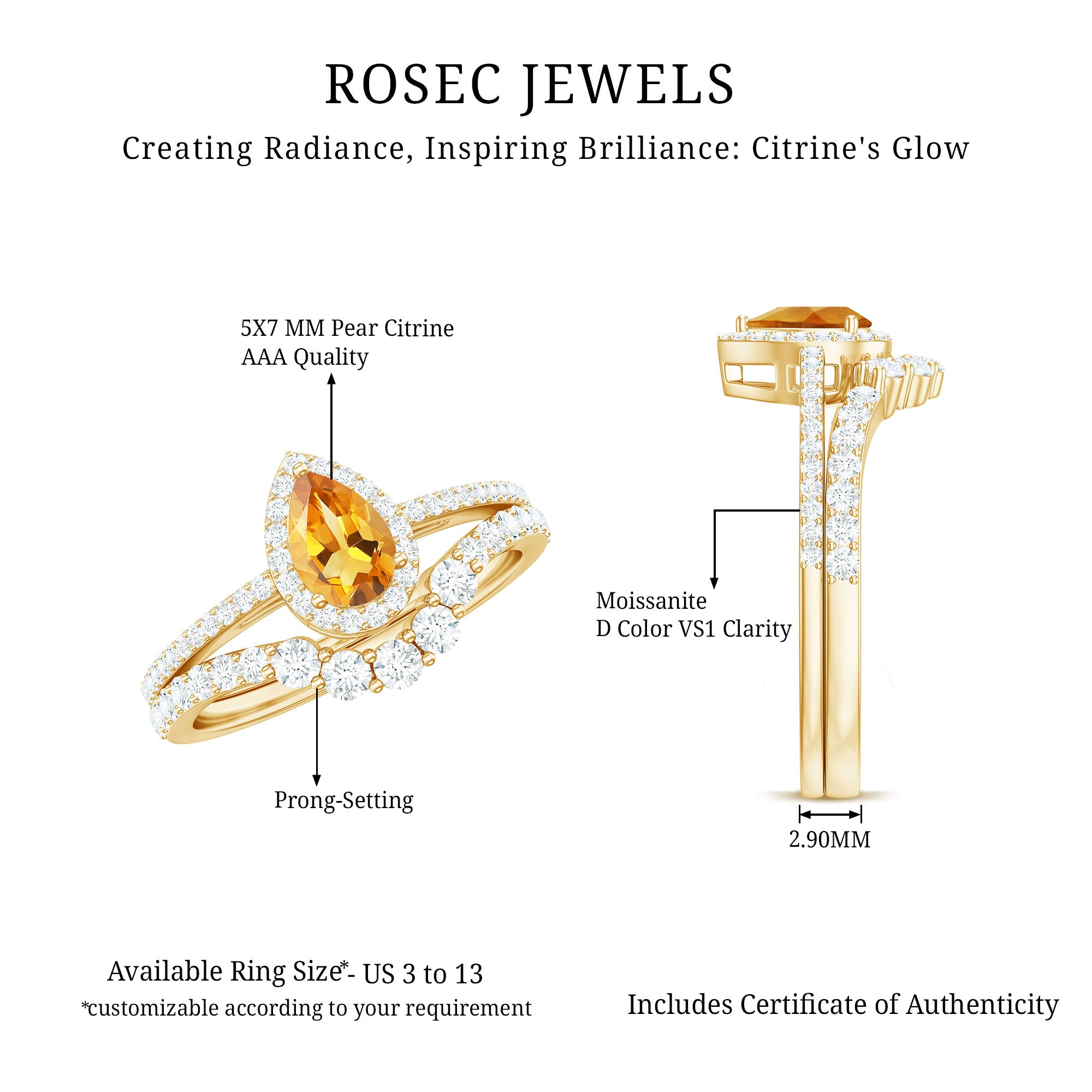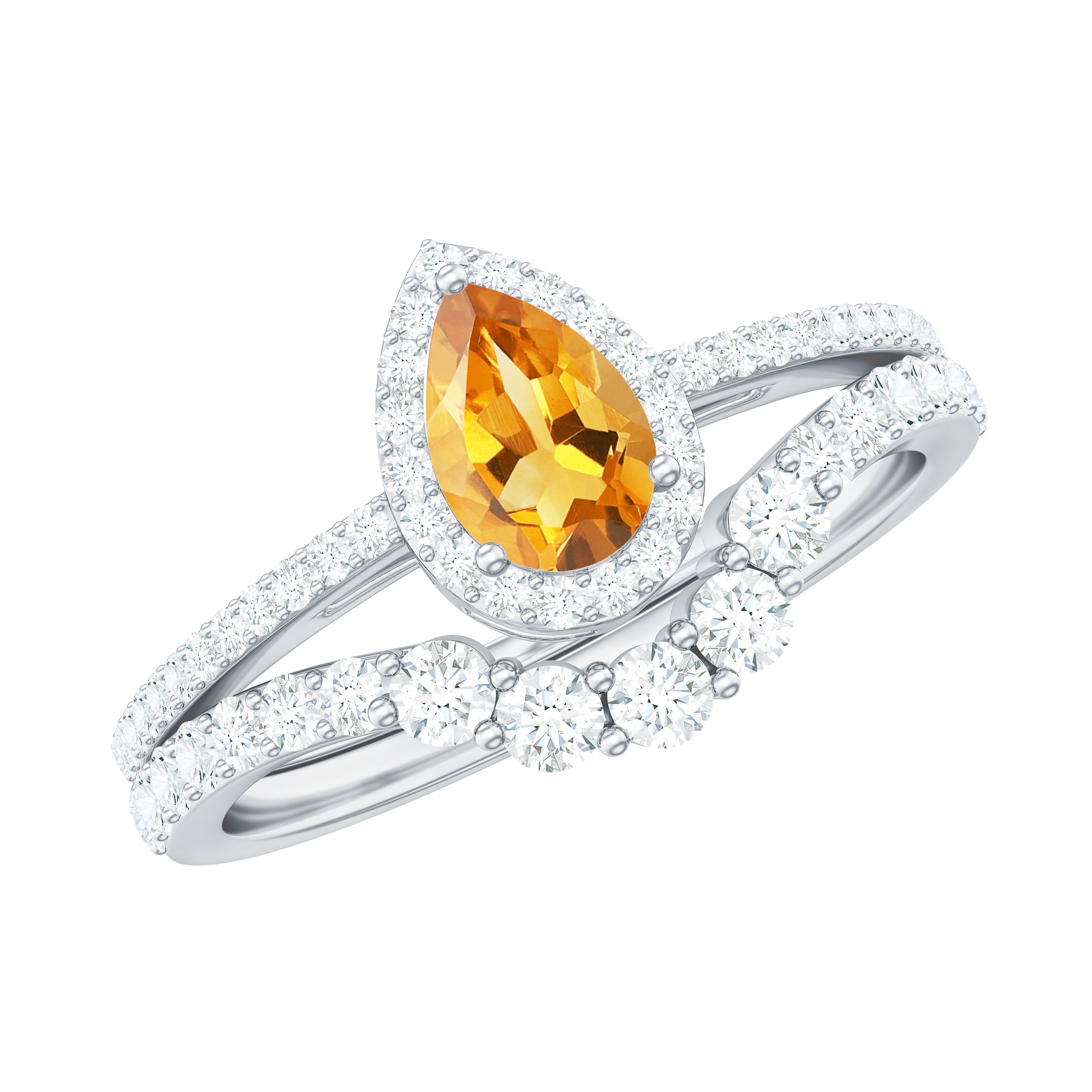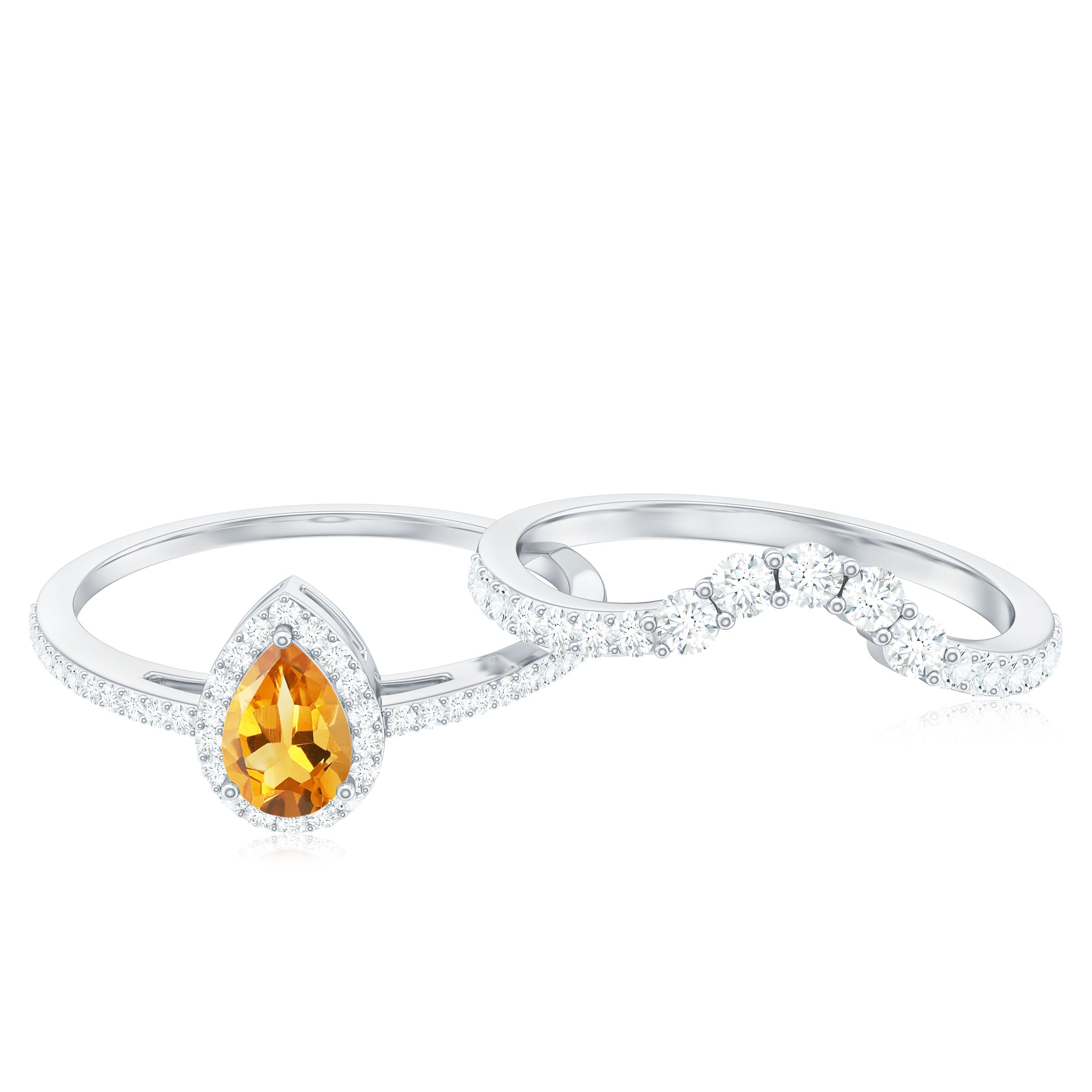 Citrine Designer Teardrop Ring Set with Moissanite Halo