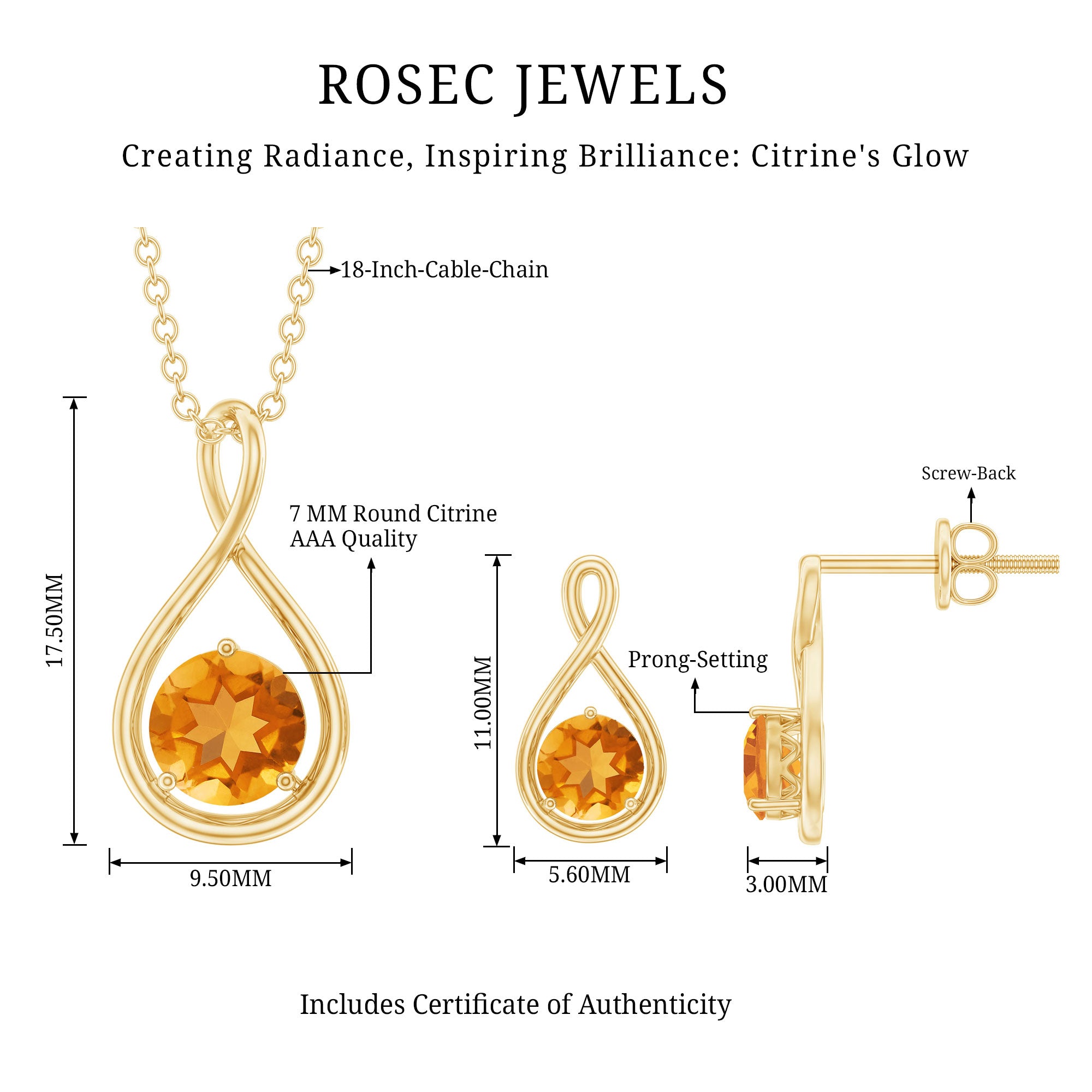 Citrine Solitaire Pendant and Earring Set with Infinity Design