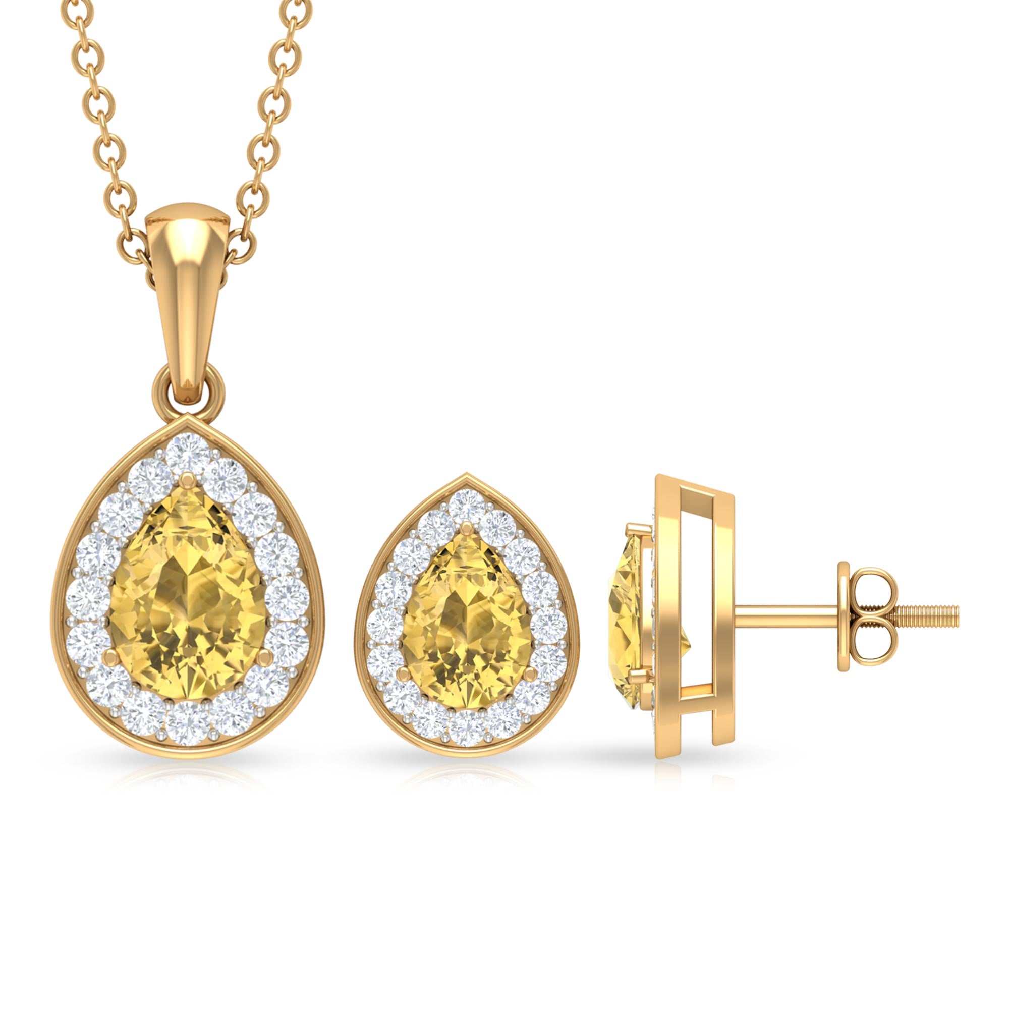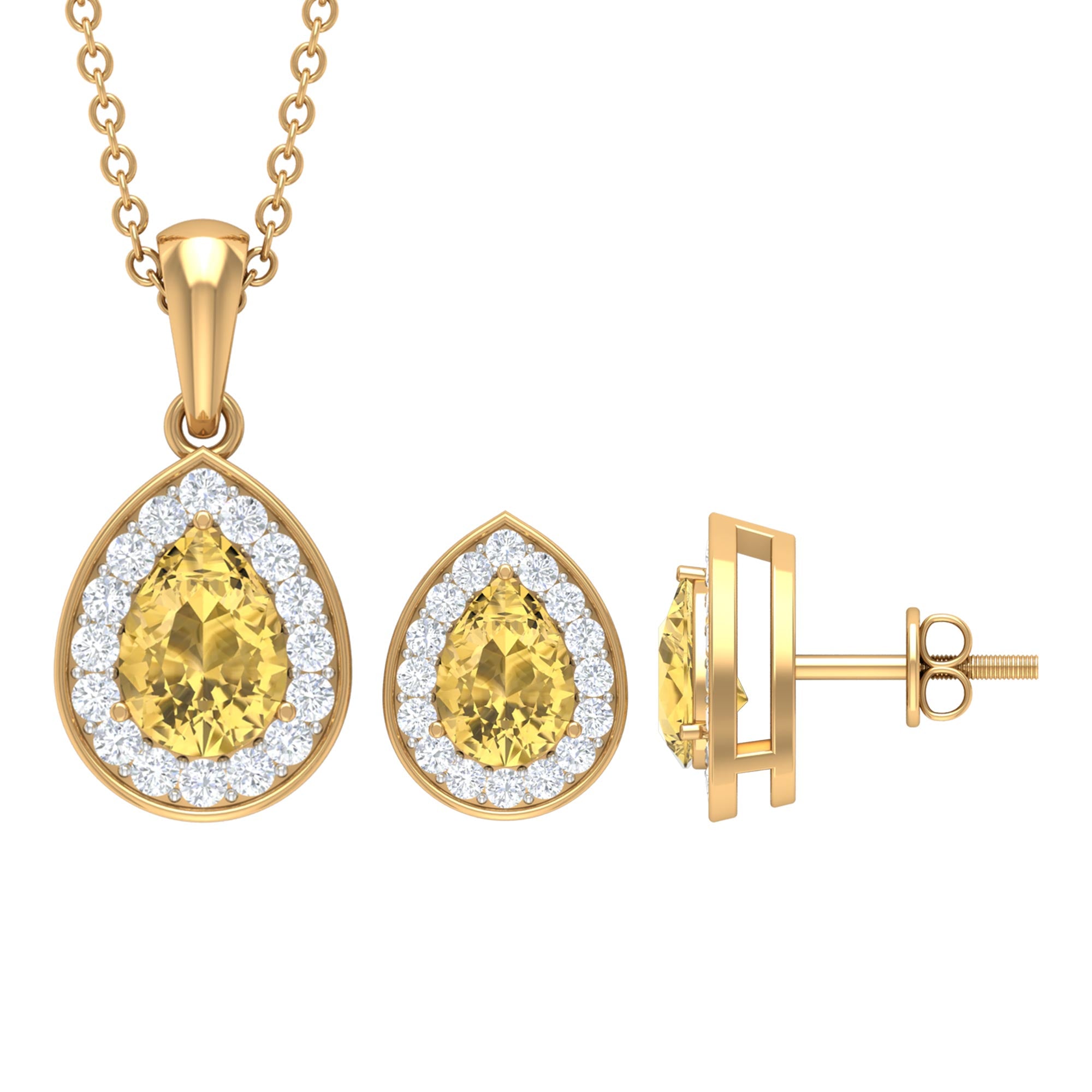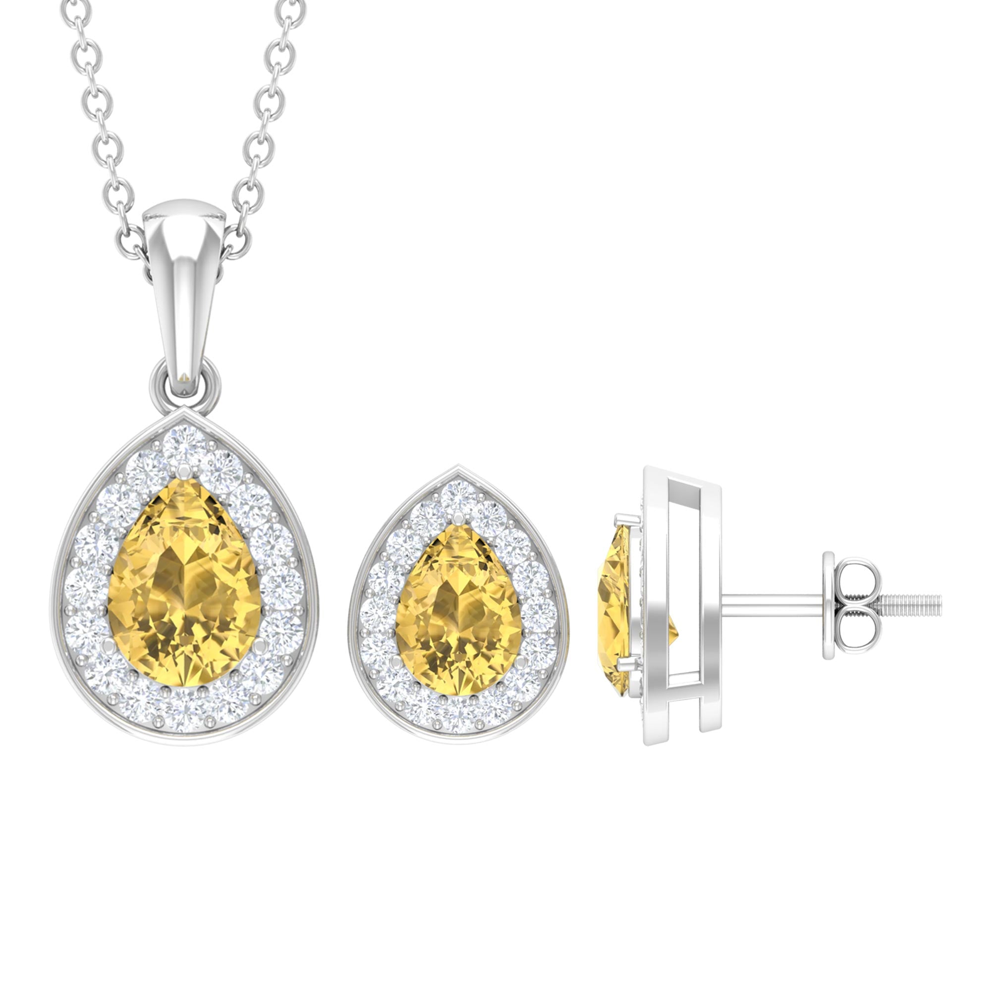 Citrine Teardrop jewelry Set with Moissanite Halo