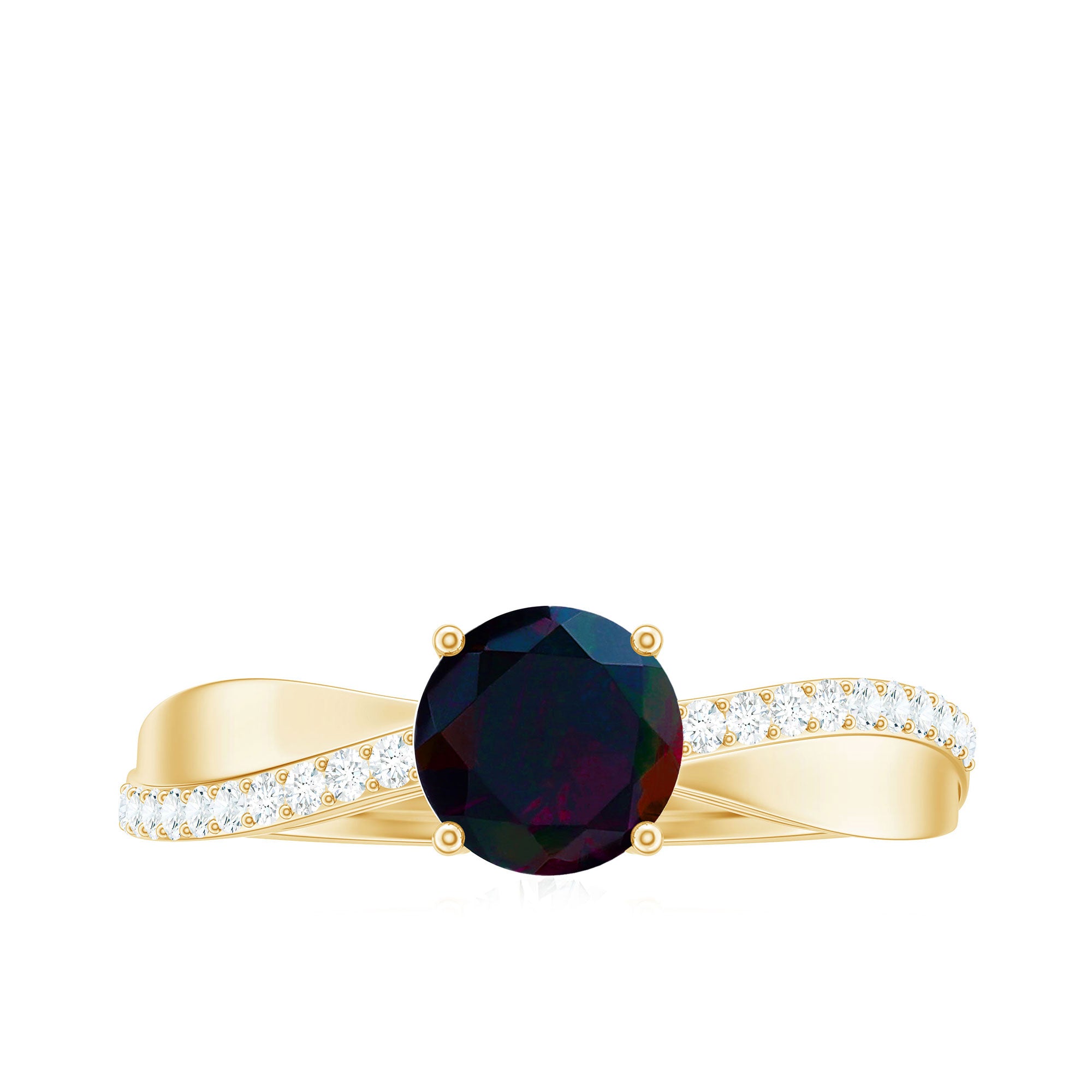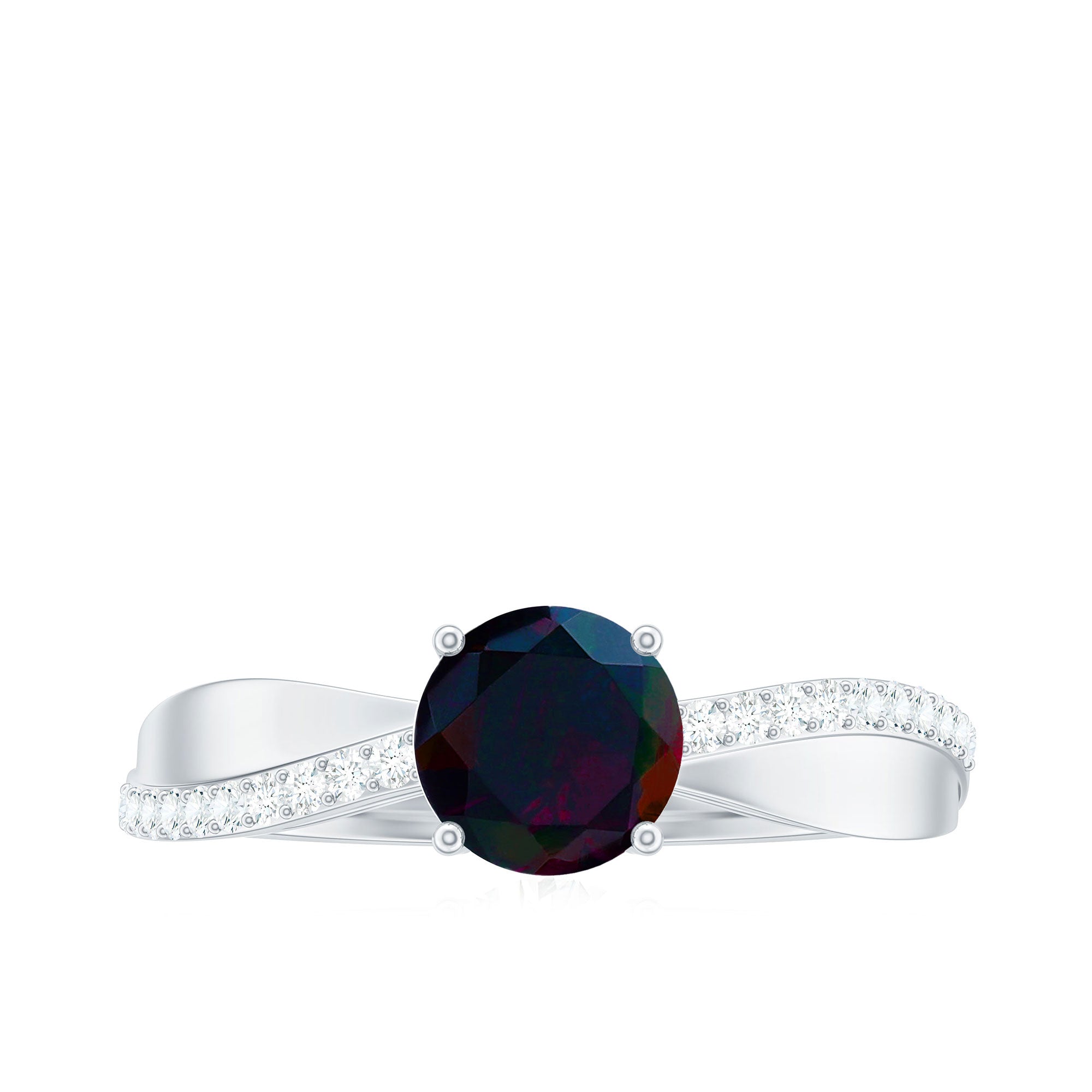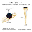 This exquisite black opal engagement ring with diamonds is a symbol of your eternal love and commitment. This solitaire engagement ring has a round-shaped black opal gemstone in the center with sparkling diamond side stones in a prong setting. If you are planning to make your engagement special and unique then this ring is just the perfect option for you. This October birthstone ring is more than just a piece of jewelry; its a promise of a lifetime of love and adventure.