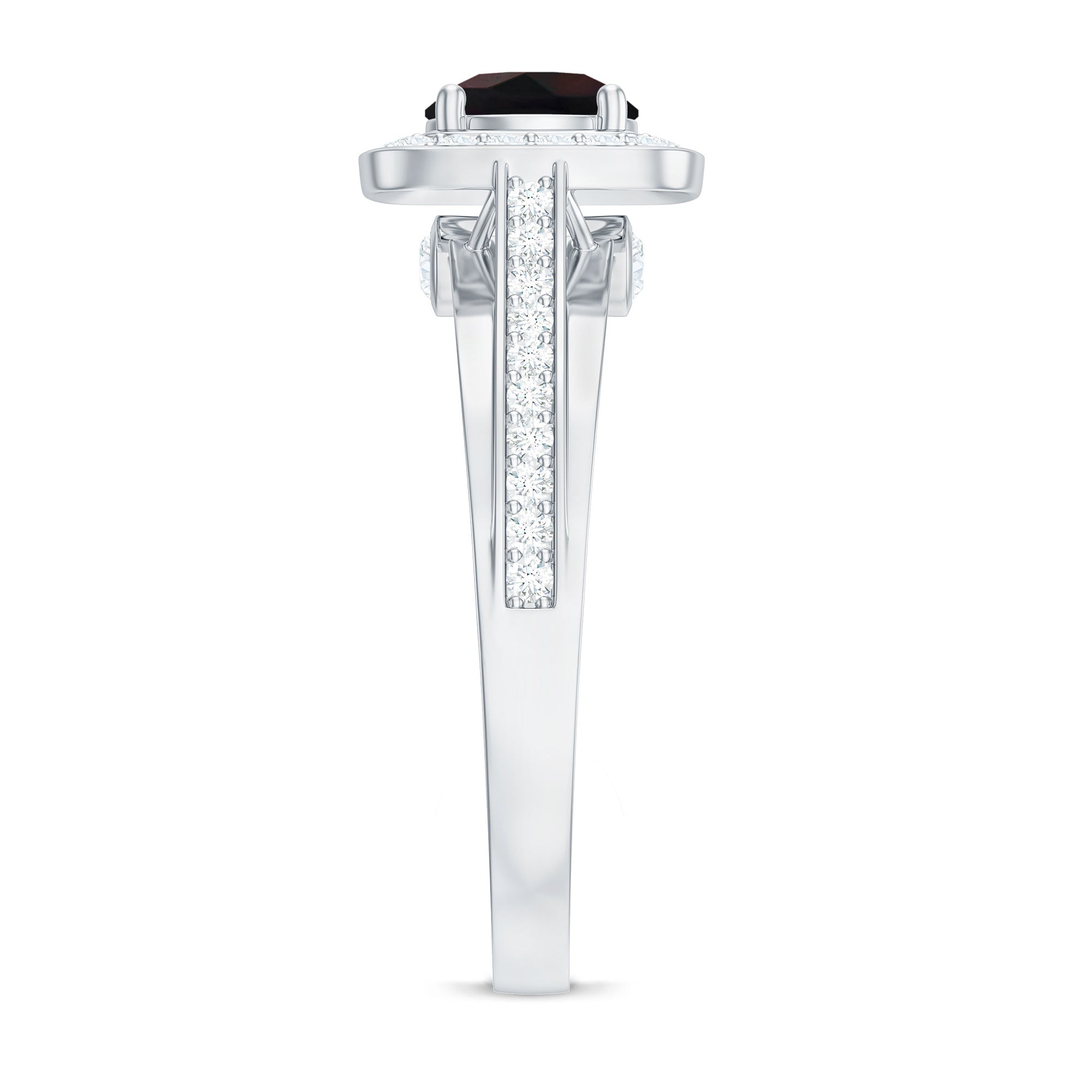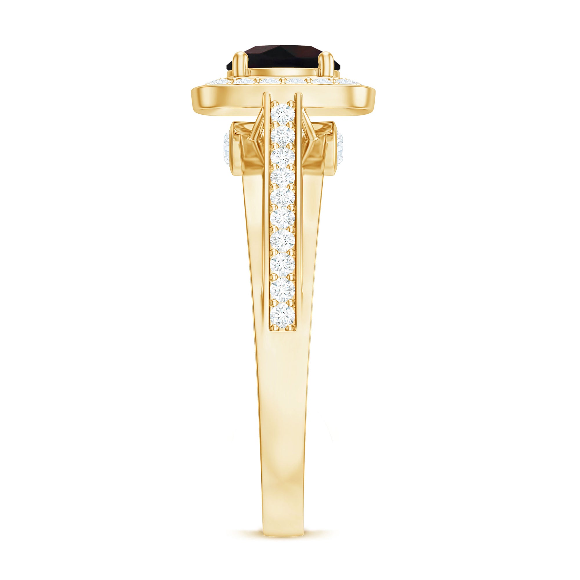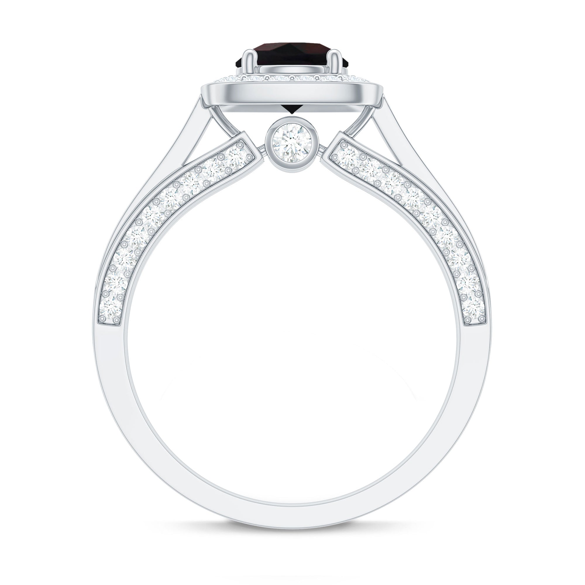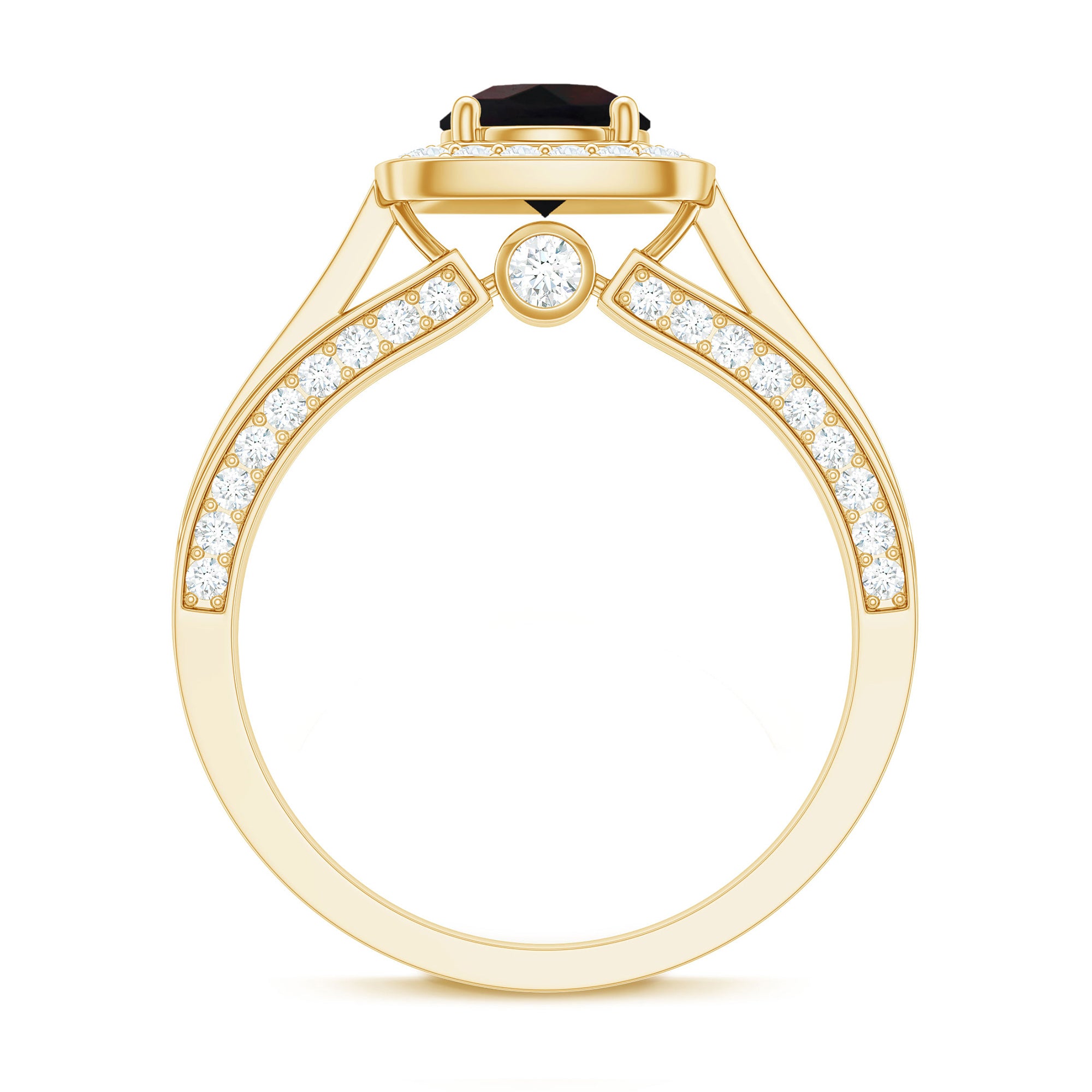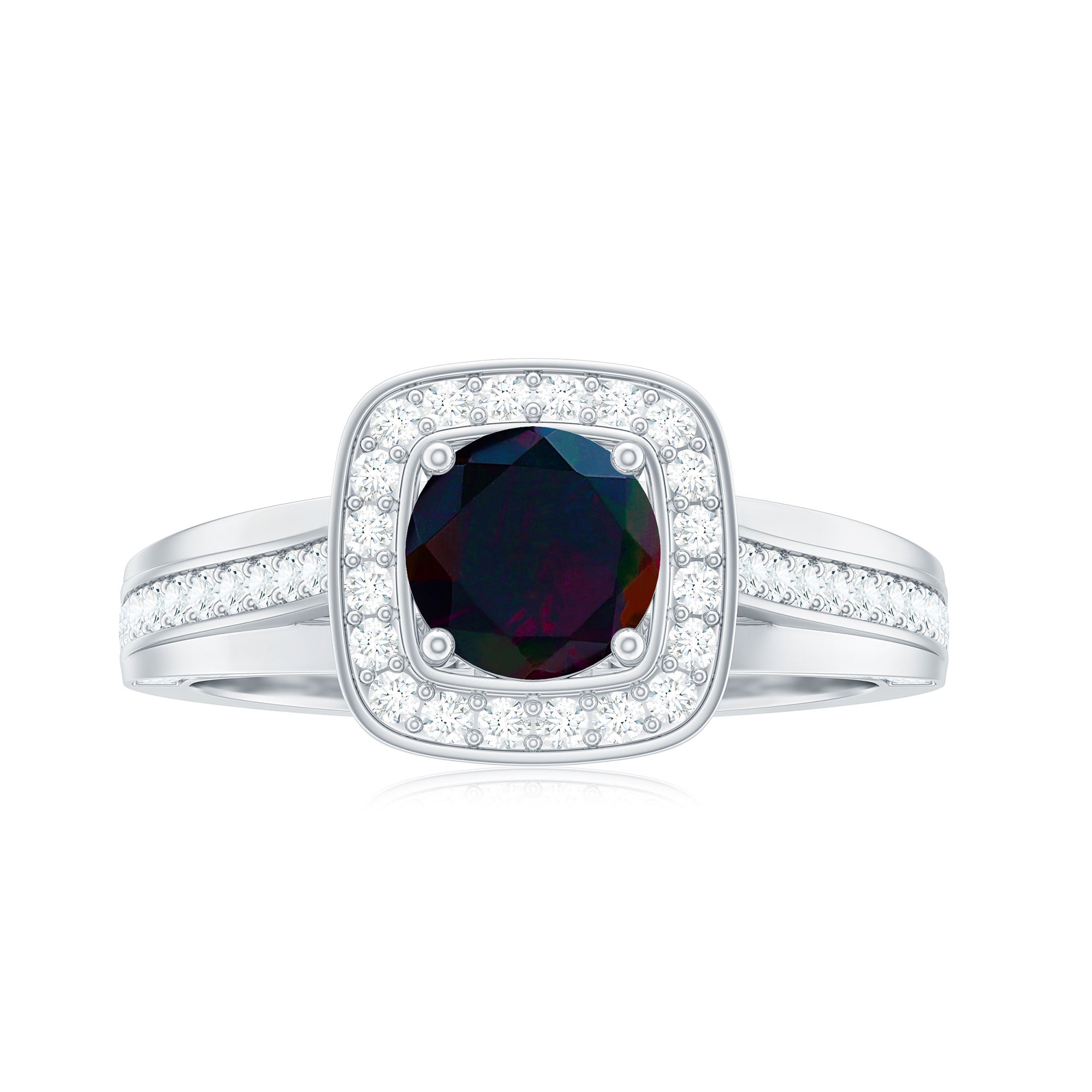 Make her speechless by proposing to her with this Classic Engagement Ring. With such a modern and timeless design composed in Solid Gold, the Black Opal Engagement Ring features a sparkling 6 MM Black Opal at the center stealing all the attention while Round Cut Moissanite adorn it as halo and as accent in prong setting.