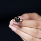 - Showcasing a 9mm Round Black Tahitian Pearl in a Solitaire Bead Setting, accompanied by round Diamond Side Stones.