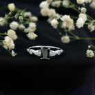 Classic Created Black Diamond Engagement Ring with Moissanite Side Stones