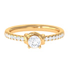 Stay always there for each other, through thick and thin with this classic diamond solitaire promise ring. The sparkling diamond center stone in the prong setting is a symbol of unwavering commitment and enduring love. The center stone is surrounded by small sparkling diamonds, which speaks volumes about the deep bond between two people. Whether youre sealing a new relationship or reaffirming your love for your partner, this timeless ring is the perfect way to express your devotion.