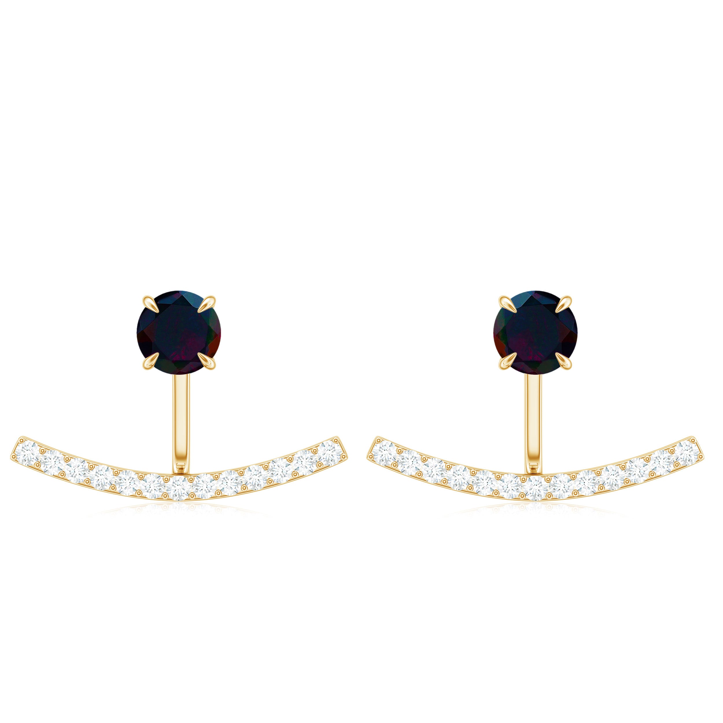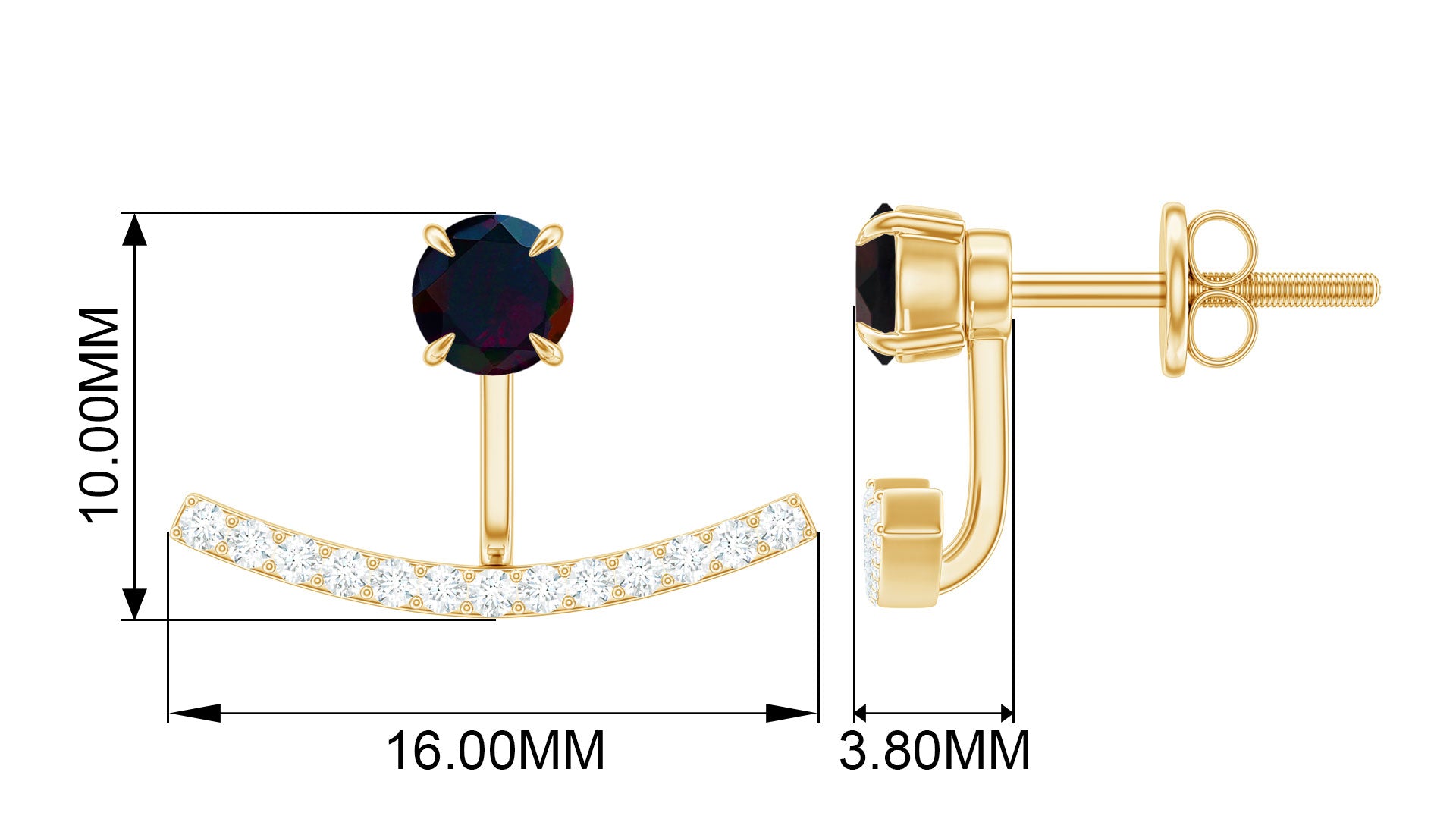 The Classic Jacket Earrings are a stunning combination of timeless elegance and modern flair. Adorned with Round Shape Black Opal in Claw Setting with Diamond gemstones, these earrings feature a jacket design that complements any outfit. Perfect for both casual and formal occasions, these earrings are sure to become a beloved staple in any jewelry collection. Whether you are looking for a special gift for a loved one or a stylish addition to your own wardrobe, these earrings are an excellent choice.