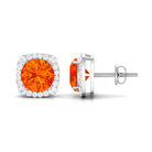 Classic Lab Created Orange Sapphire and Diamond Stud Earrings