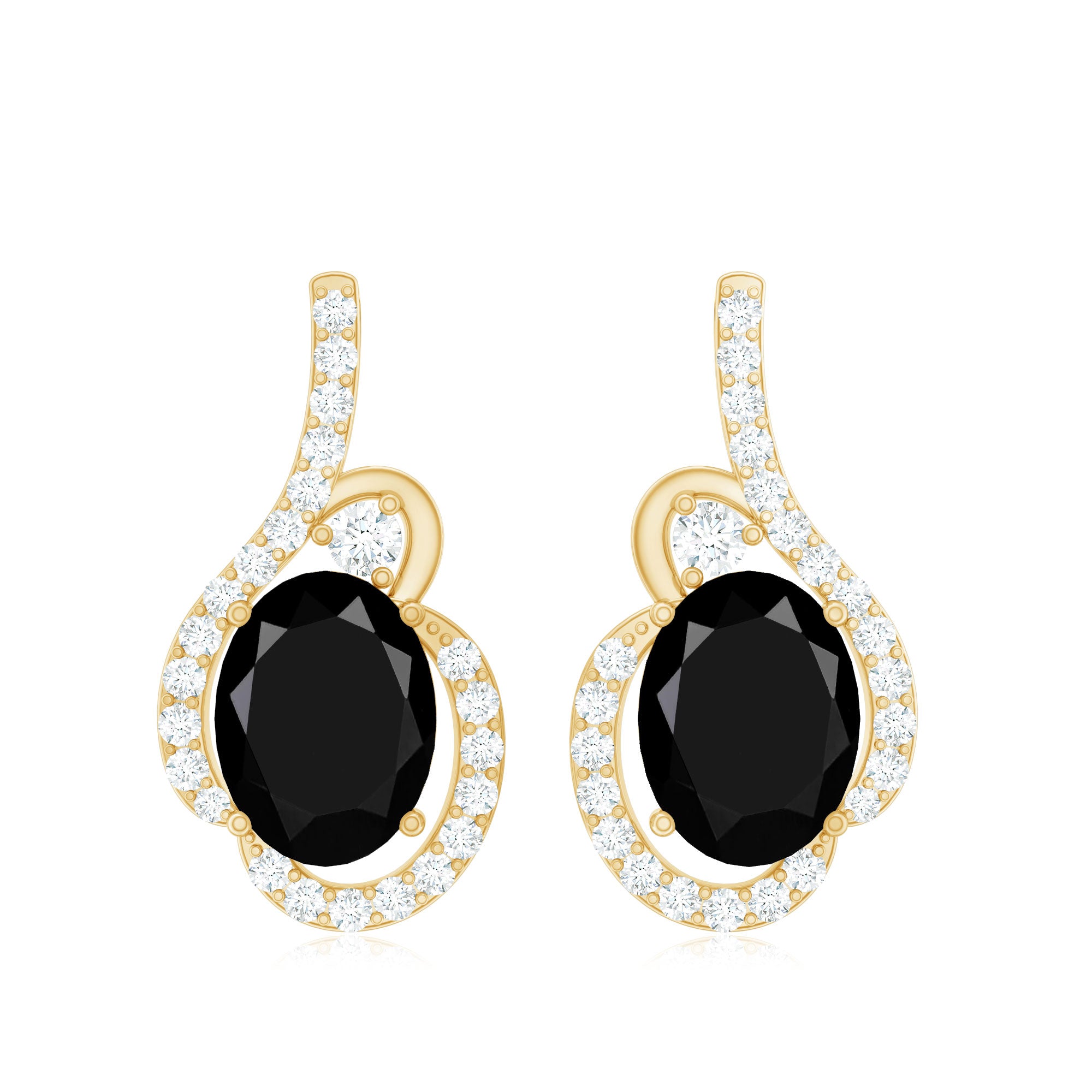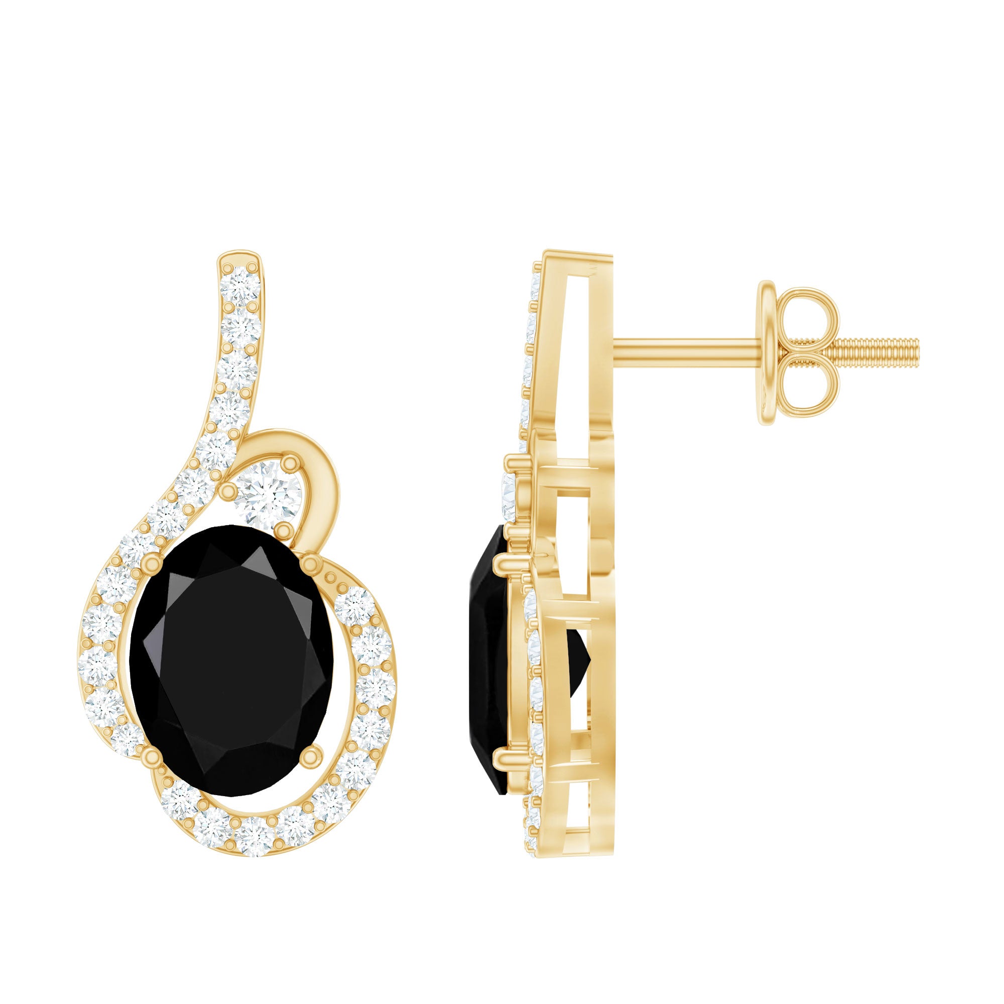 Monochrome elegance meets modern brilliance in our Classic lab grown Black Diamond Earrings. Meticulously crafted, each earring showcases a 6x8 mm oval shaped Black Diamond held in a secure prong setting and surrounded by round shaped Diamond gemstones, exuding timeless sophistication. Impeccably designed for versatility, these Black and White Diamond Earrings (Unnatural) effortlessly elevate any ensemble. Whether as a gift for bride, an anniversary gift for her, a birthday gift for mom, or a heartfelt gift for women, these Screw back Earrings are the ultimate expression of your love and care, crafted to make every moment memorable. A testament to superior craftsmanship, these Stud Earrings are brought to you by Rosec Jewels committed to excellence.