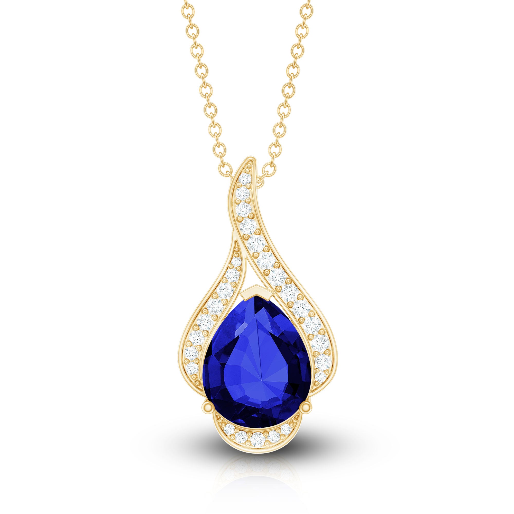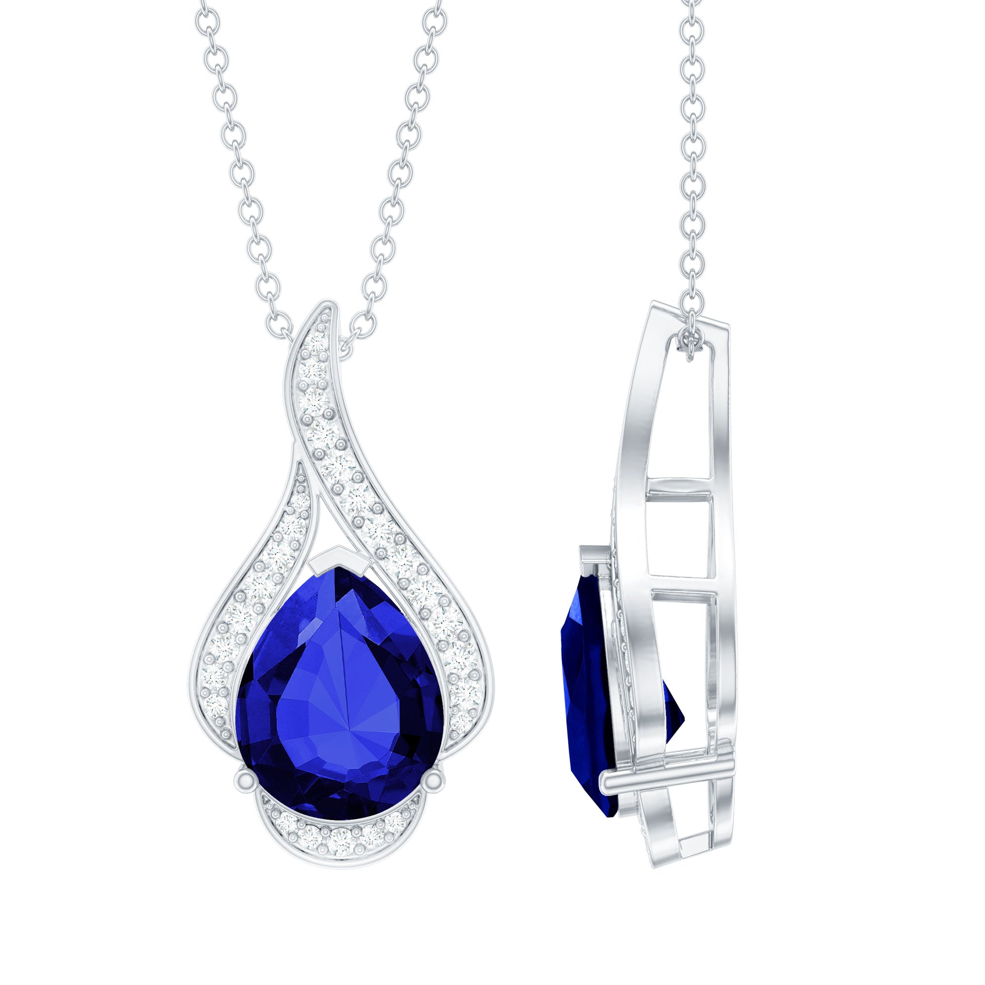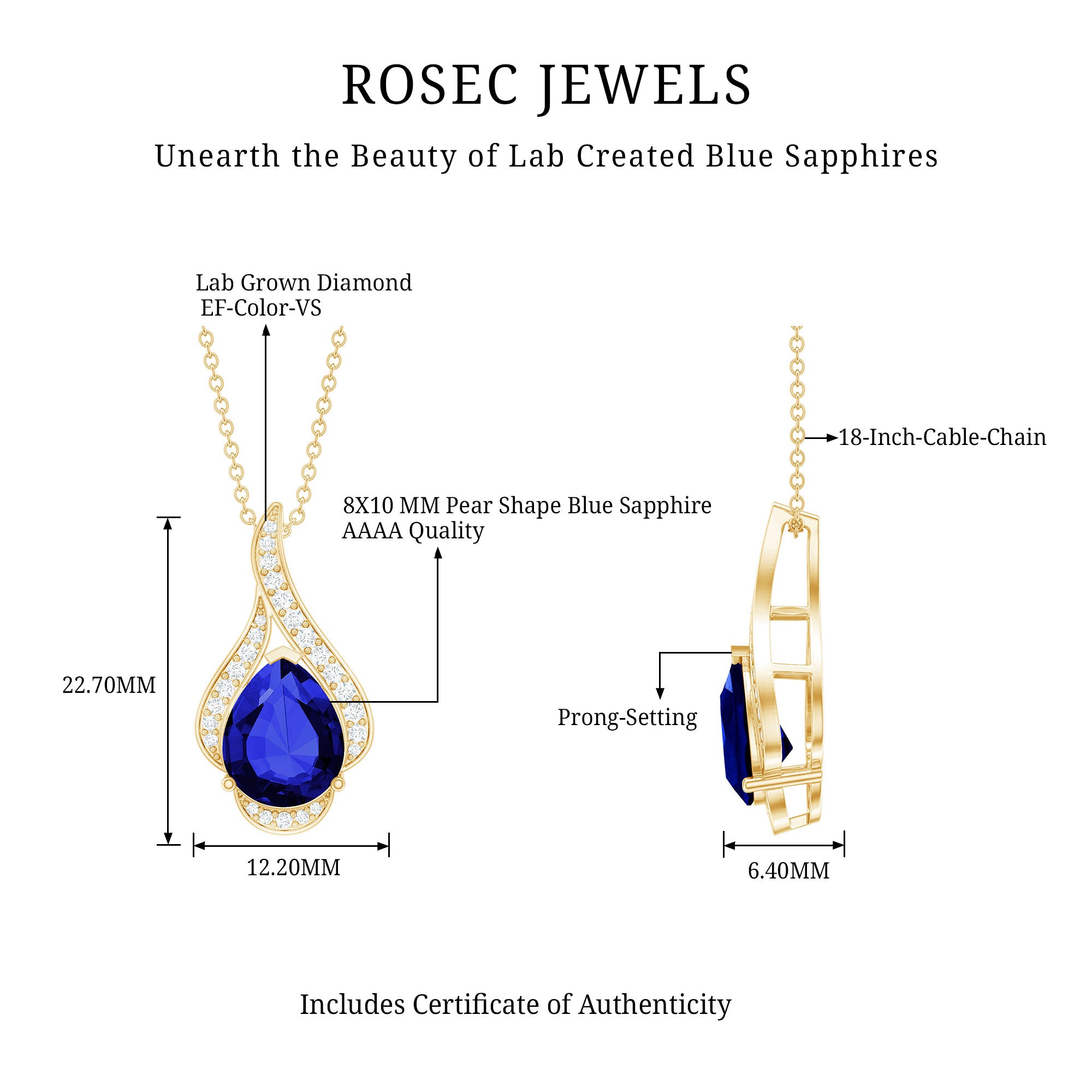 Elevate your style with our timeless Lab Created Blue Sapphire Pendant Necklace, adorned with dazzling diamonds for an extra touch of glamour. The artistic arrangement of 8x10 Pear Shaped Lab Created Sapphire with Round Diamond Accent in this Teardrop Pendant exudes grace and beauty, framing your neckline with elegance. But thats not all, pair it with our matching Sapphire Jewelry, and youll truly feel on top of the world. The combination of Aaaa Quality Sapphire and Ef-Vs Quality Diamonds creates an alluring effect. Try this exquisite ensemble at your next occasion and cherish the unforgettable moments in style.