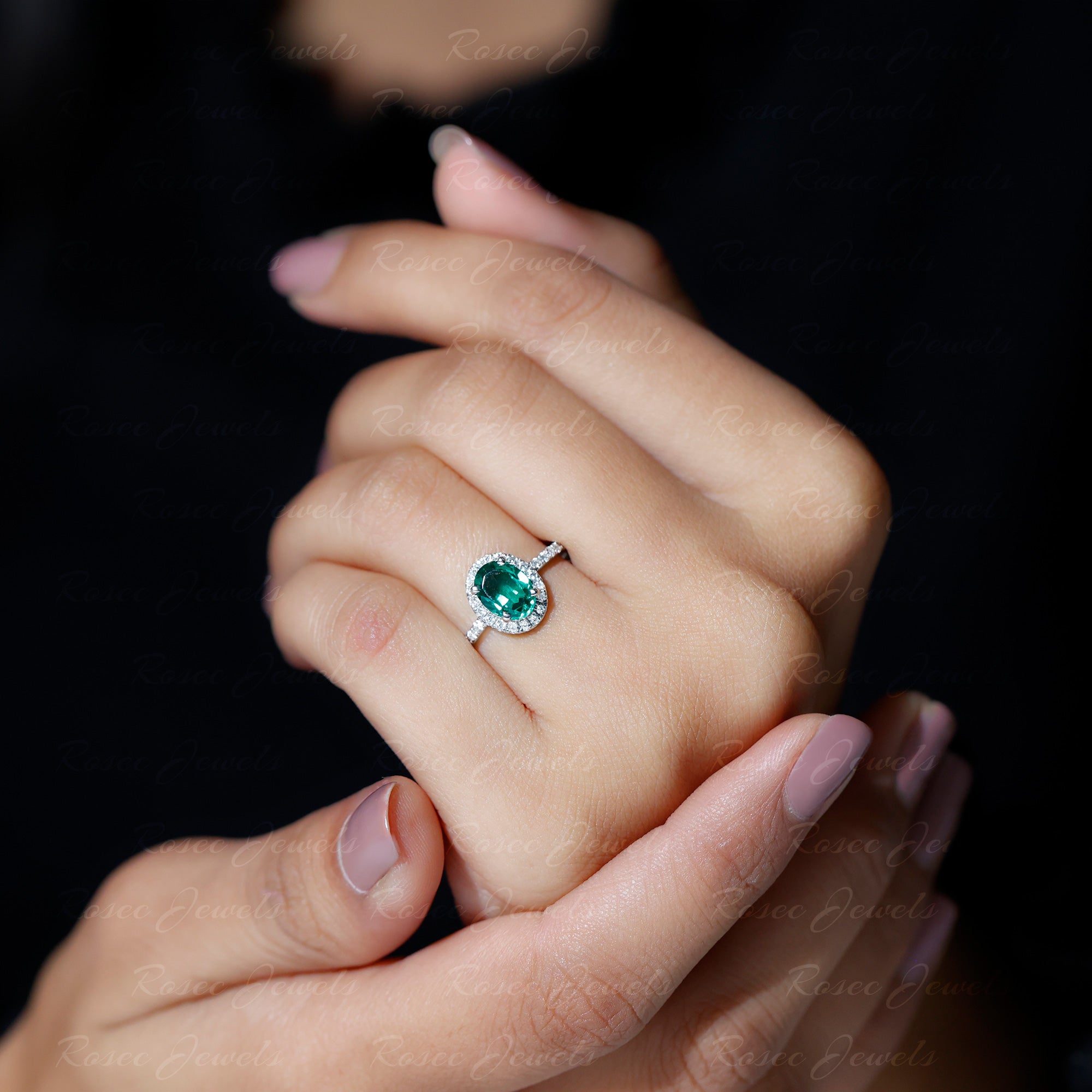 Classic Lab Grown Emerald Oval Engagement Ring with Diamond Halo