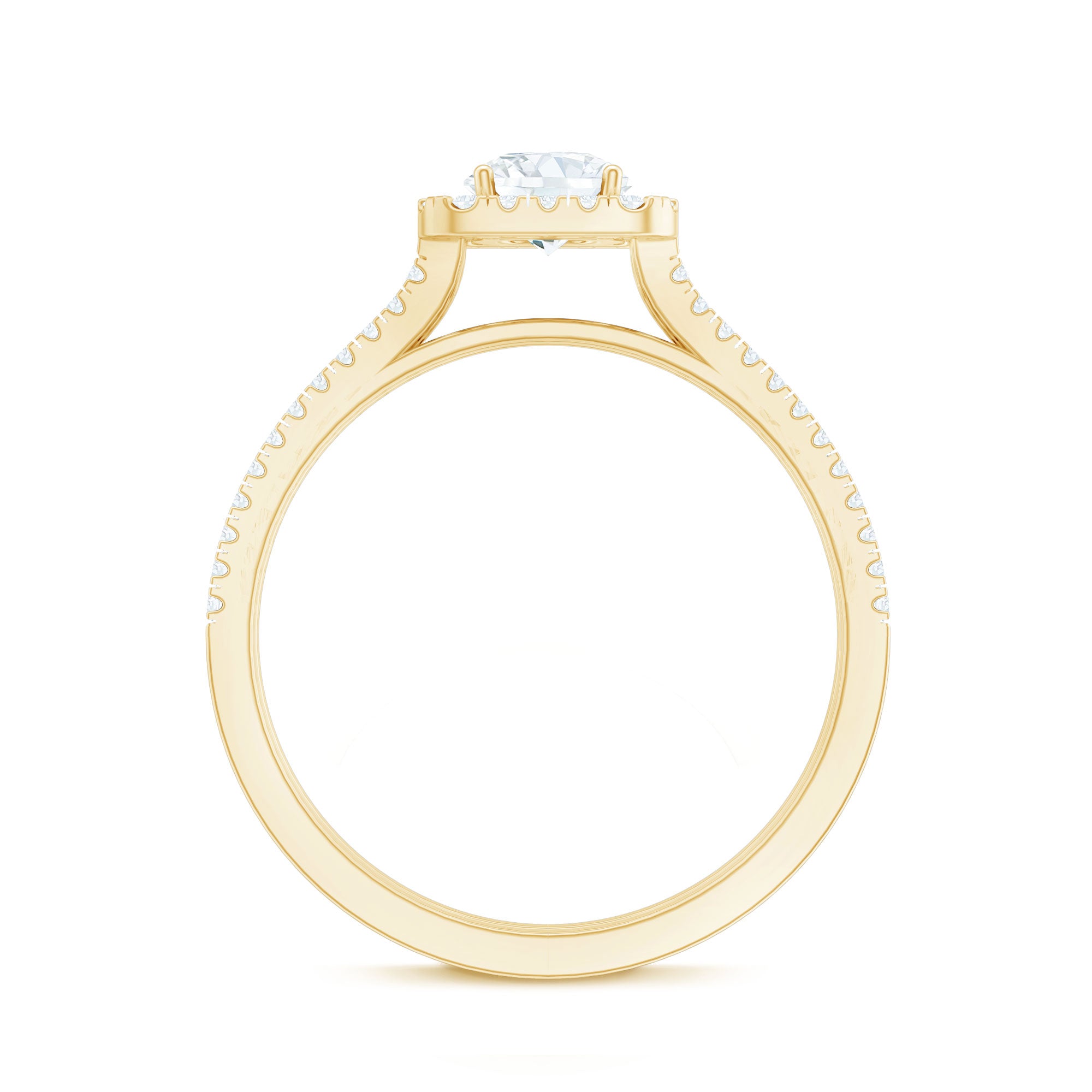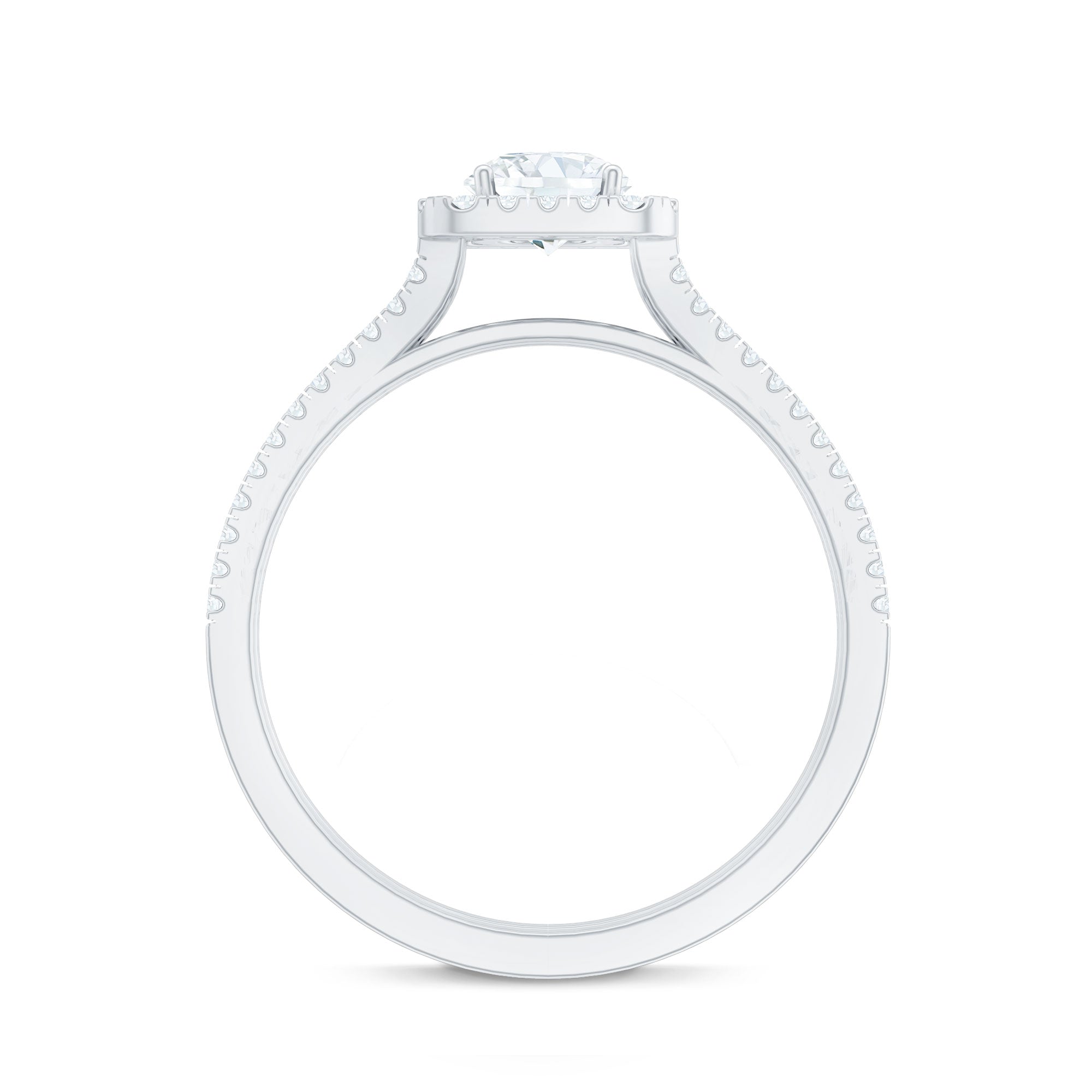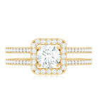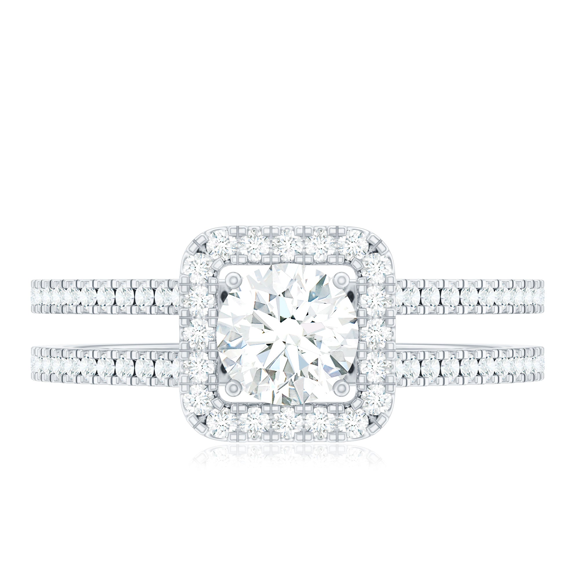 If you are on the hunt for a ring that embodies modern style, meaning, and a touch of sparkle, this Moissanite Engagement Ring is a fantastic choice. At its heart lies a stunning 5 MM Round Cut Moissanite, elegantly set in Prong Setting and encircled by a moissanite halo that radiates brilliance. What makes this ring unique is its Double Band design, embellished with glittering Round Shape Moissanite stones. The combination of the double band and halo results in a look that is both distinctive and timeless, striking a perfect balance between boldness and sophistication. With a total weight of Half Carat, the center stone boasts D Color VS1 Clarity. The gemstones has been certified and put through strict quality checks. This Halo Engagement Ring is ideal for someone who appreciates a blend of classic and contemporary styles. Available in US sizes 3 to 13, this Round Moissanite Ring is designed for a perfect fit and everyday comfort. Whether you are planning a proposal or gifting it as a cherished present, it arrives in a beautiful jewelry box, ready to create a memorable moment.