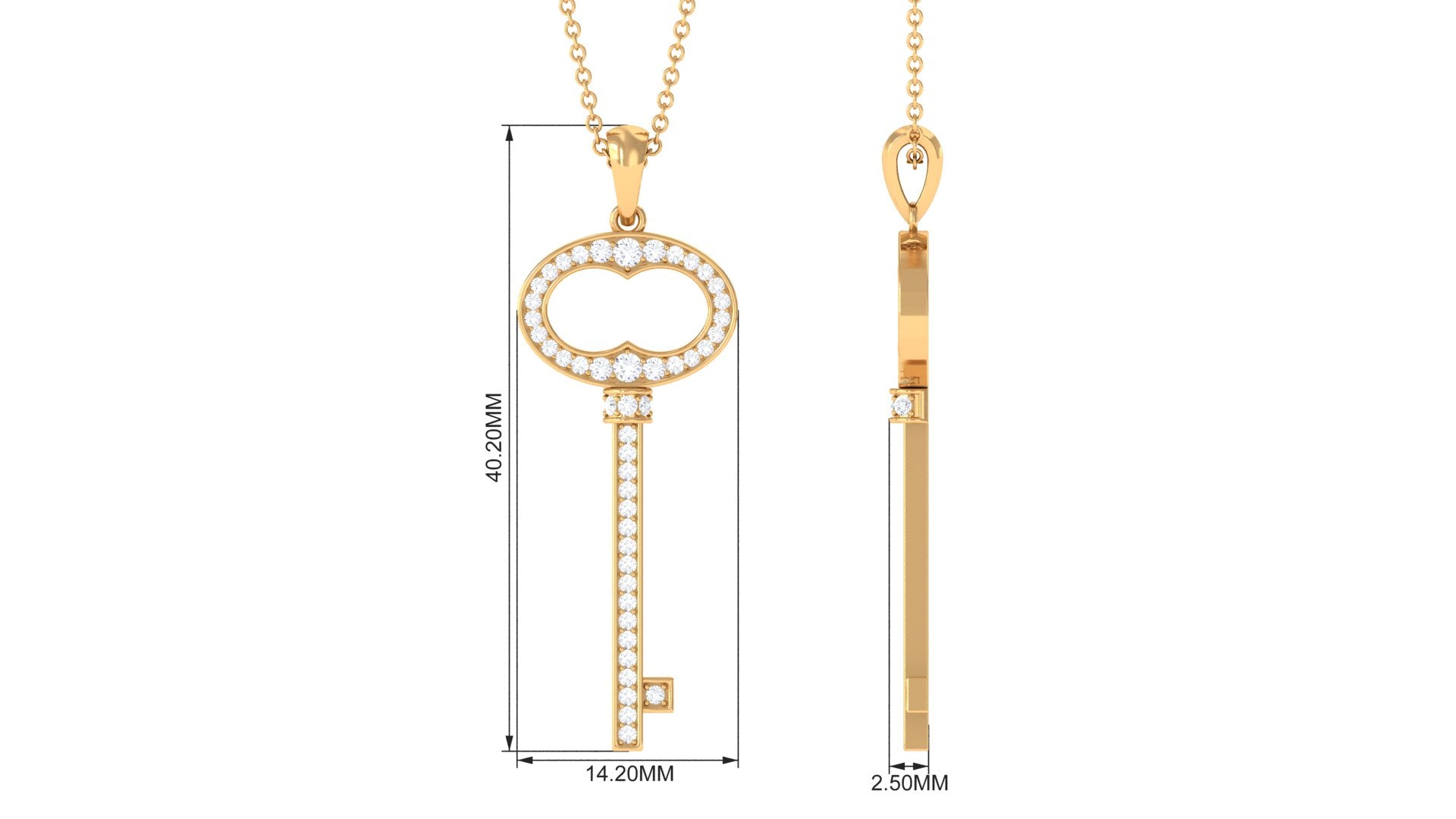 Unlock elegance with this Classic Key Pendant Necklace. Crafted to perfection, the Key Shape Pendant gleams with the brilliance of Moissanite gemstones. A symbol of style and sophistication, this Pendant Necklace is a perfect accessory that adds a touch of charm and mystery to any ensemble, making every moment special.