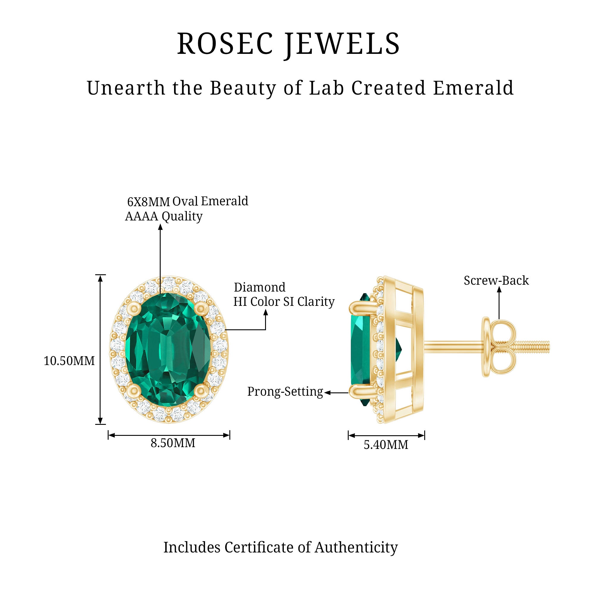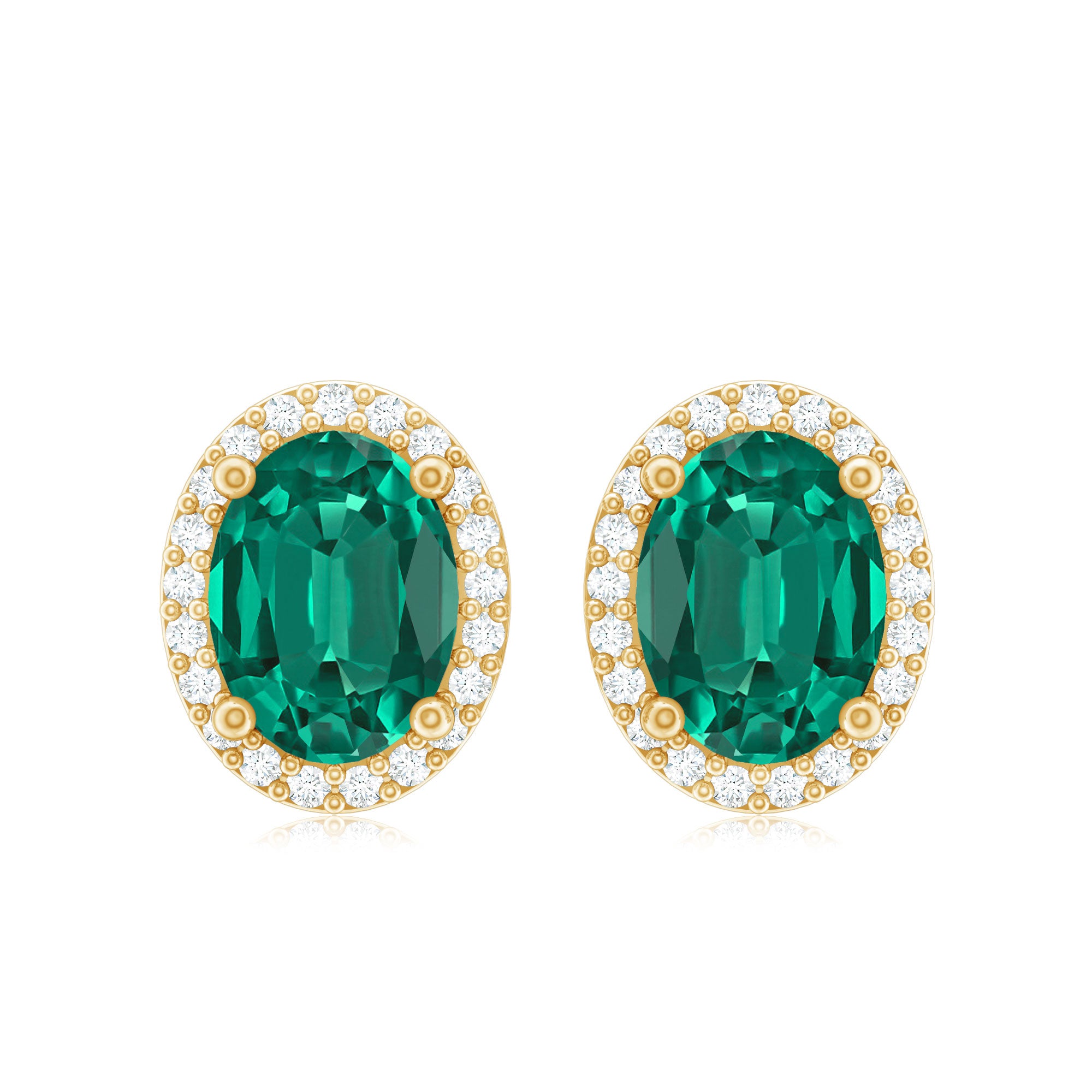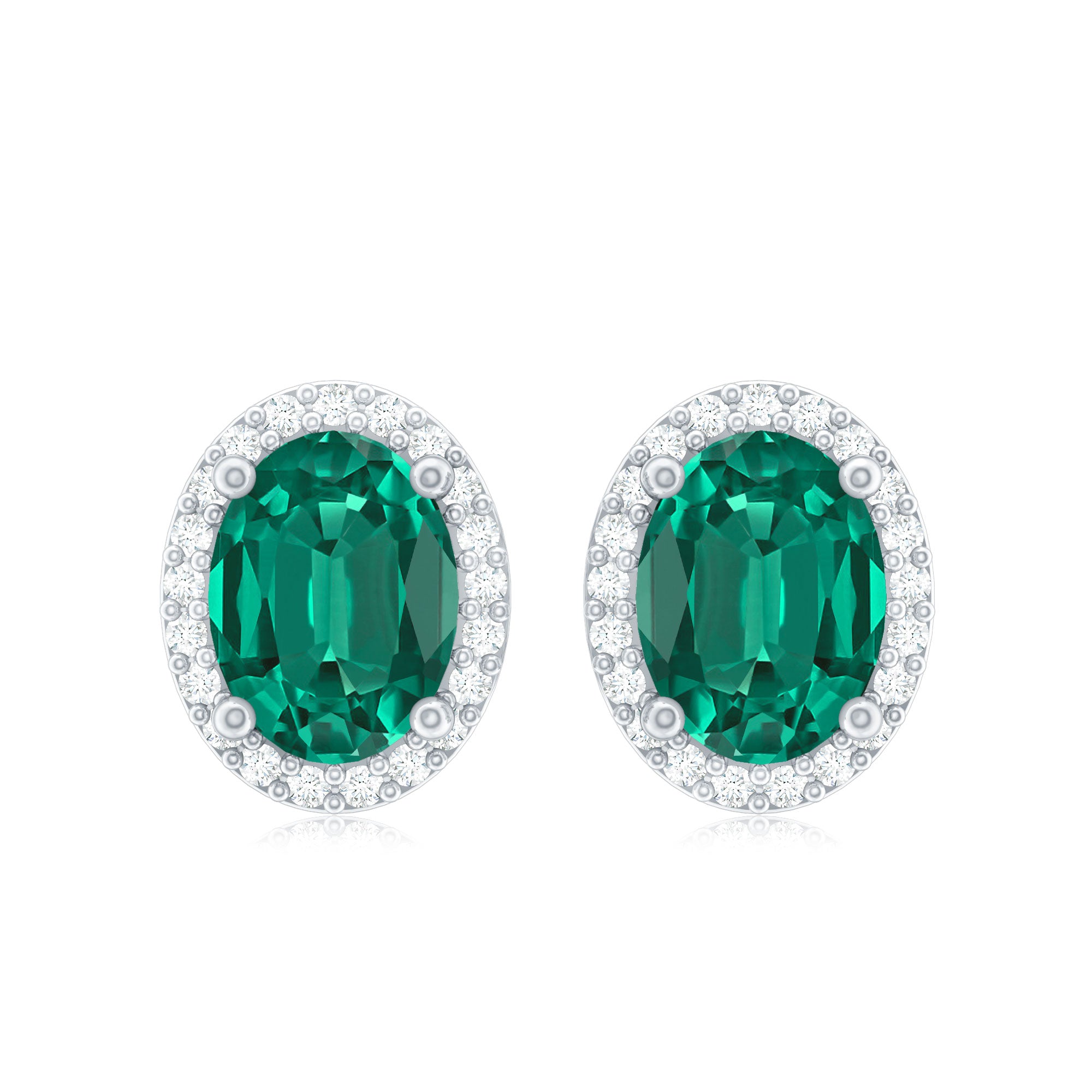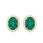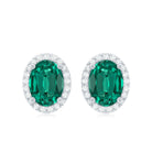 Classic Oval Shaped Lab Grown Emerald and Diamond Halo Stud Earrings
