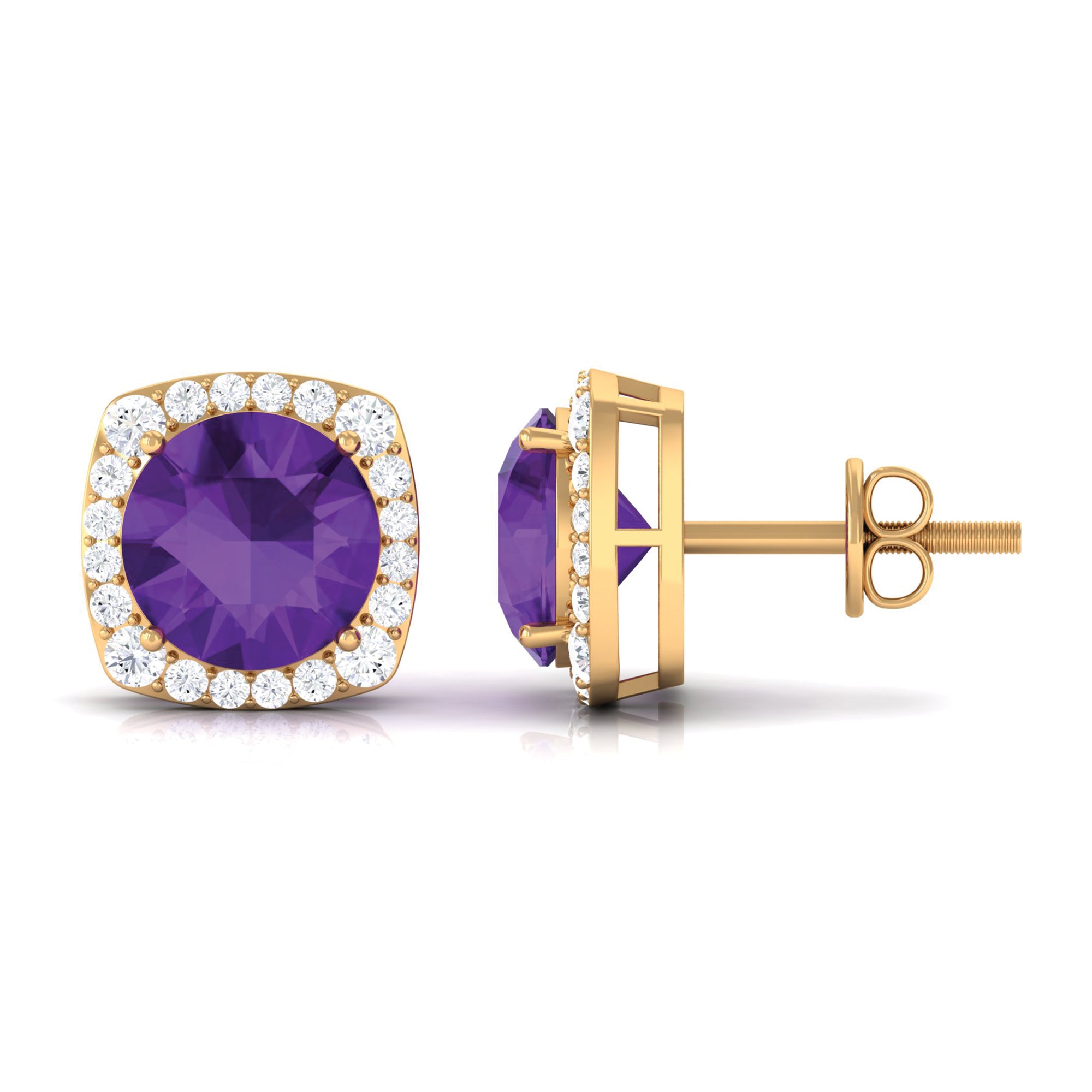 Classic Round Amethyst Halo Stud Earrings with Diamond