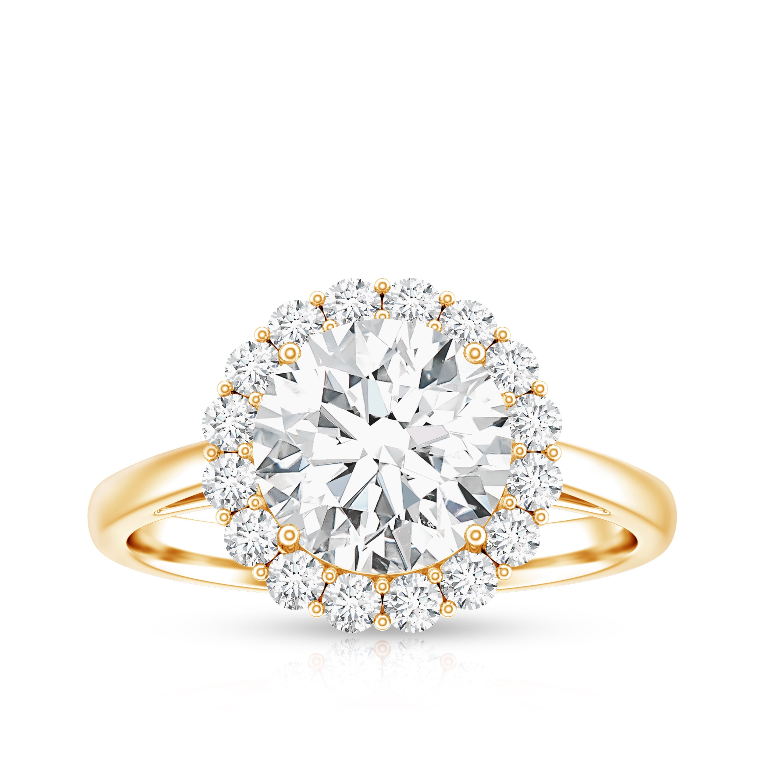 Start your forever with the stunning Moissanite Halo Engagement Ring, a beautiful piece made to celebrate your love in its truest form. At the center of this classic design is an 8 MM round cut moissanite, securely held in prong setting and surrounded by a shining halo of smaller moissanite stones. This halo not only enhances the center stones sparkle and brilliance but also adds a touch of elegance, making this Round Engagement Ring a memorable symbol of commitment. Designed for those who appreciate elegance with a purpose, this Moissanite Engagement Ring merges the beauty of traditional design with the glow of sustainable gemstones. The simple band allows the halo and center stone to shine, while still providing a comfortable fit for daily wear. Whether you are planning a lovely proposal or looking to purchase a beloved piece, this Halo Ring delivers a significant message, elegant, radiant, and responsibly made. Available in US ring sizes 3 to 13, this piece guarantees a perfect fit for every bride-to-be. Packaged in a luxurious jewelry box, it is prepared to make the moment unforgettable. Let this 2 Carat Moissanite Ring be the promise you cherish every day.