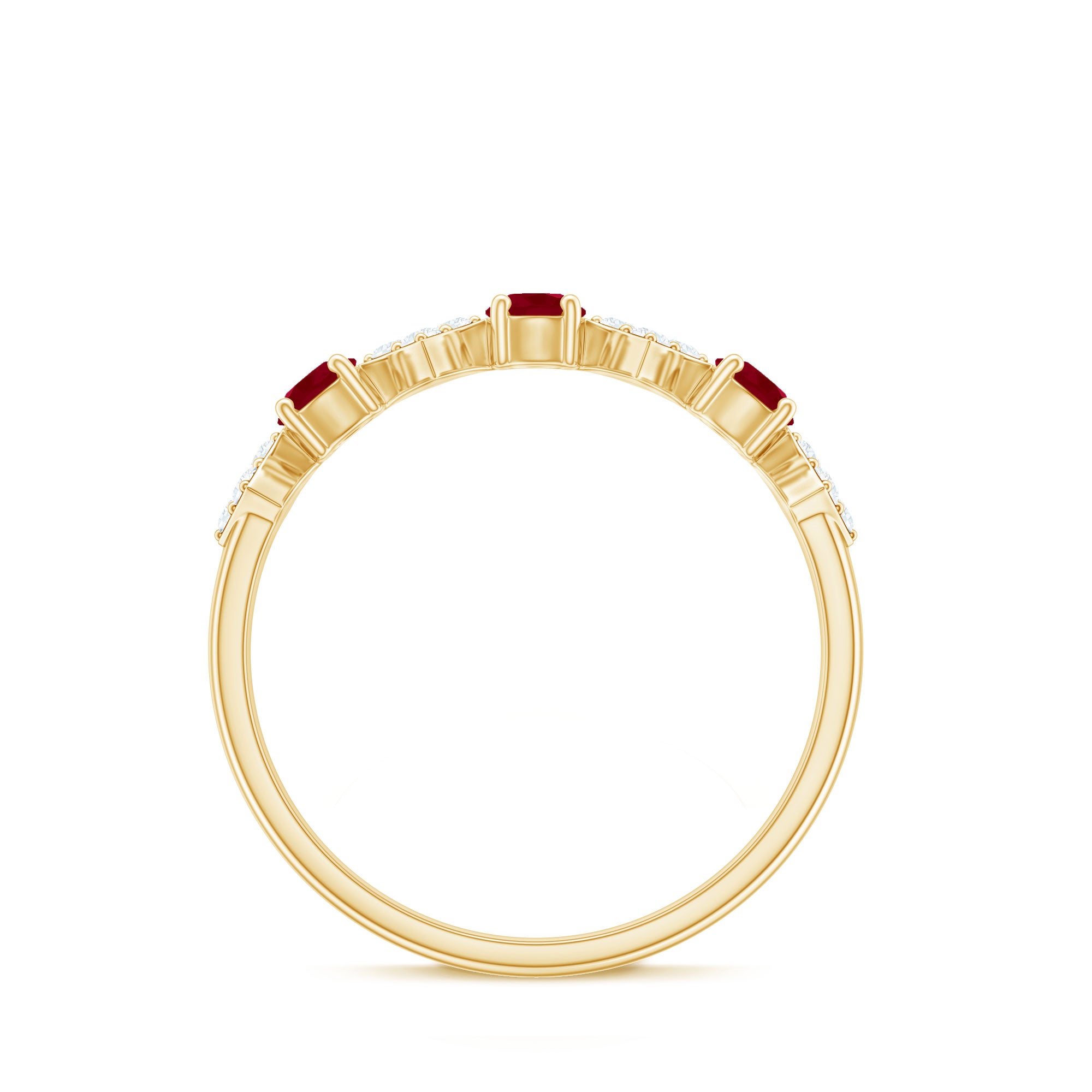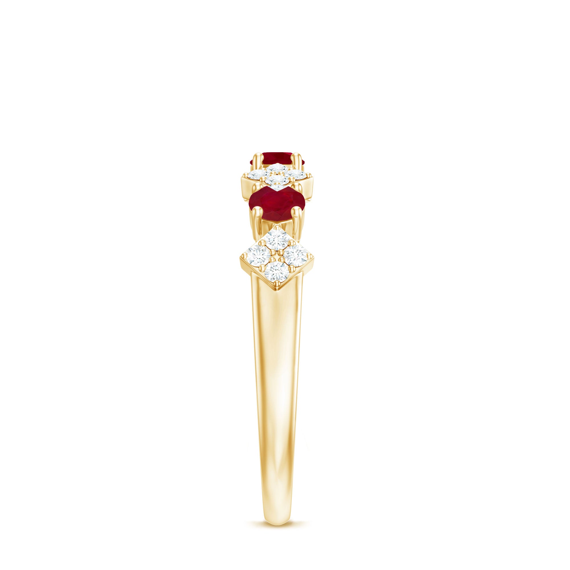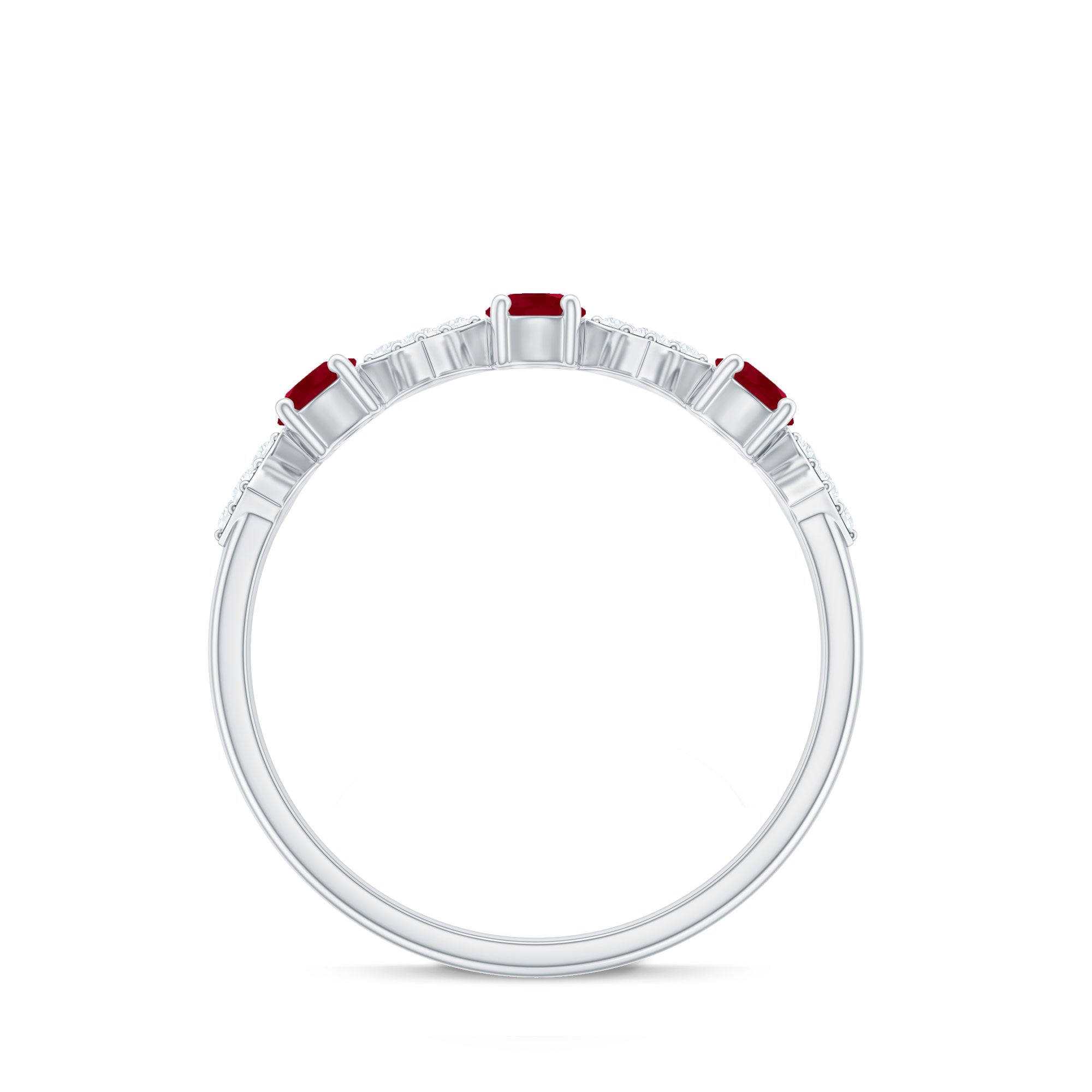 Synonymous with romantic, this Ruby Half Eternity Ring is all you need to speak the virtual language of love. Taking their turns at wooing us over, the stones of Round Shape Ruby and Diamond are set in an alternating pattern half way through the band, both secured by Prong Setting. Flaunted solo or stacked up with your favorite rings, this Certified Semi Eternity Ring wont fail to make a befitting statement.
