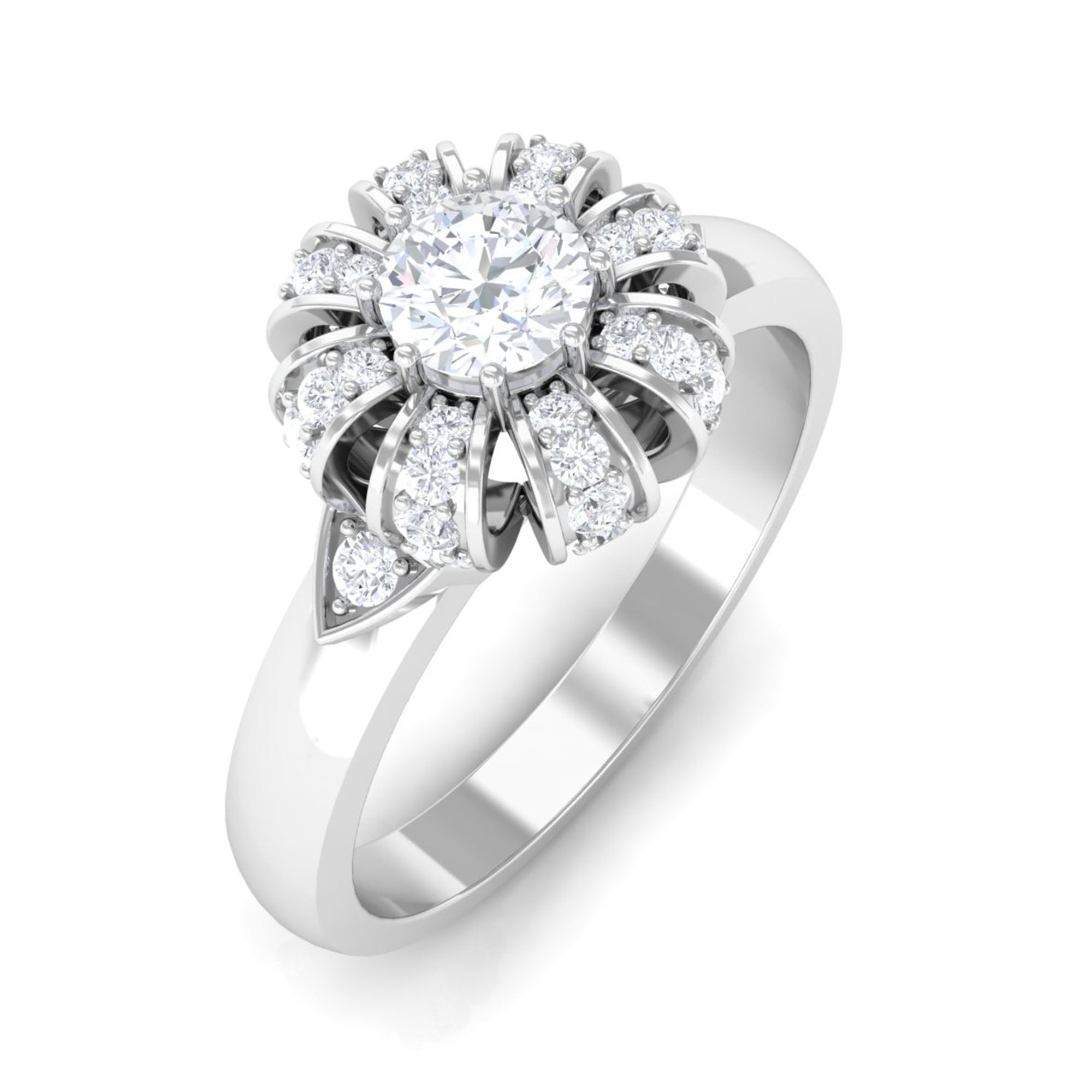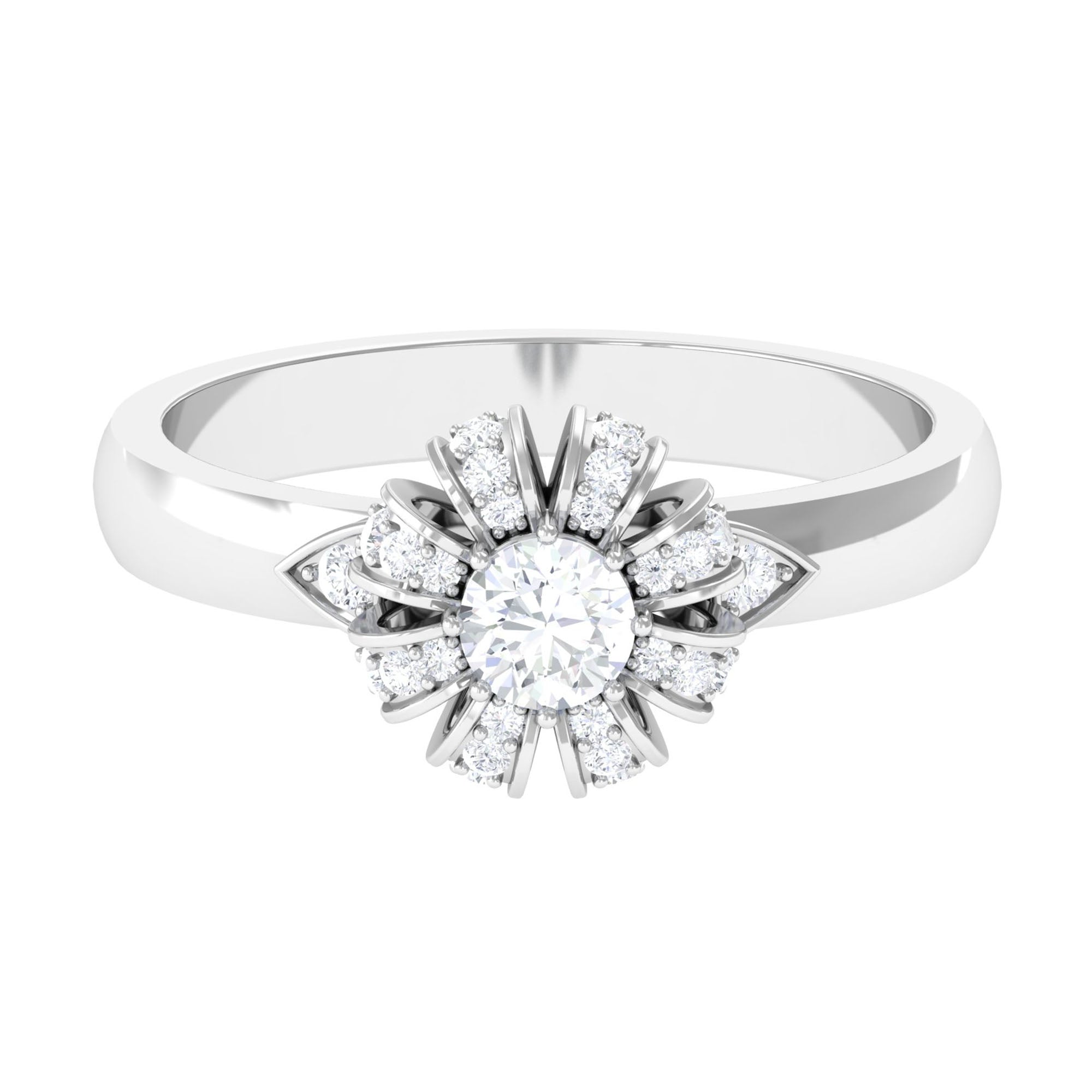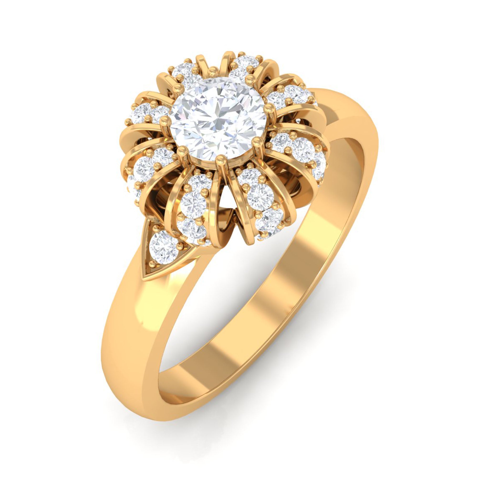 This Classic Floral Ring is adorned with Round Cut Zircon in Prong Setting and petals beautifully decorated giving it a whimsical touch to your attire.