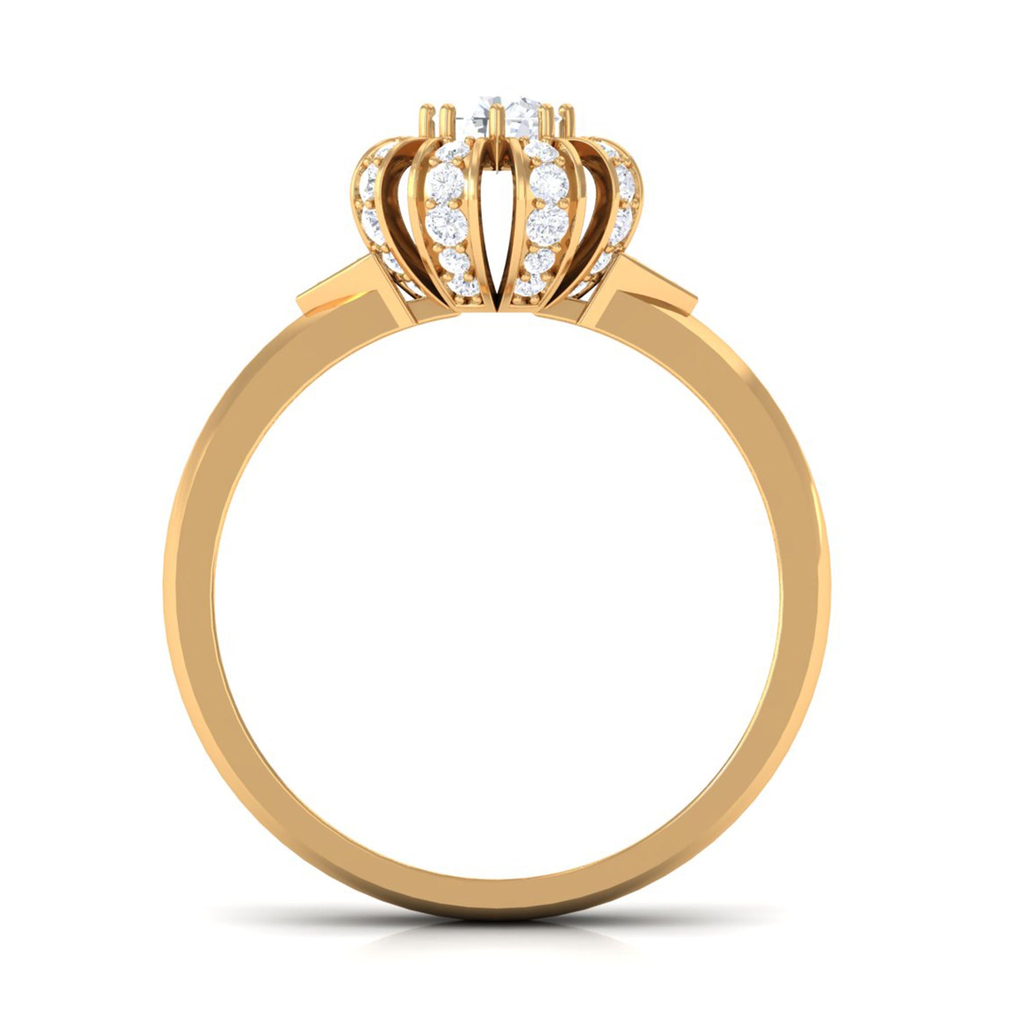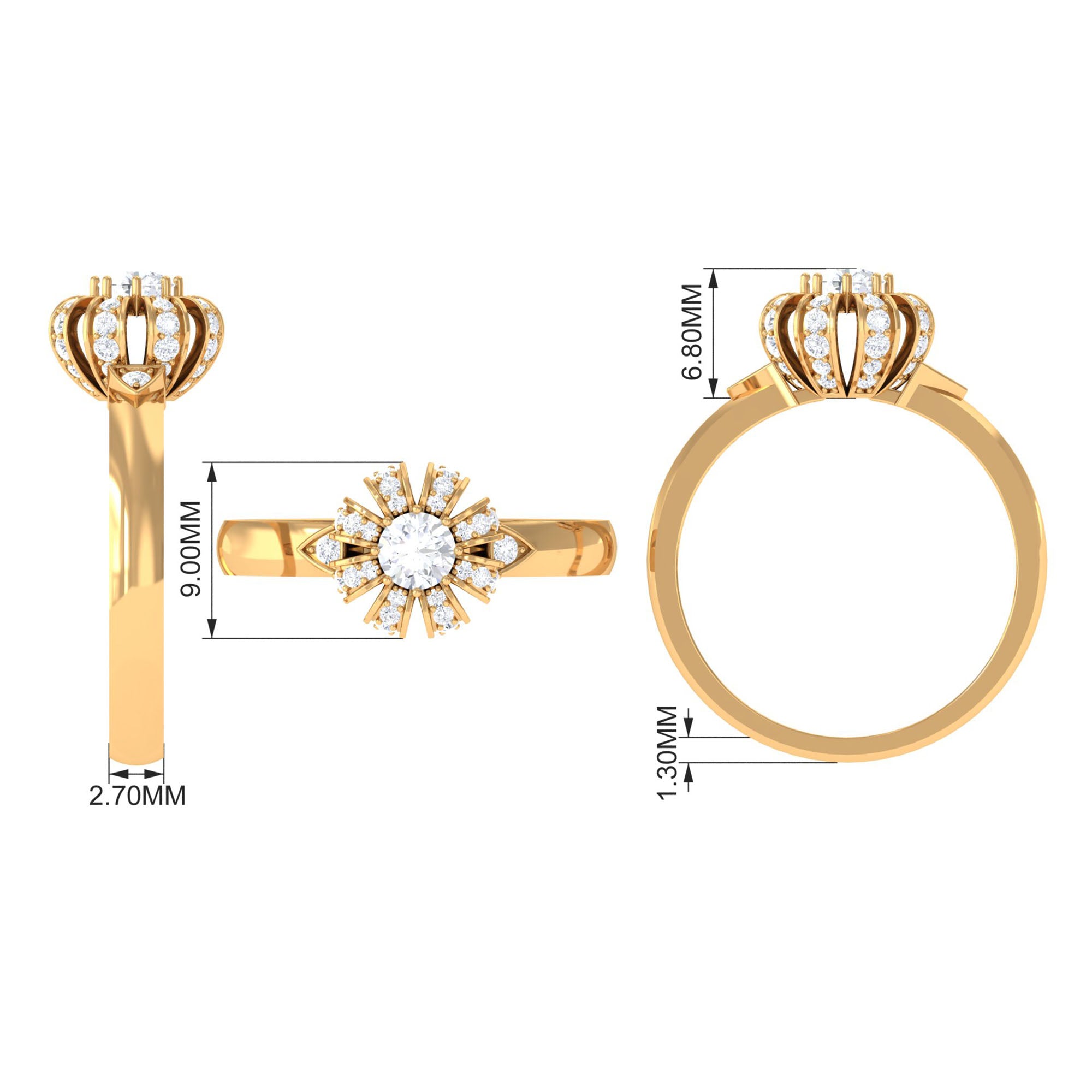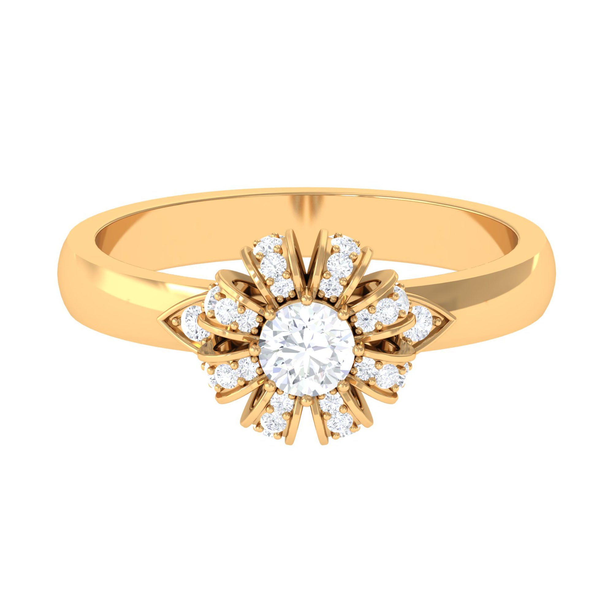 This Classic Floral Ring is adorned with Round Cut Zircon in Prong Setting and petals beautifully decorated giving it a whimsical touch to your attire.